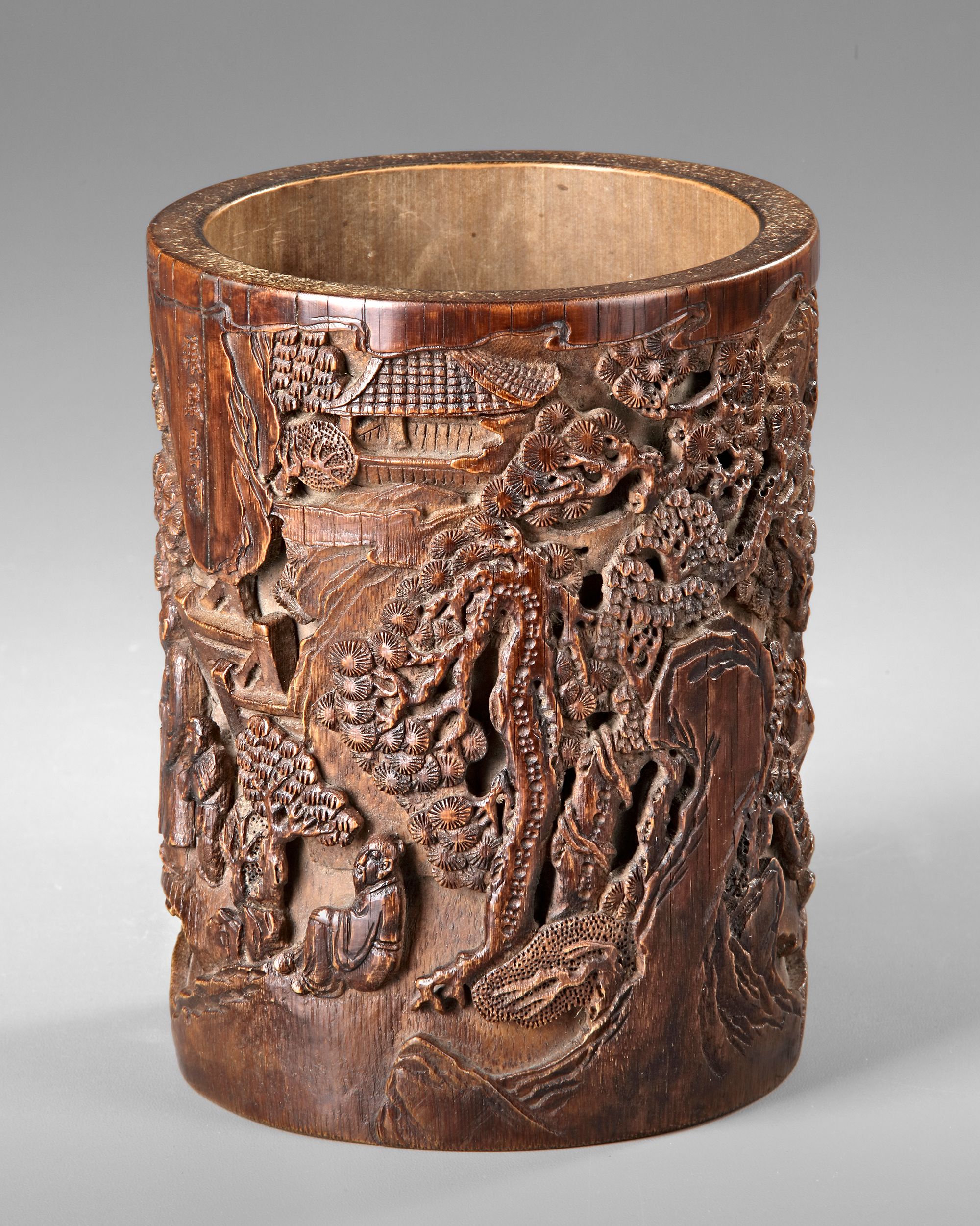 A CHINESE BAMBOO CARVED BRUSH POT, 18TH-19TH CENTURY