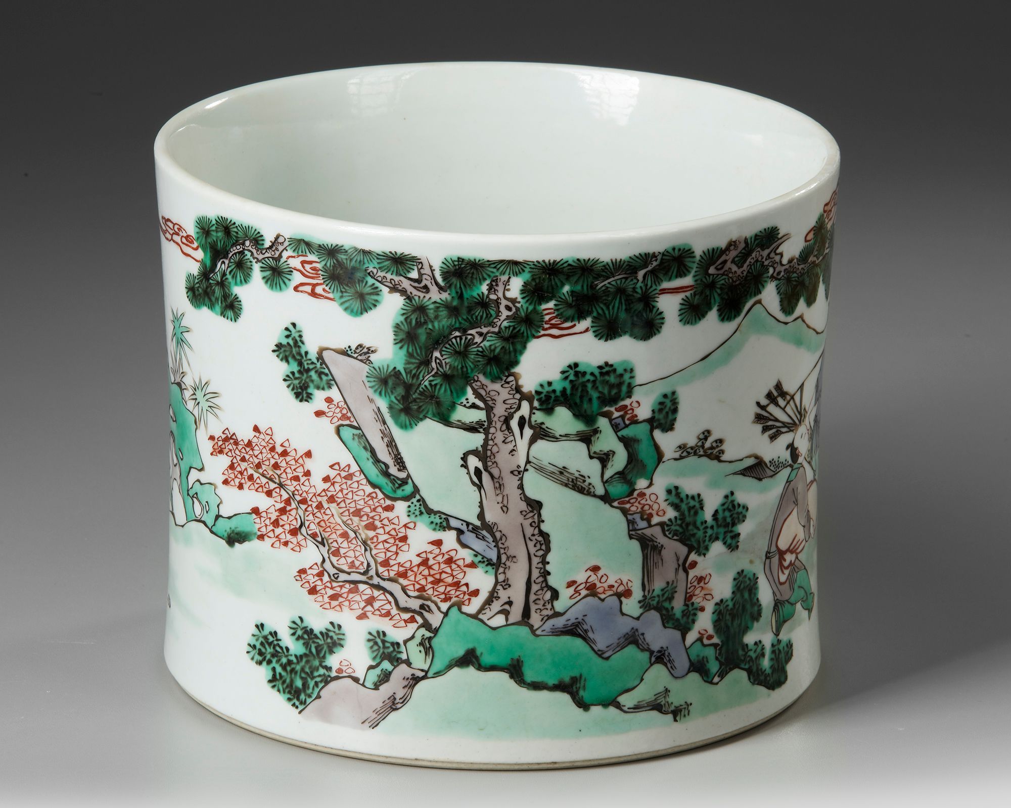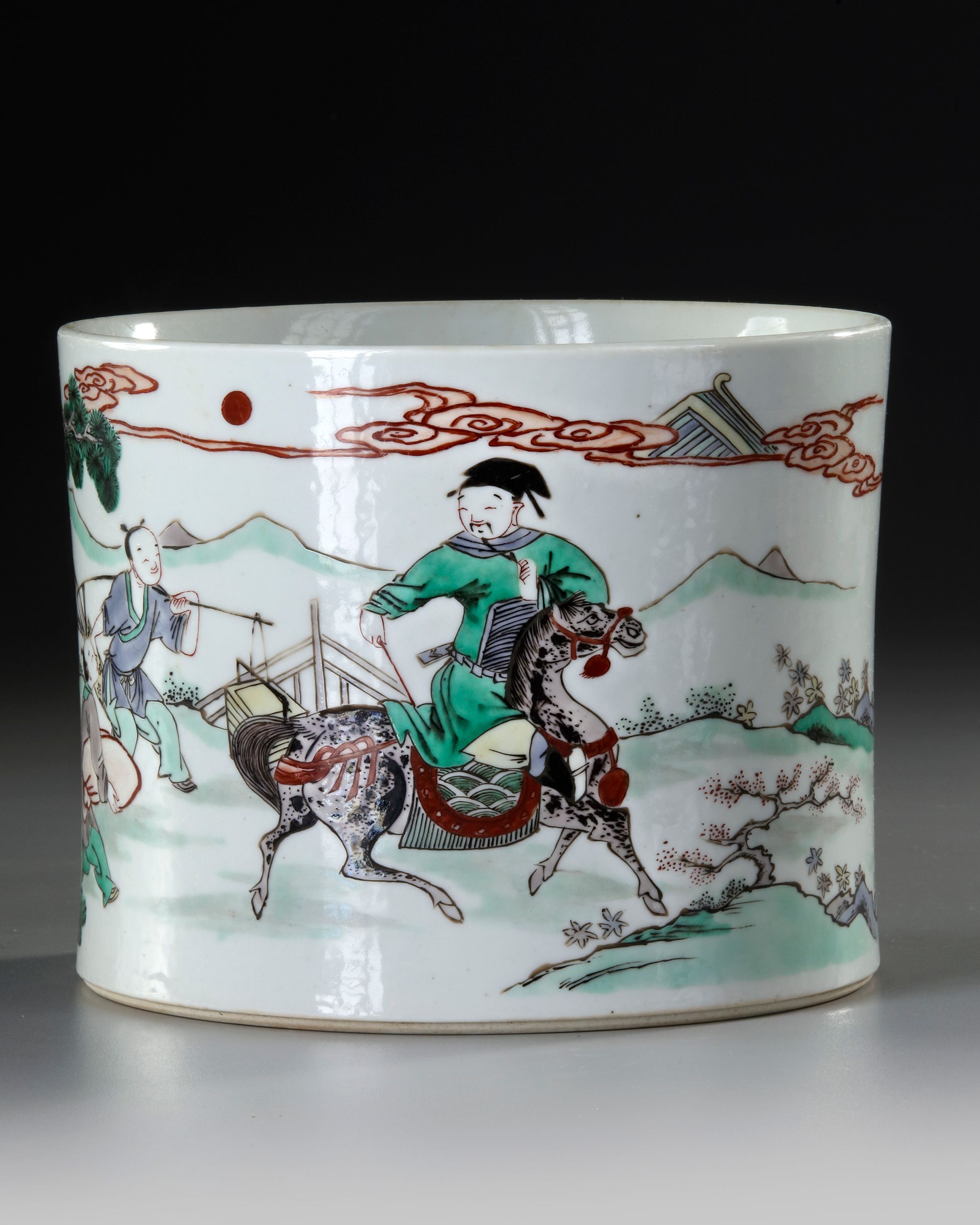 A CHINESE FAMILLE VERTE BRUSH POT, QING DYNASTY (1644-1911)