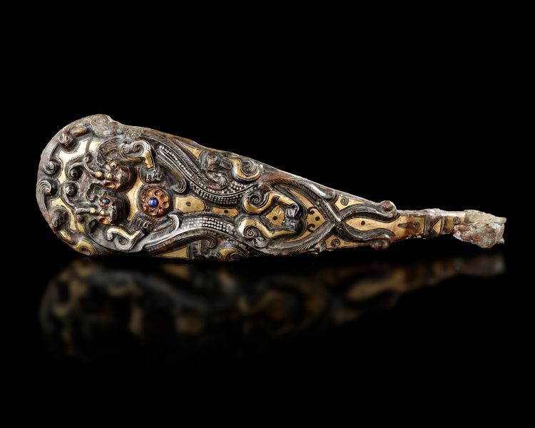 A GILT-BRONZE BELT HOOK, HAN DYNASTY (206 BC-220 AD)