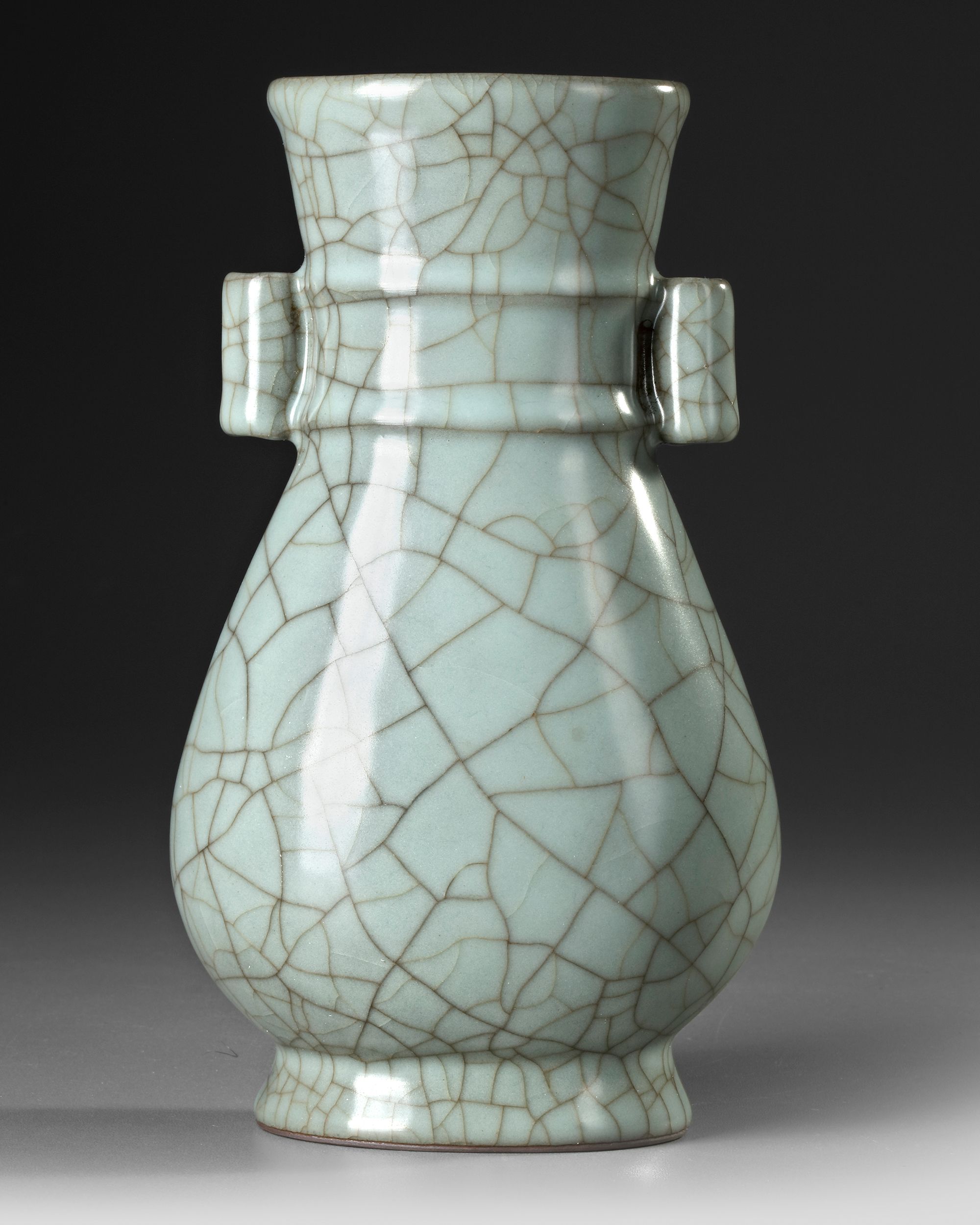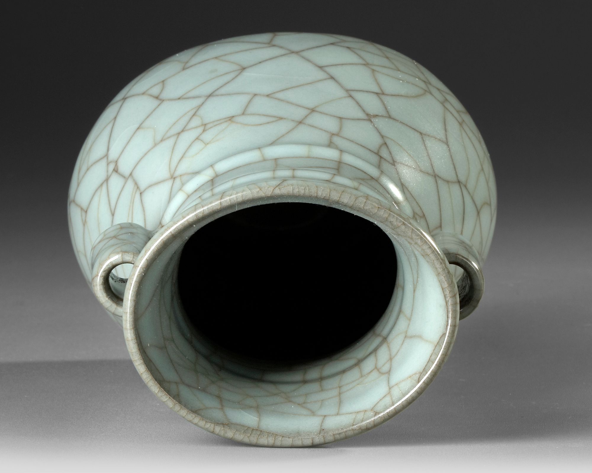 A CHINESE GUAN-TYPE HU TWIN-HANDLED VASE, QING DYNASTY (1644-1912)