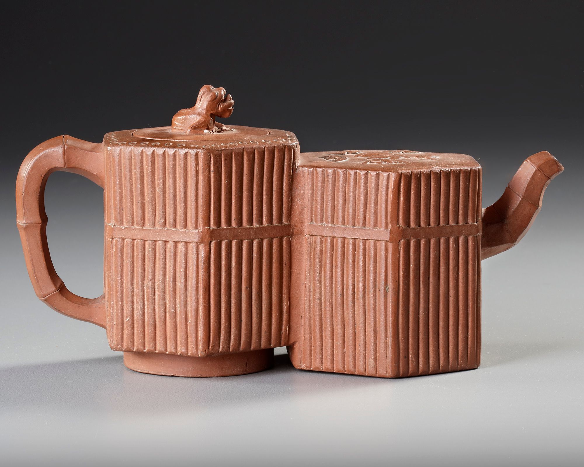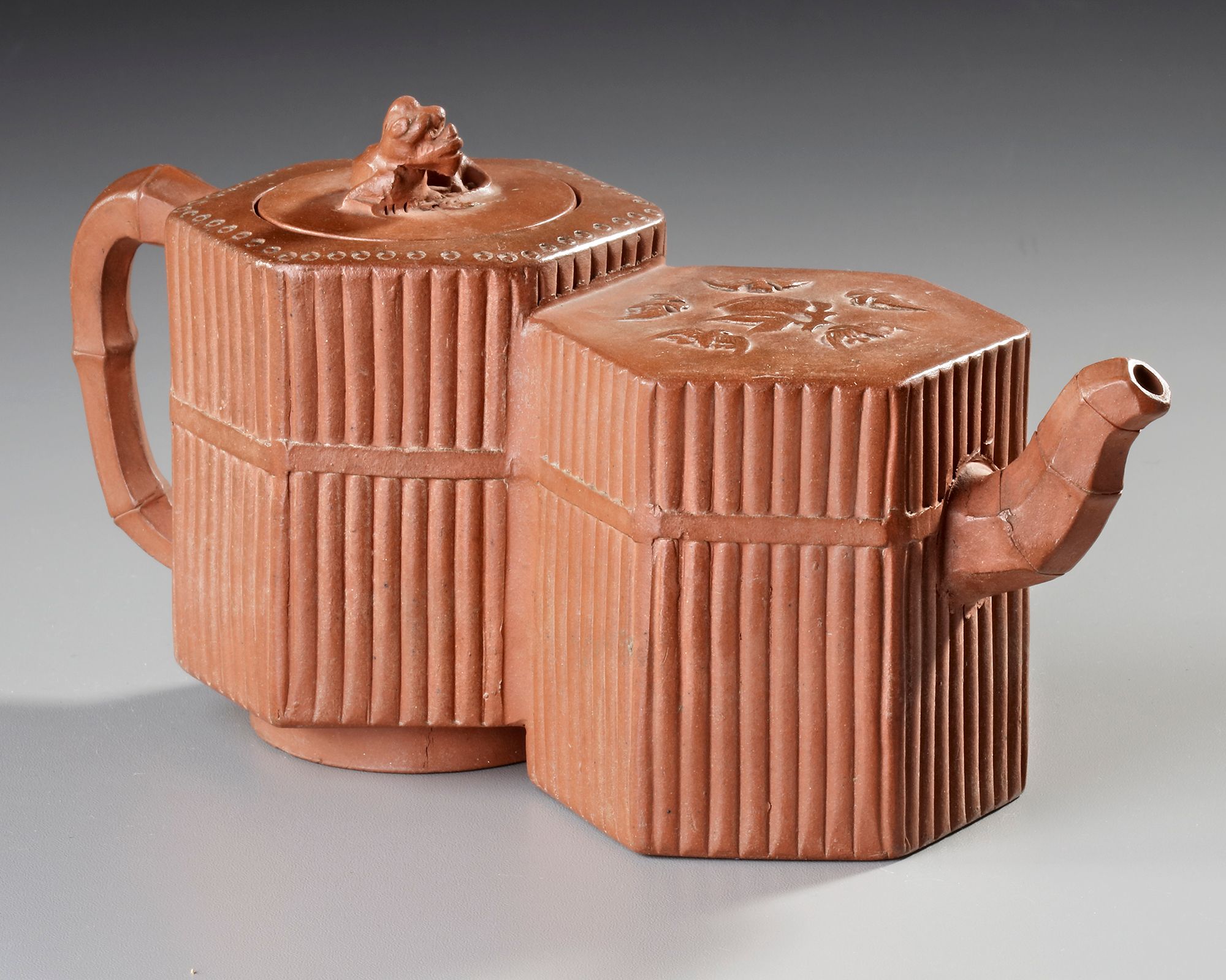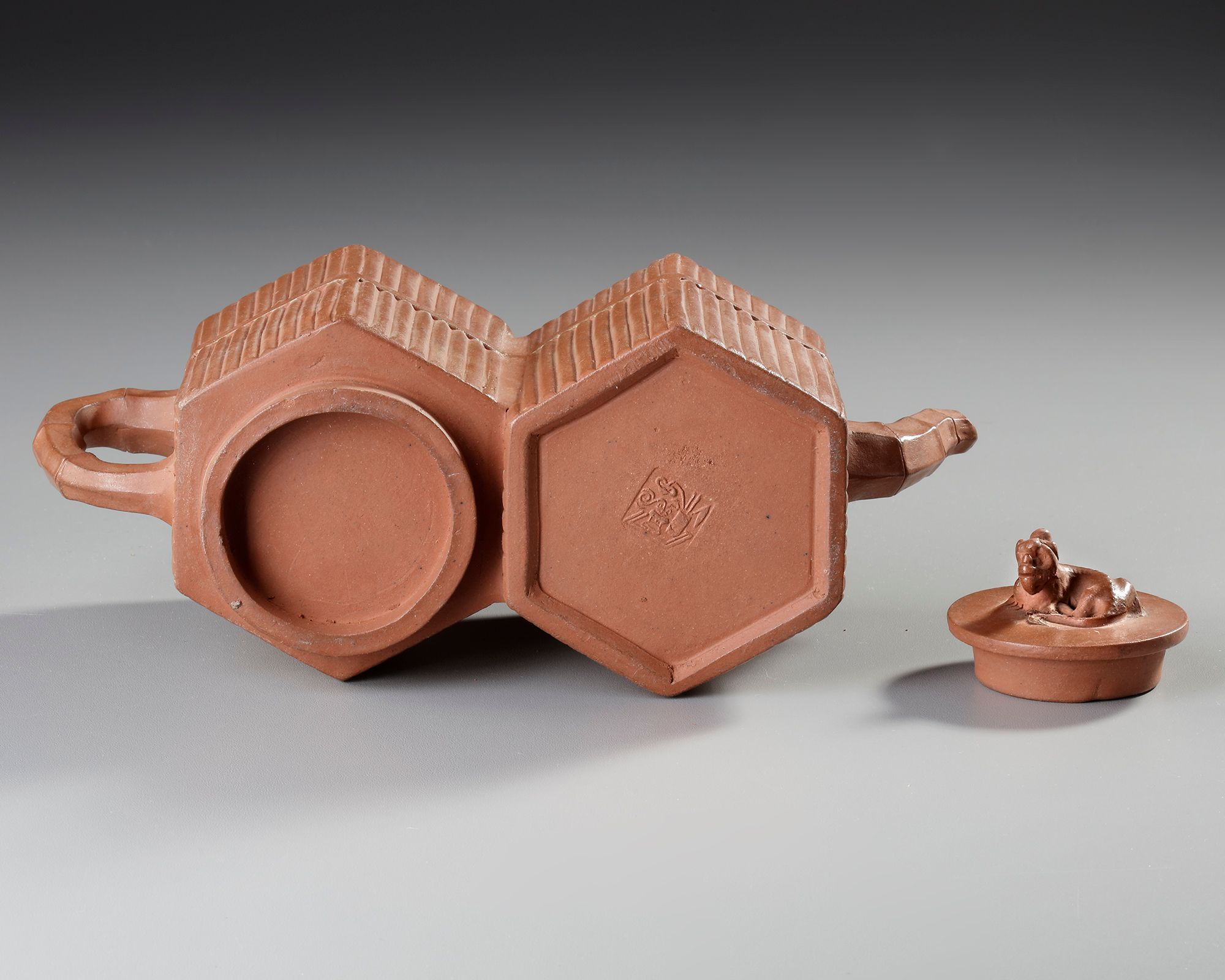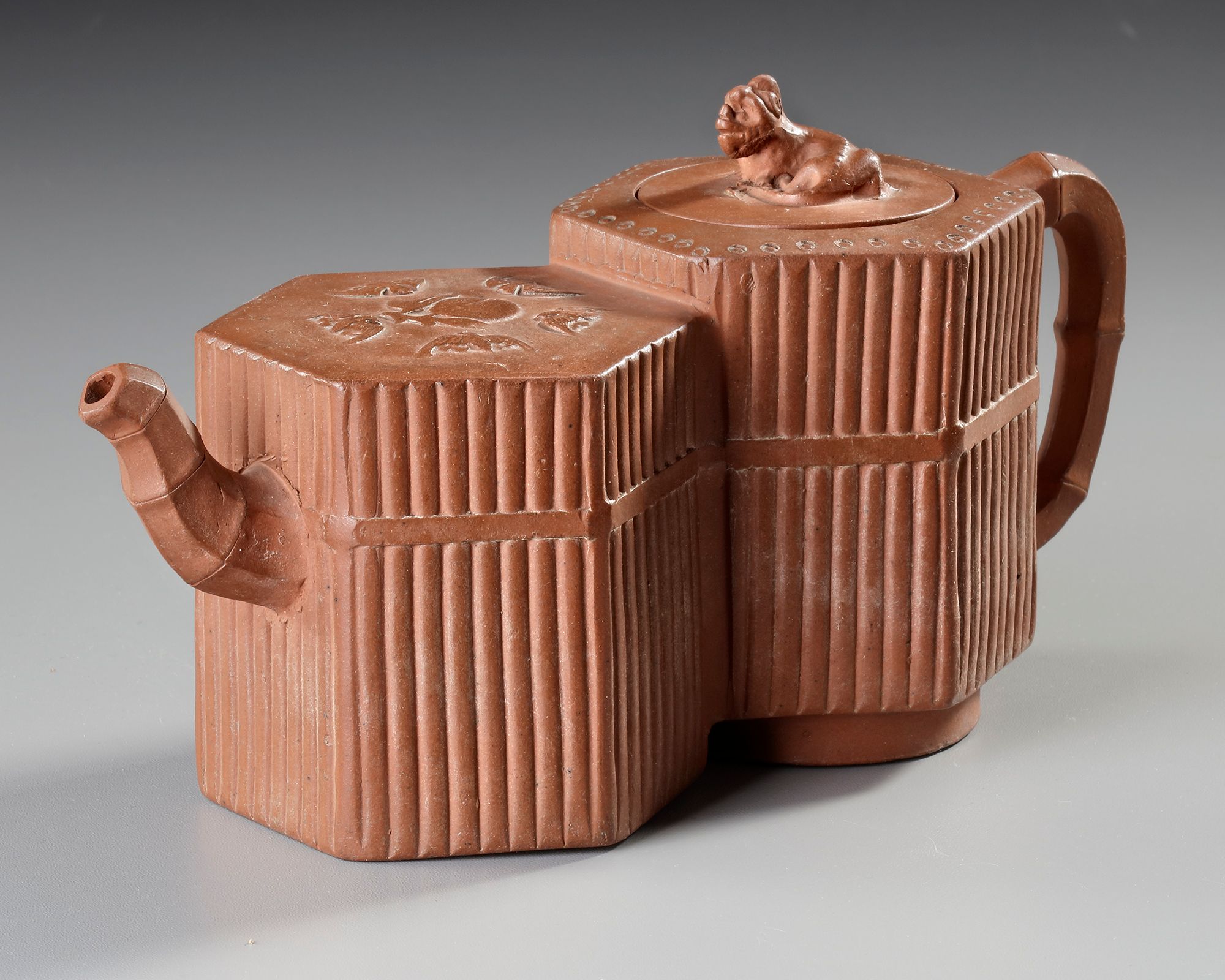 A CHINESE DOUBLE HEXAGONAL YIXING TEAPOT, 19TH CENTURY