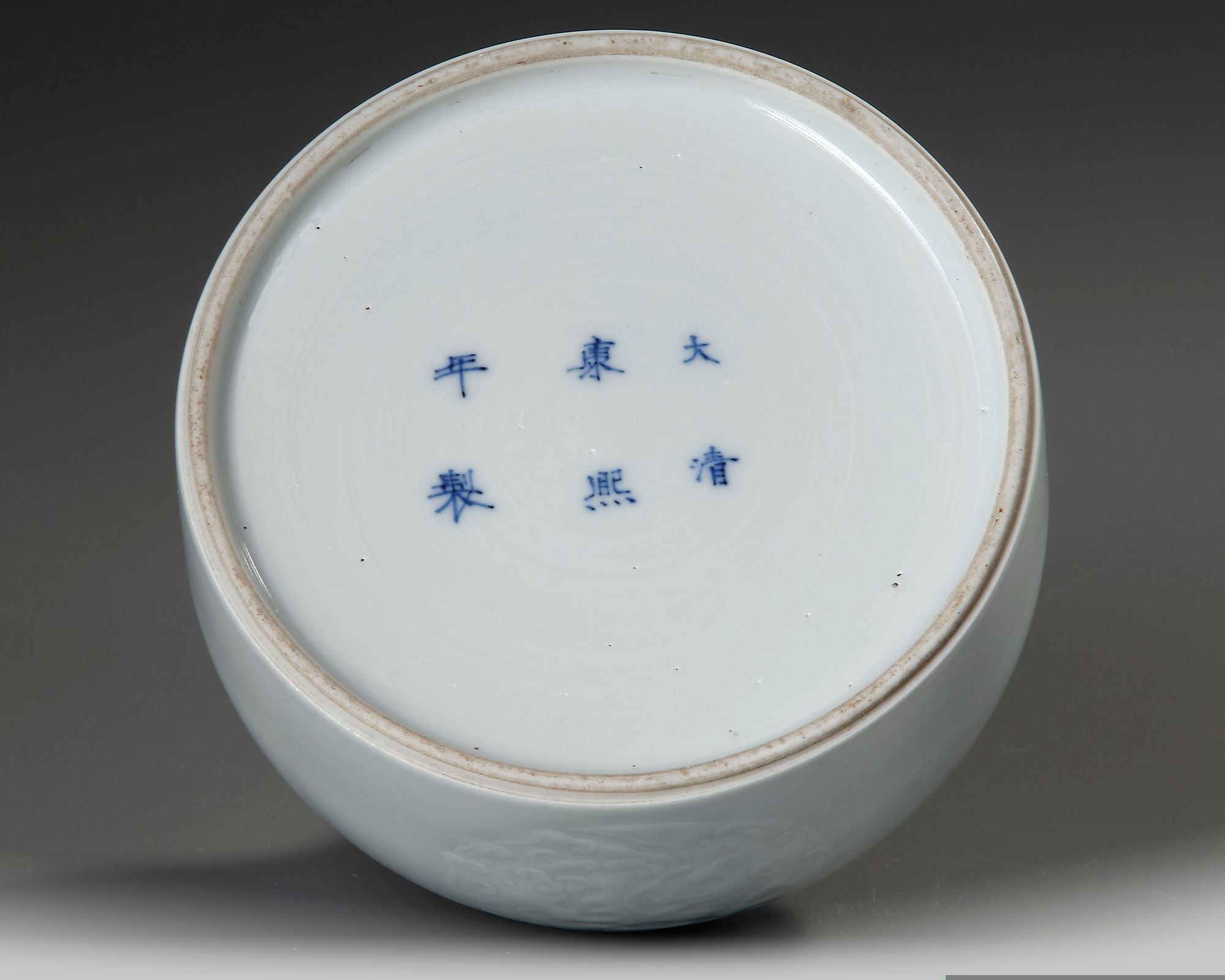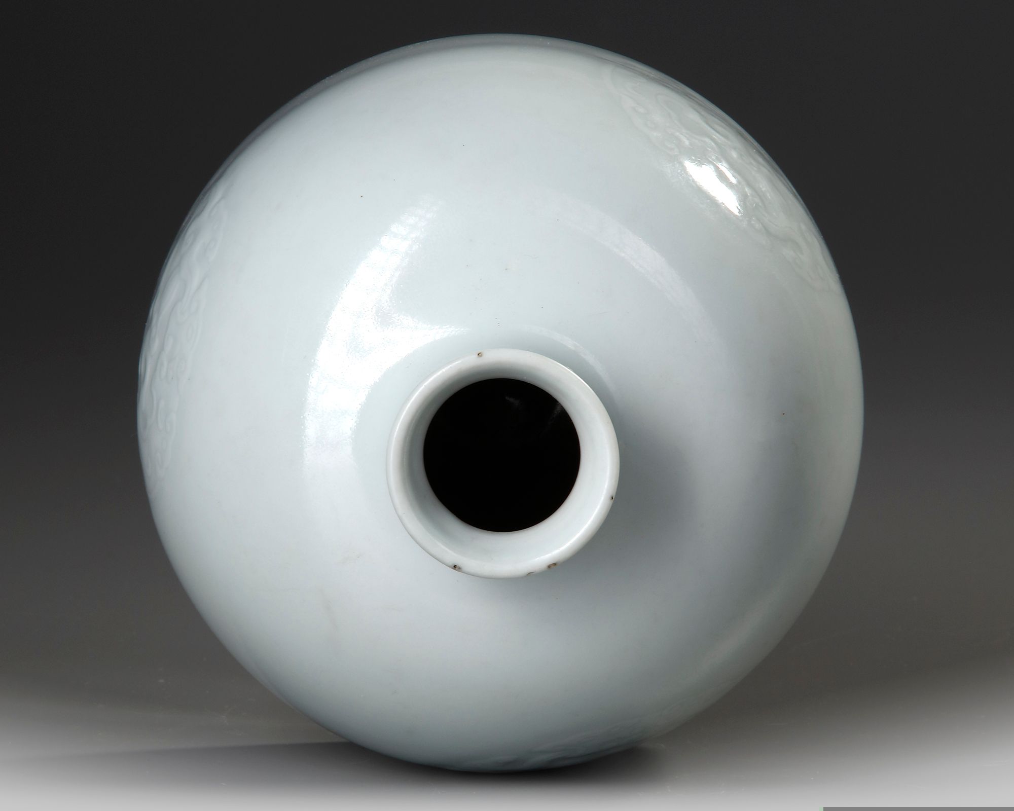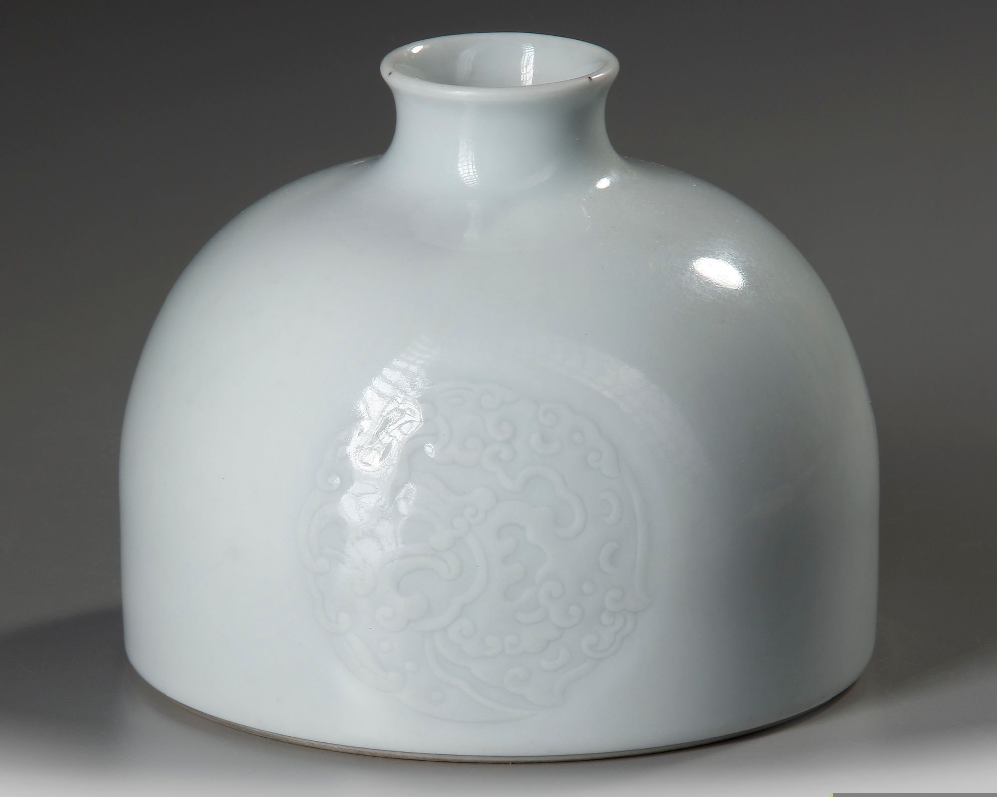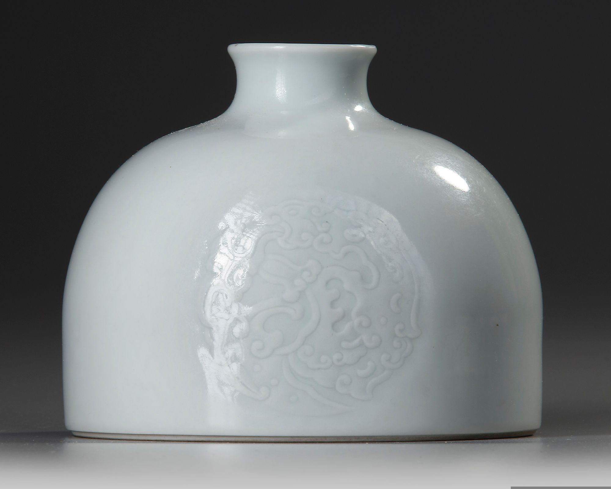 The domed body incised with three foliated dragon roundels below the waisted neck. Diameter 12.1 cm.