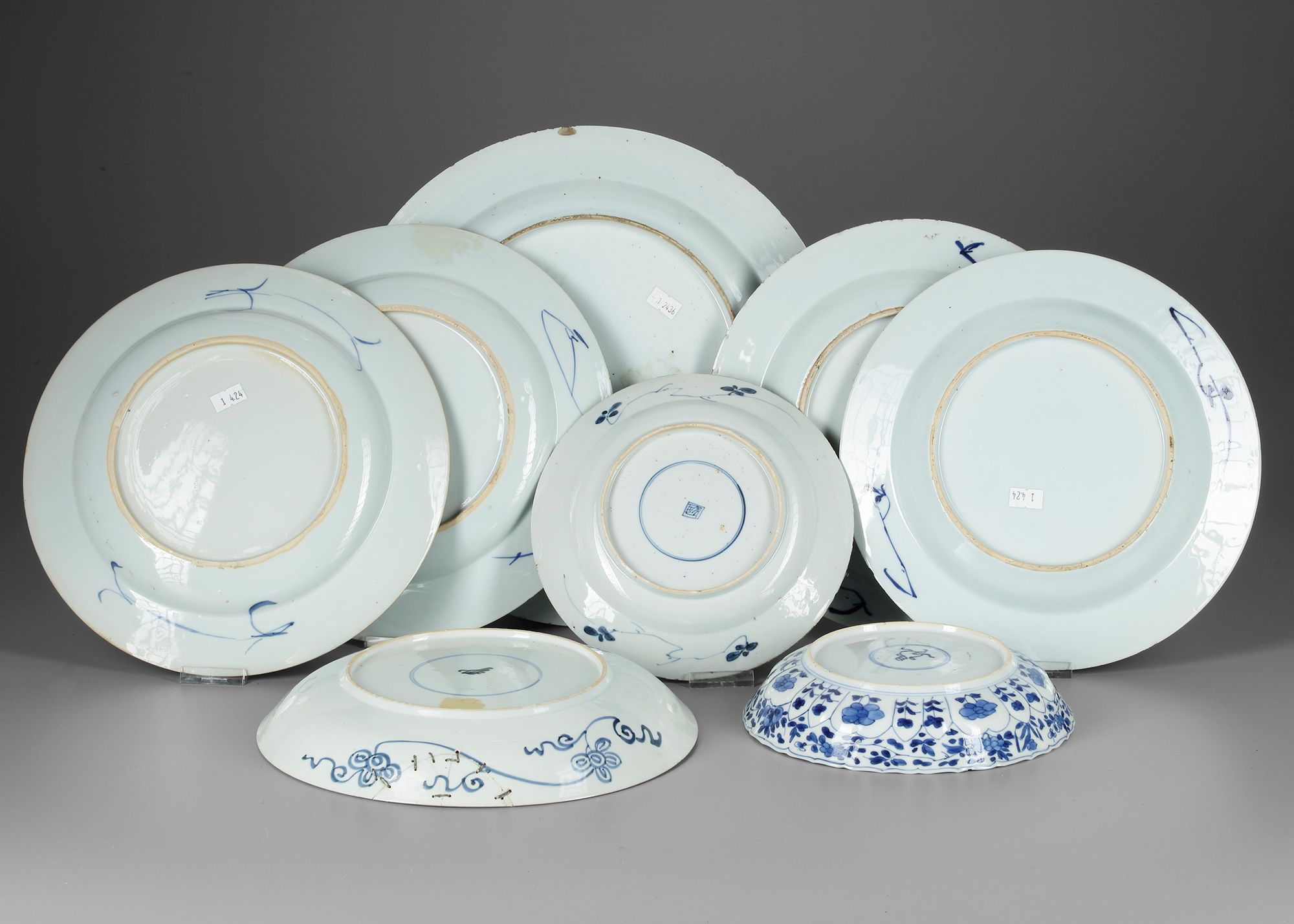 A Chinese blue and white barbed dish, decorated with floral motifs, kangxi period. Diam: 20.5 cm.