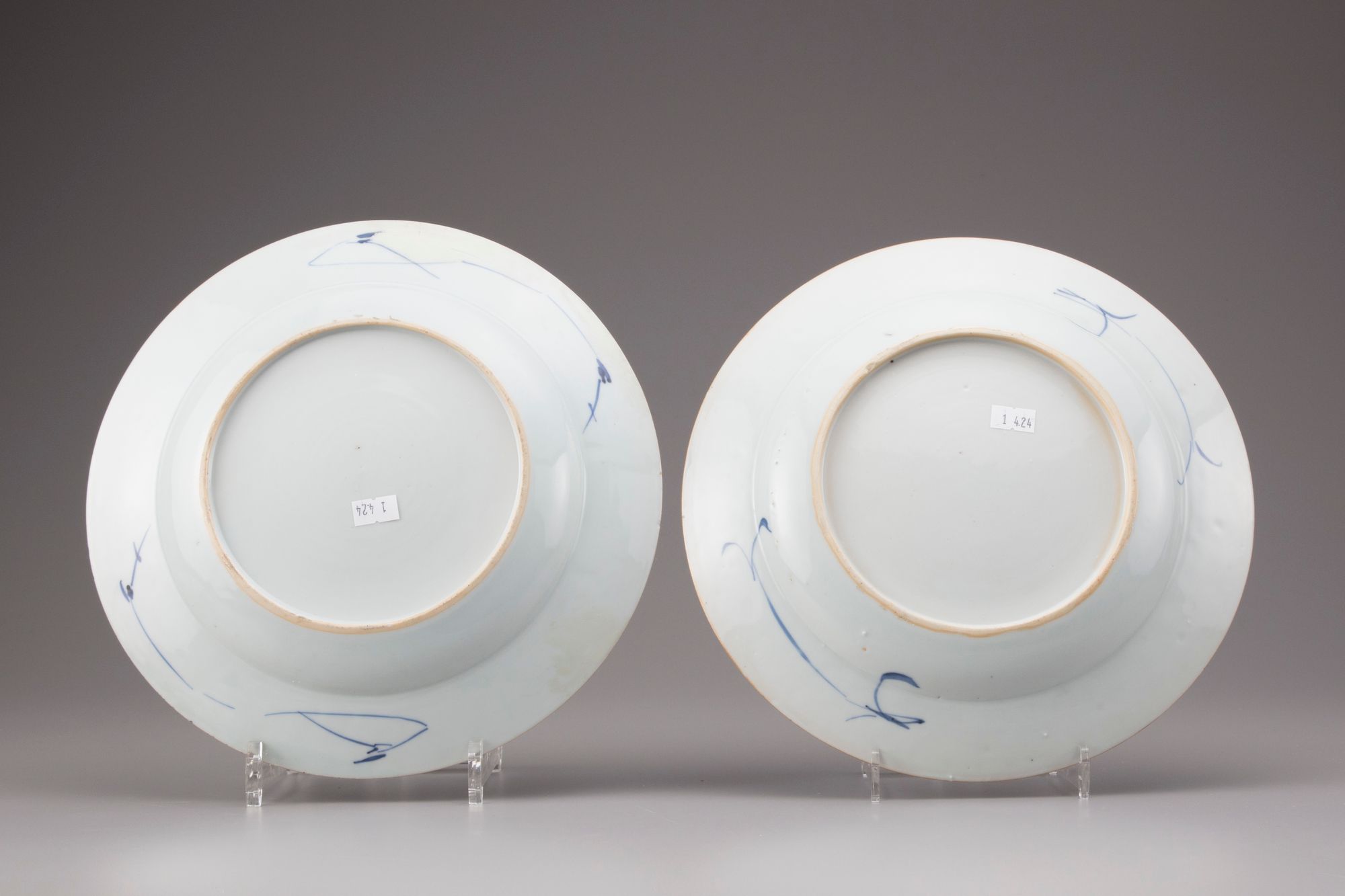 Two Chinese blue and white dishes decorated with blossoming branches. Diam: 20- 27 cm.