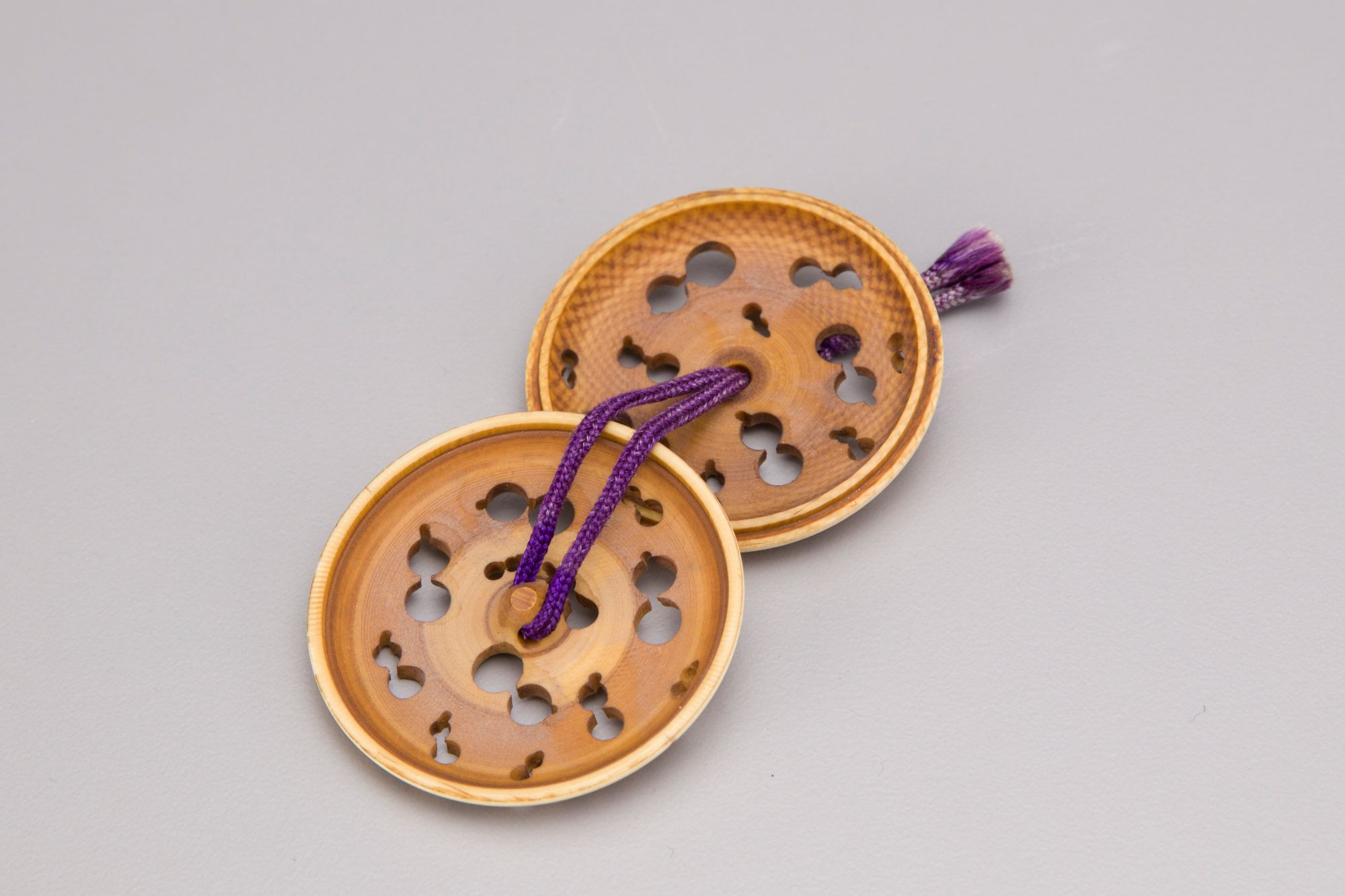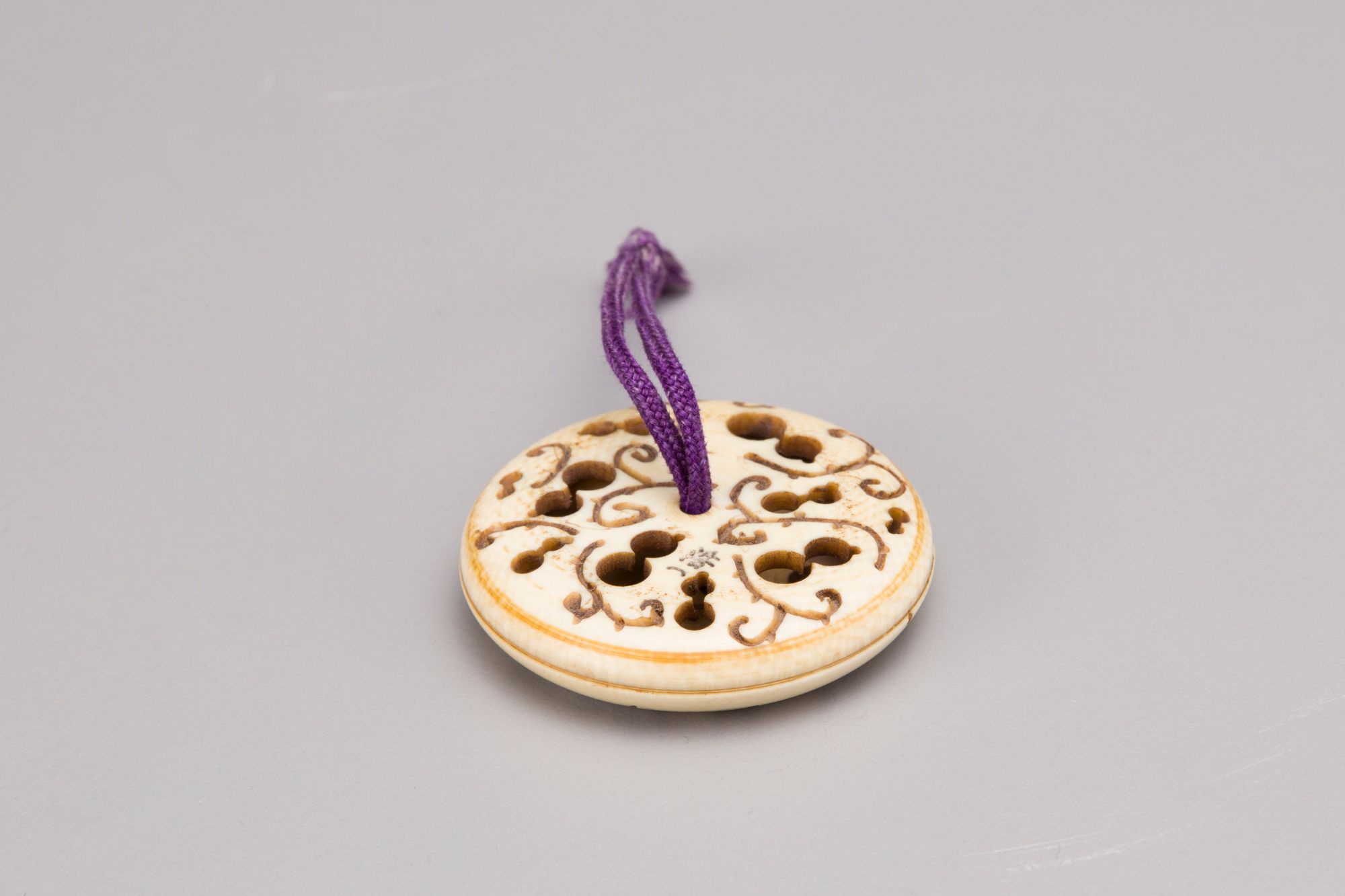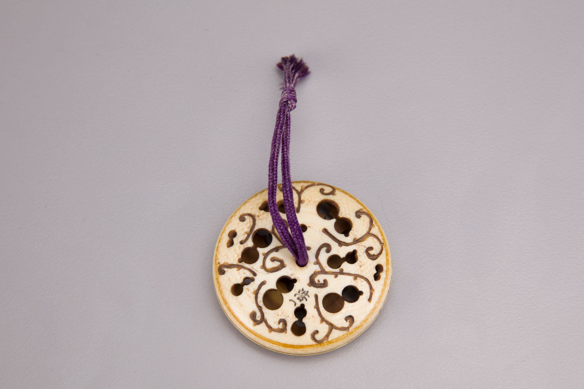 Finely carved with openwork shaped like double gourds. 4.6 cm.