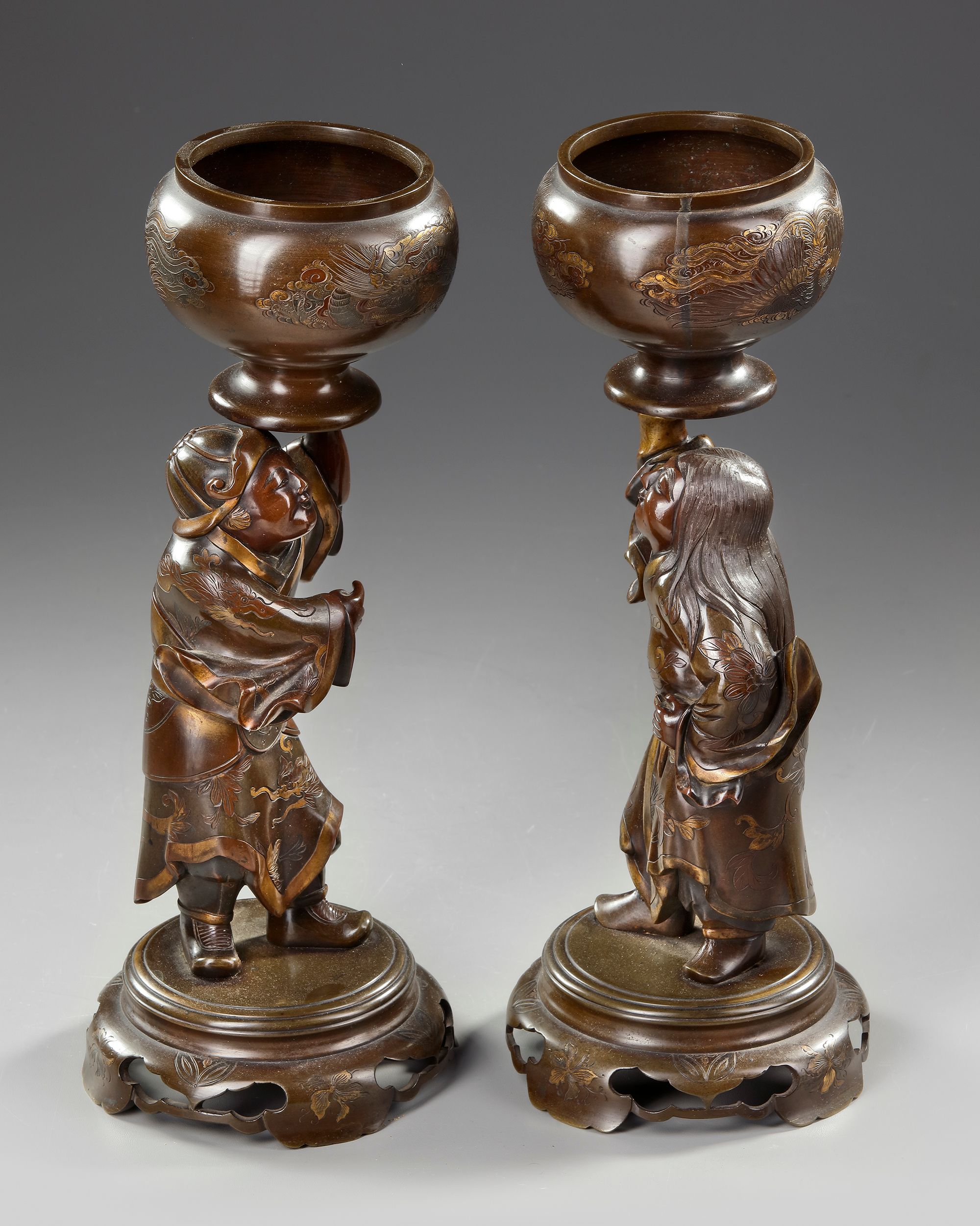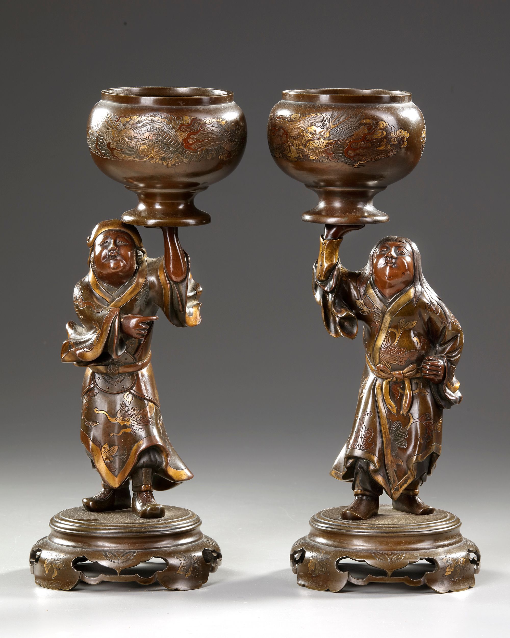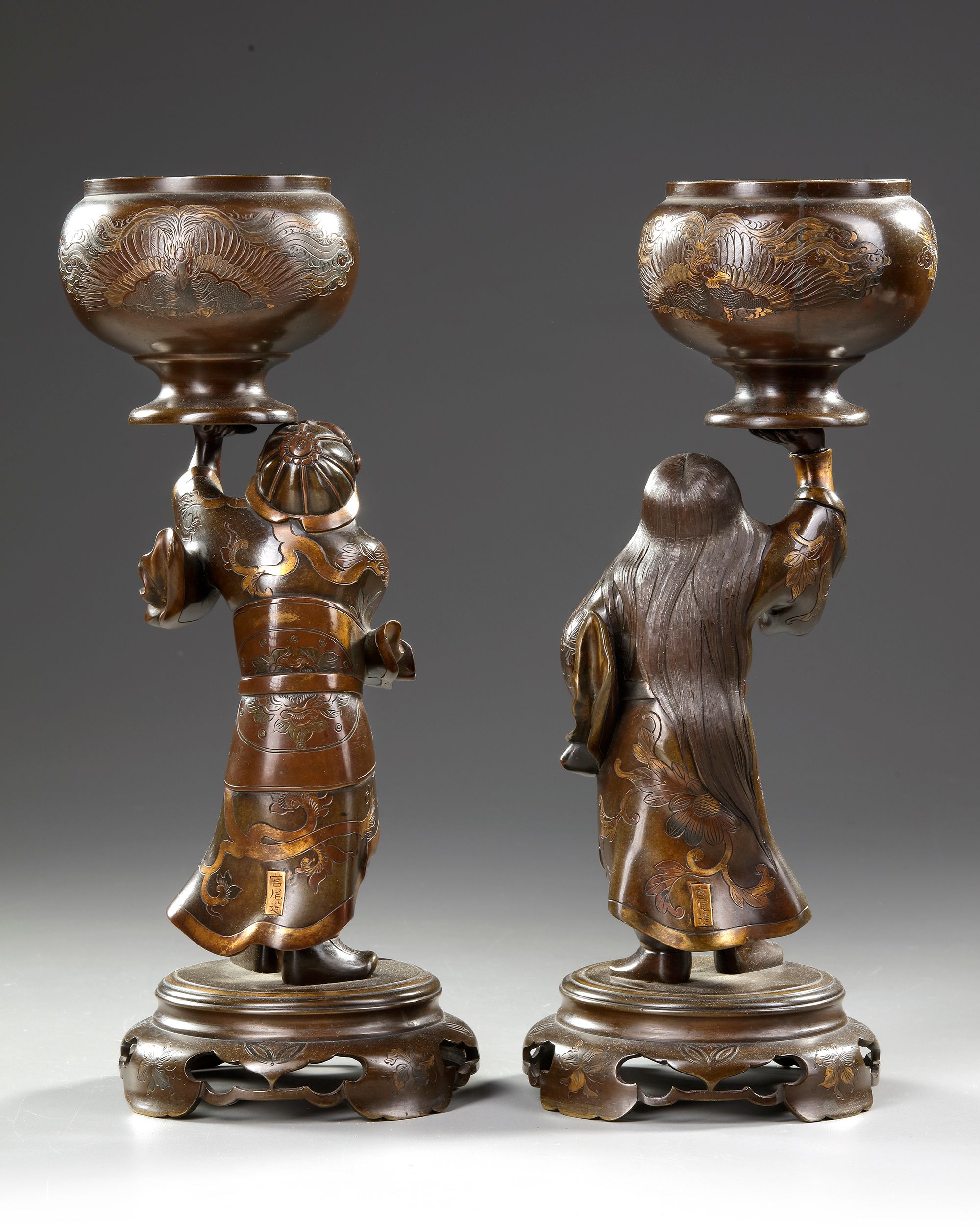 A PAIR OF JAPANESE BRONZE STATUES, MEIJI PERIOD, 19TH CENTURY