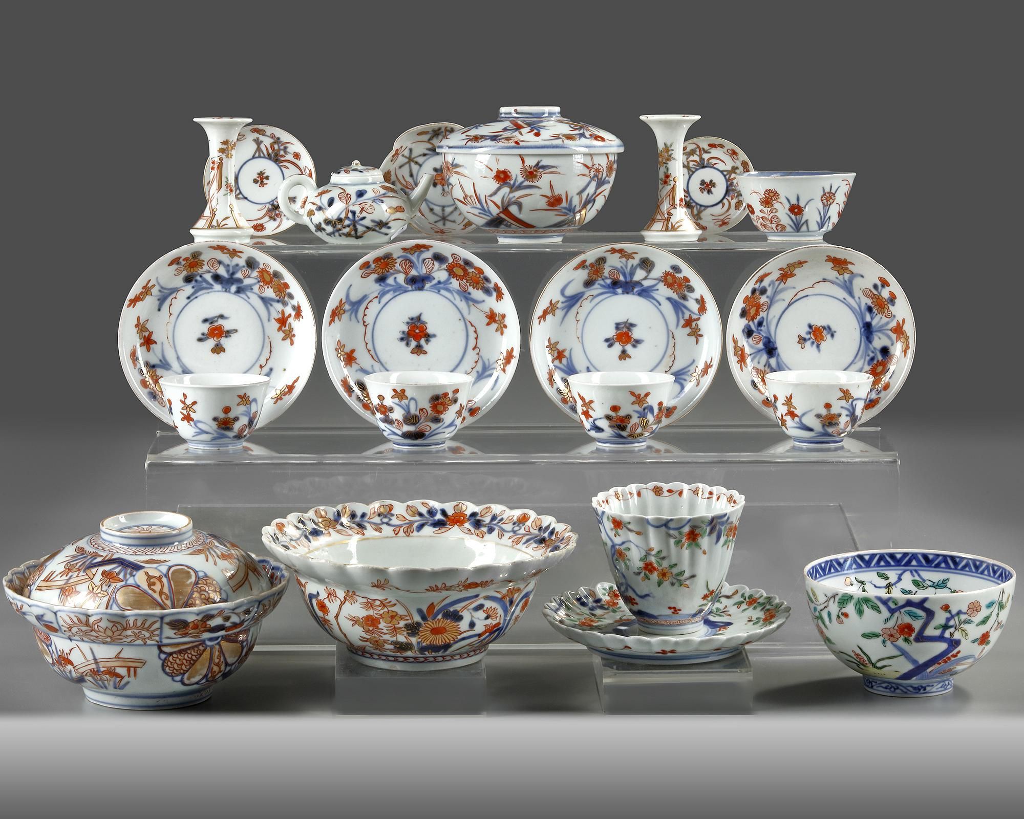 Comprising: twelve Imari cups and saucers and four bowls and covers and imari teapot with two small vases.