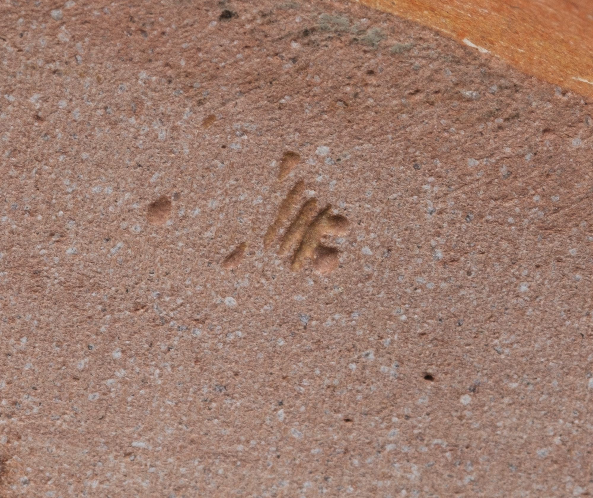 The bottom with a partial stamp of the artist Kumamoto Kiichi 熊本喜一 (1927-?). Born in Tokoname. Studied under the founding generation head Katsuo Seiryuto. He was first selected in 1957 for the Nitten Exhibition, and later became an Nitten affiliate member. He was selected for and awarded prices at many different exhibitions, like: Kyoto City Exhibition, Prefectural Exhibition, Kansai Soumi Exhibition, and Japanese Ceramics Exhibition.