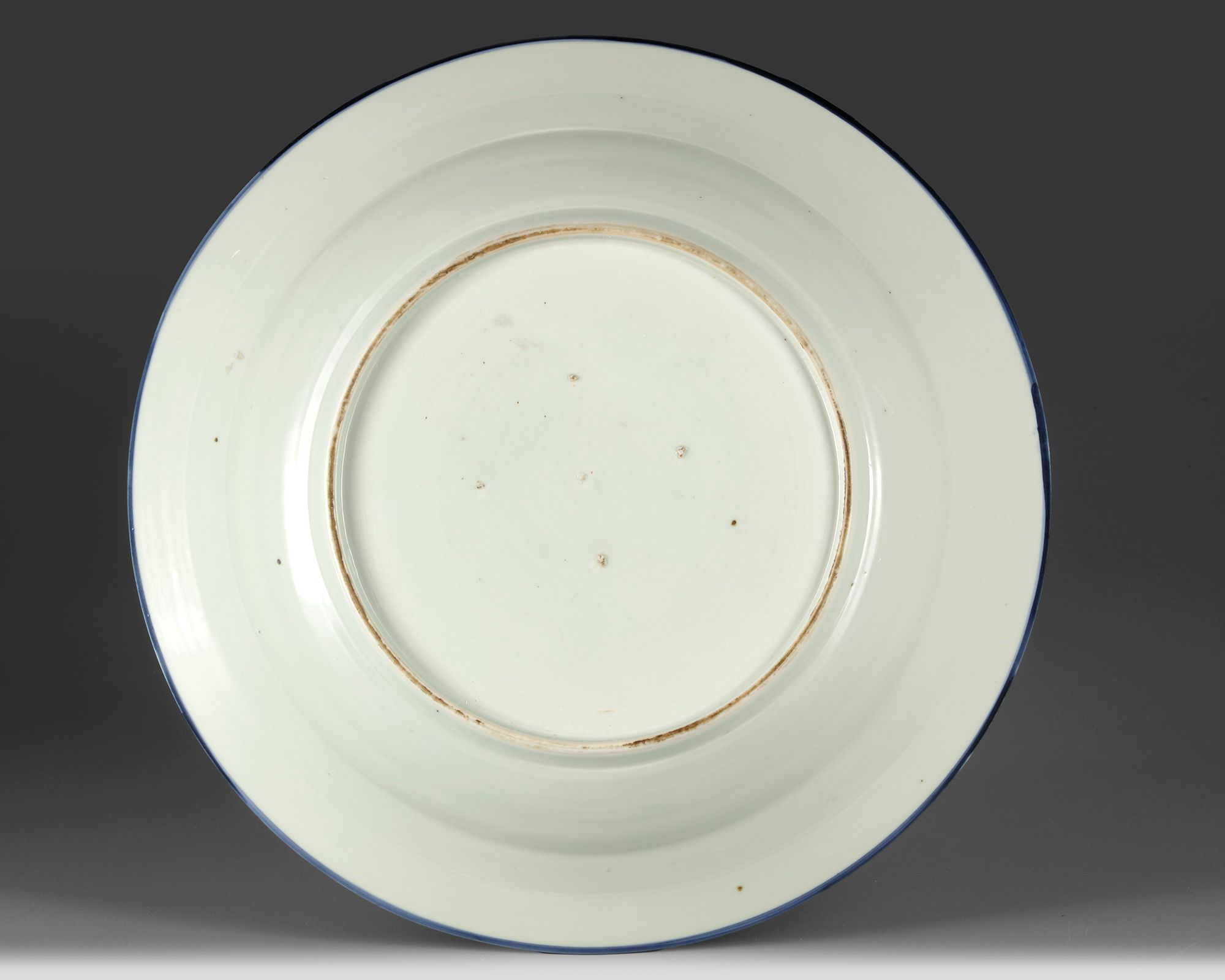 Painted to the central roundel with the V.O.C. monogram, surrounded by two ho-o birds (phoenix) among pomegranate and camellia, the six radiating border panels at the rim enclosing alternatively bamboo and peony divided by narrow bands of floral scrolls.