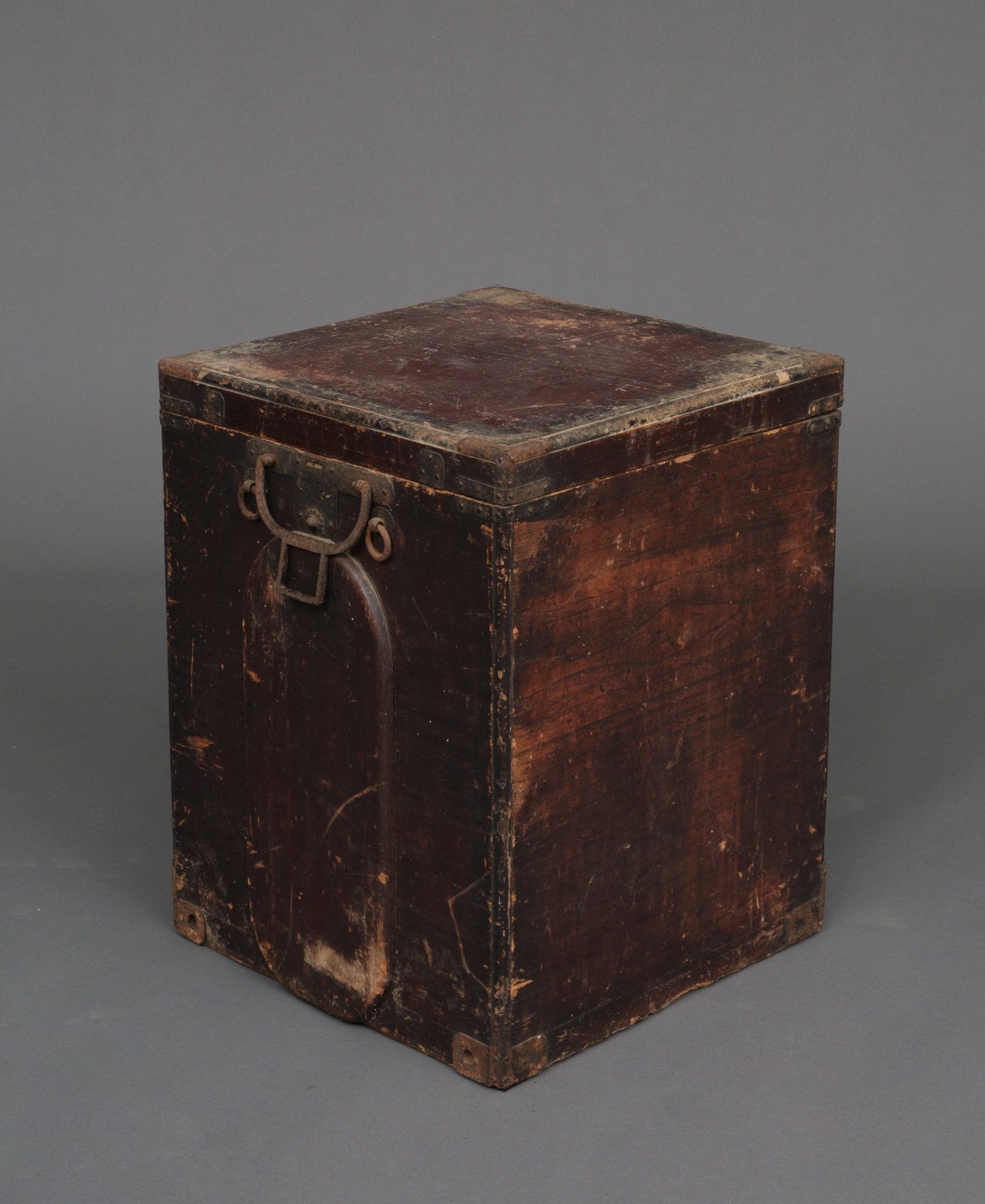 Including a square brown lacquered store-box for a suit-of armour (yoroi’bako) with iron ‘pole carrying’-handles.
