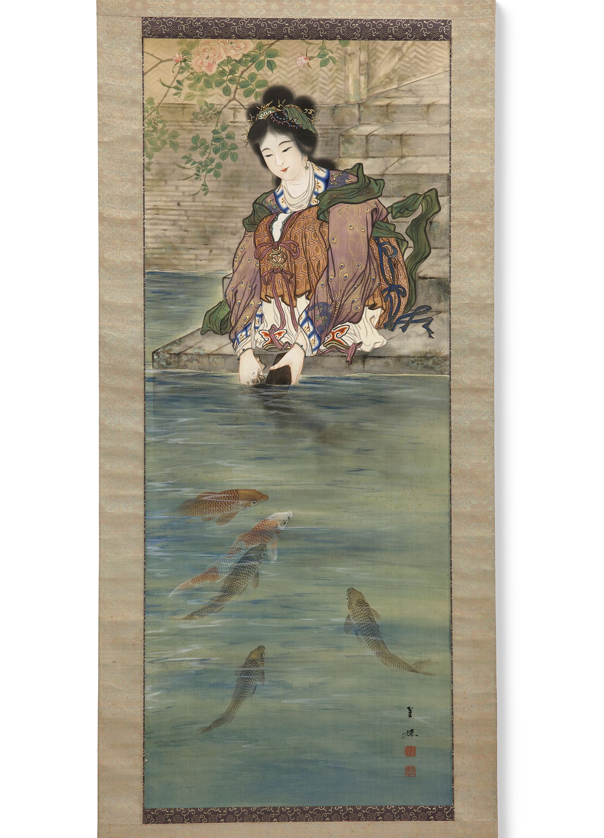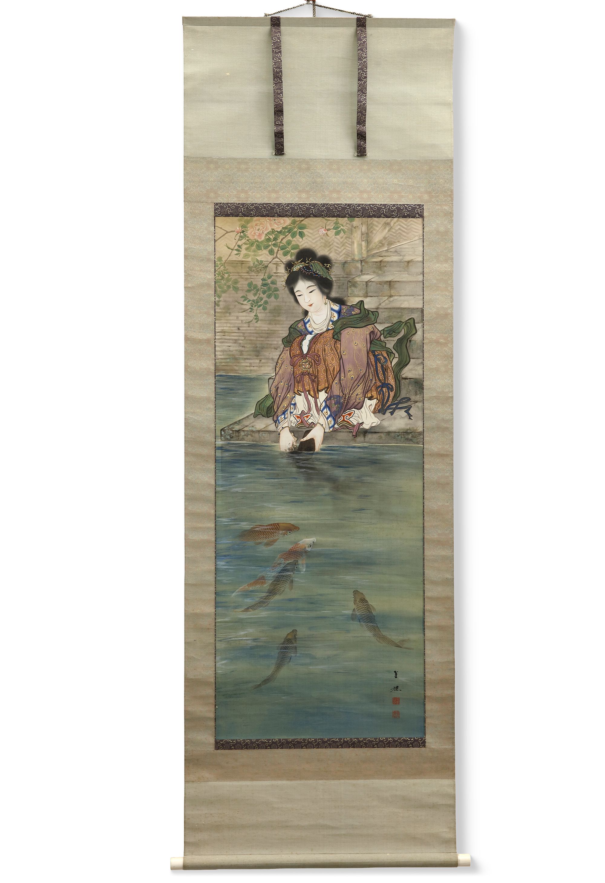 Not much is know about Imasato Kinsui, apart from the fact that he was born in Osaka, studied with Goi Kinsui, and worked in the Taisho and early Showa era. He specialized in highly detailed paintings of historical subjects.