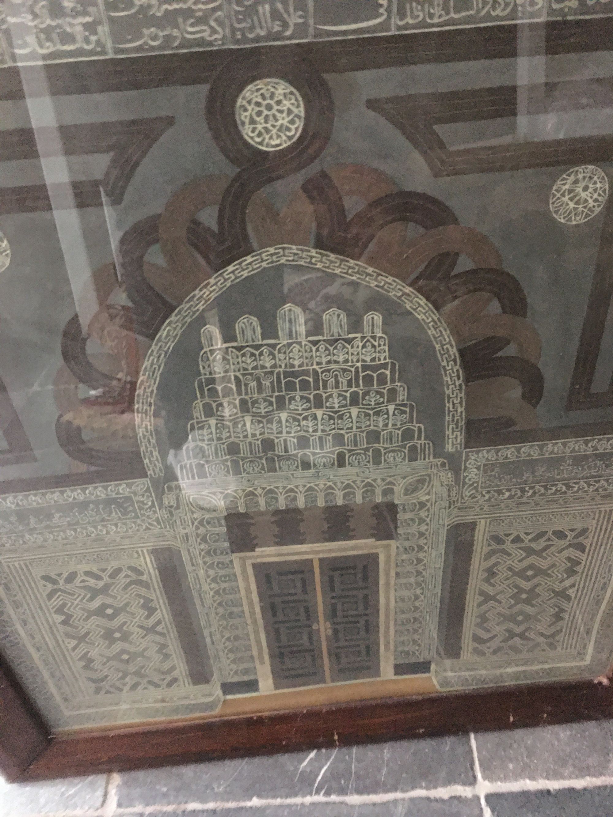 Water colour op paper, depicting architectural features of the palace gate of Kayqubad I. Framed and glazed. 60 by 71 cm