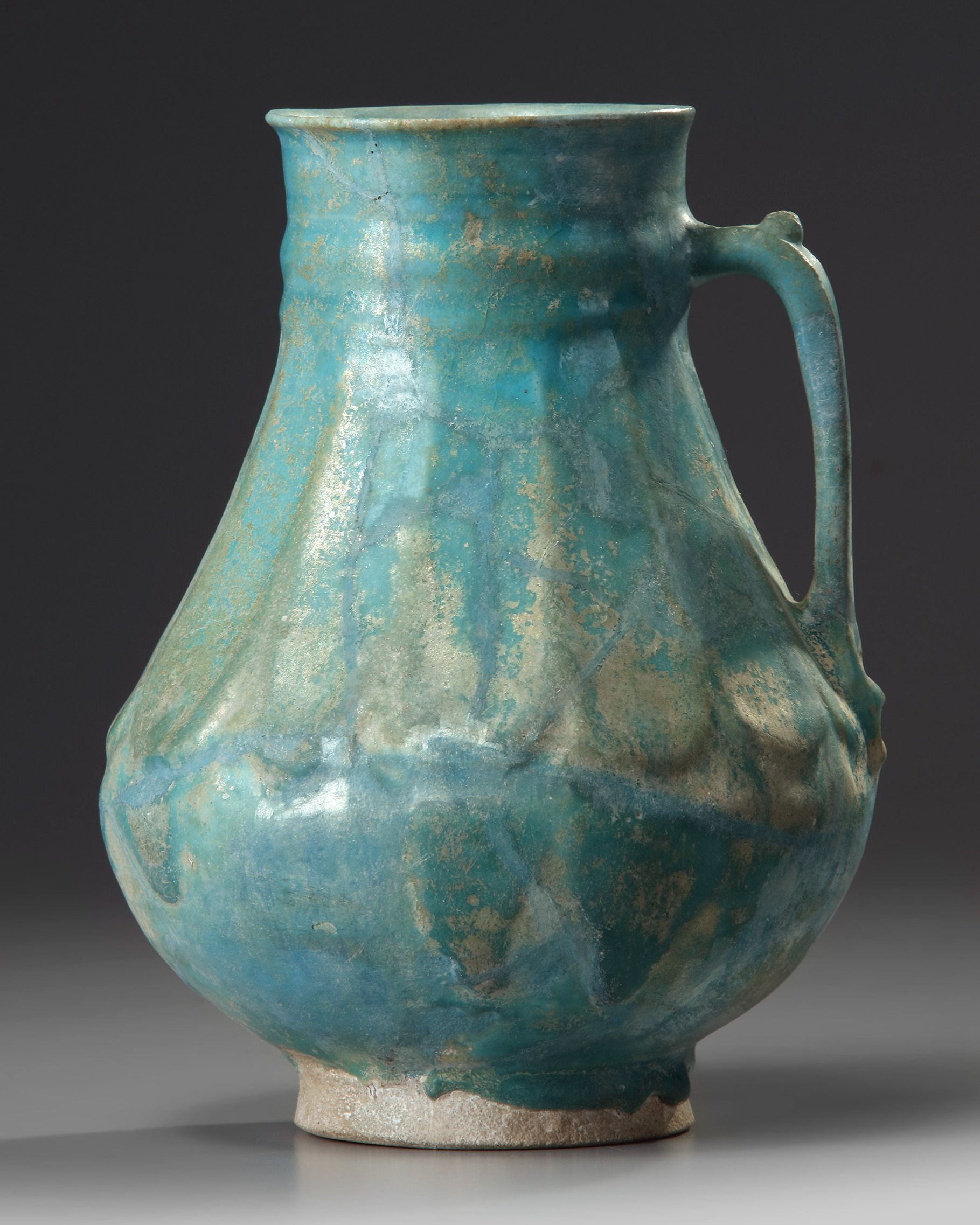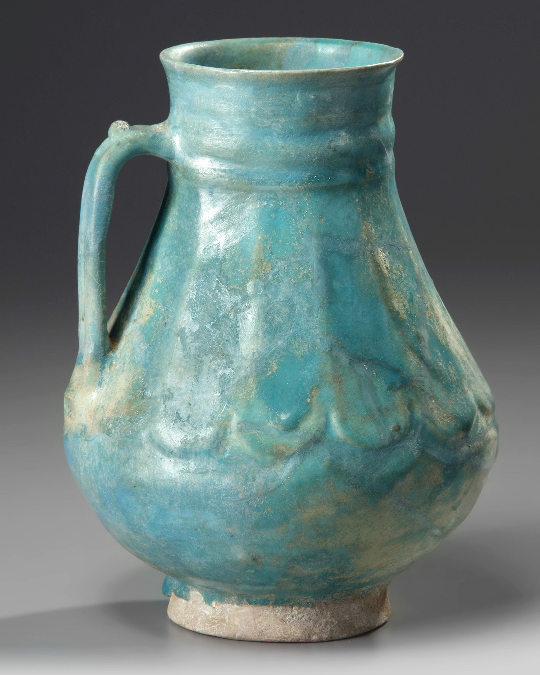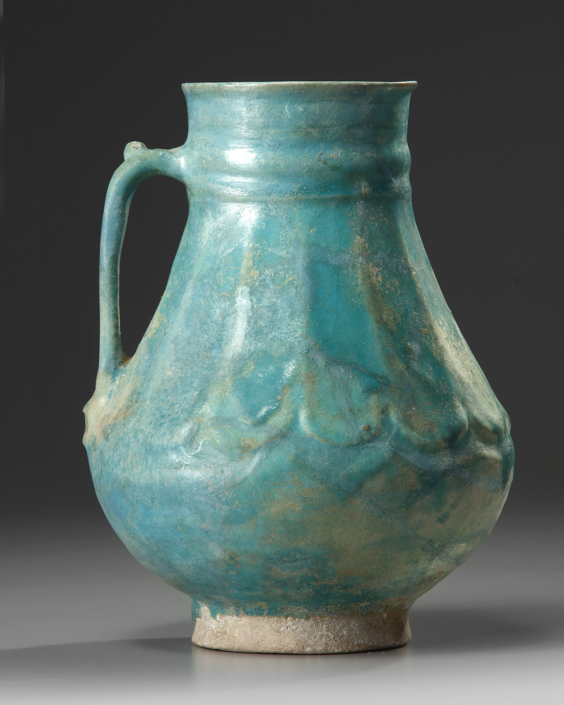A KASHAN TURQUOISE GLAZED JUG, PERSIA, 13TH CENTURY