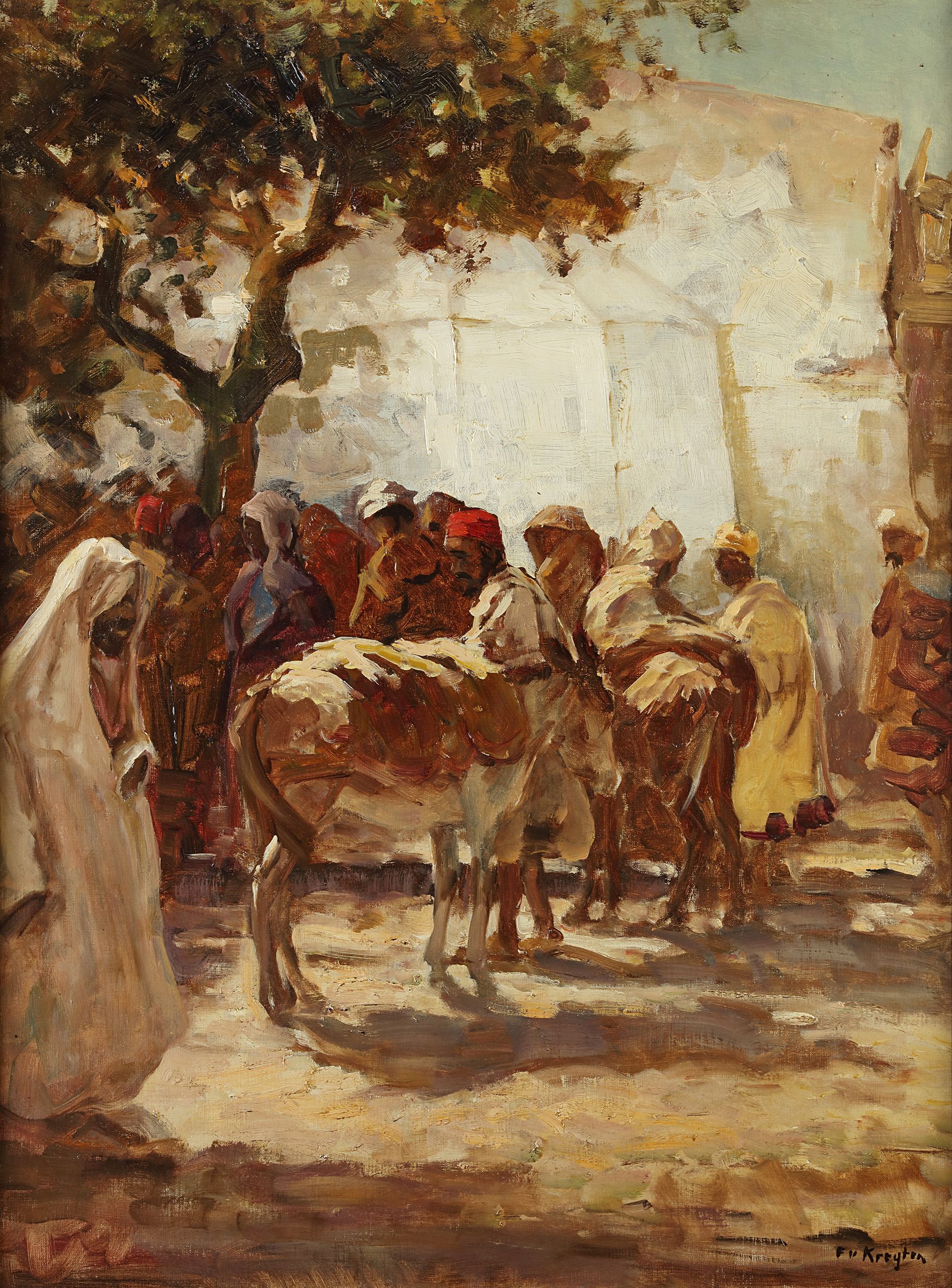 FEDOR van KREGTEN (Dutch 1871-1937) A donkey-market in the Orient.