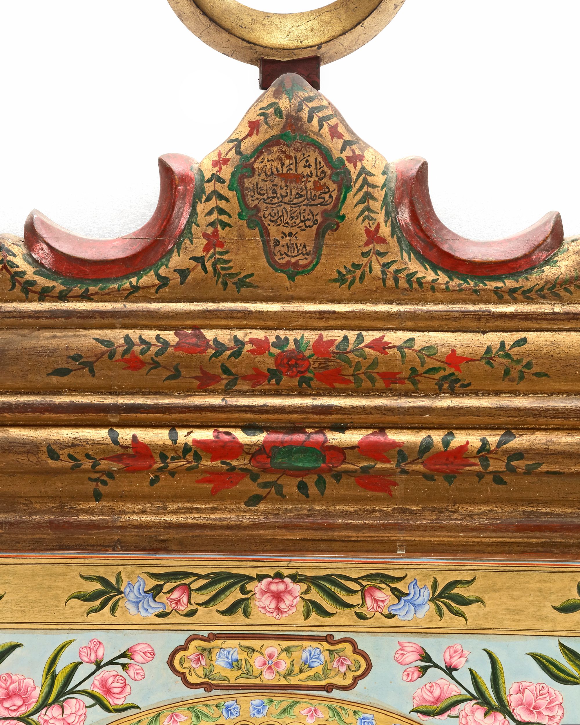At the center of the upper part of the panel there is an Ottoman inscription, where the date is given as 1178 AH, which corresponds to 1764/65 AD which is the last year that Baronyan was in life. A very similar panel was sold in 2002 in Bonhams with the same date of 1178 AH given on top of the frame.