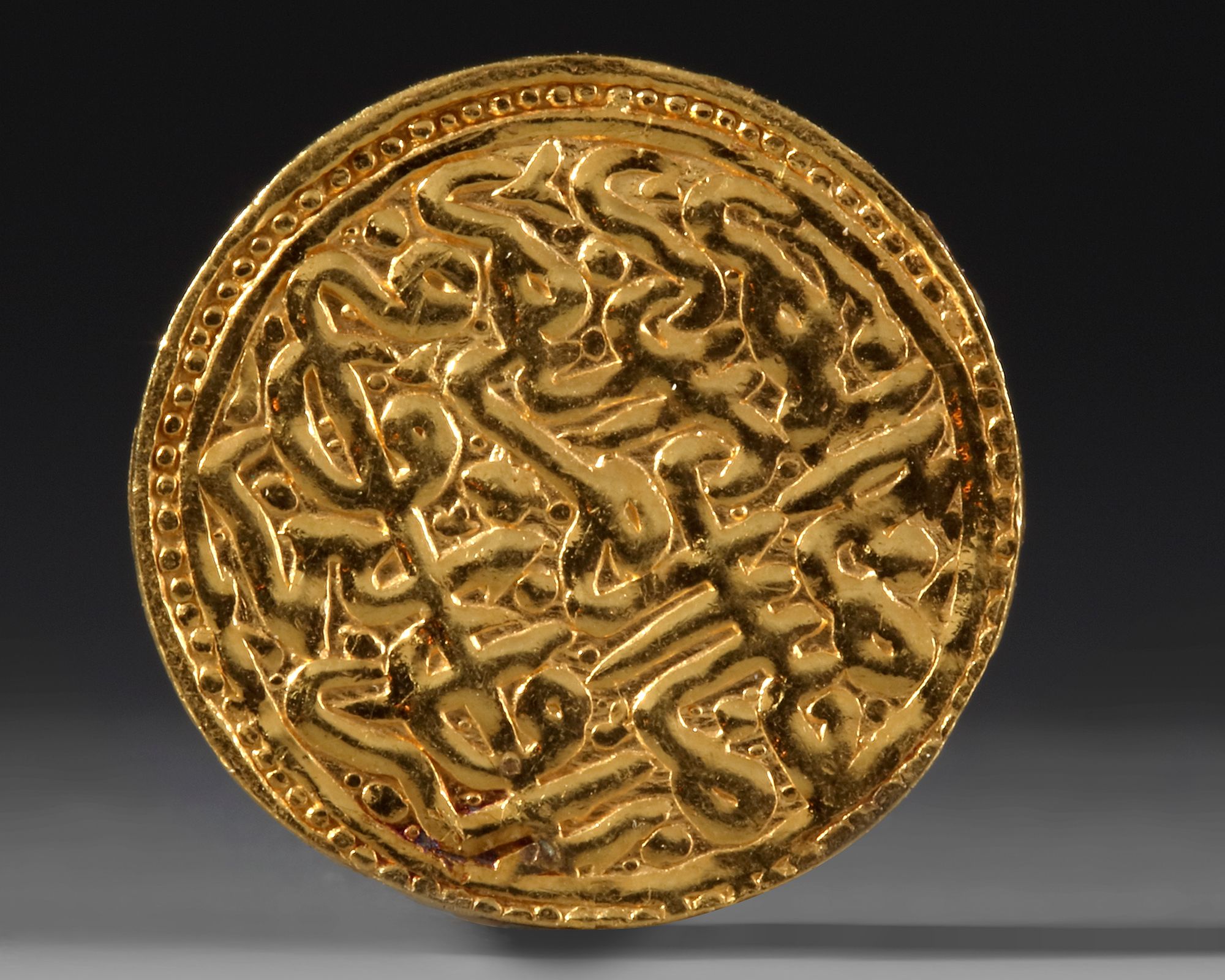 Obverse Inside a circle, the titulature of the sultan followed by the mint and the accession year. سلطان سليمان بن سليم خان عز نصره ضرب في سنة ۹۲٦ Sultan Suliman, ibn Selim Han, Azze Nasruhu Duriba bi 926AH/ The sultan Suleiman, Son of Selim Khan, May his Kingdom perpetuate, Struck in 926 (AH). 3.47 g