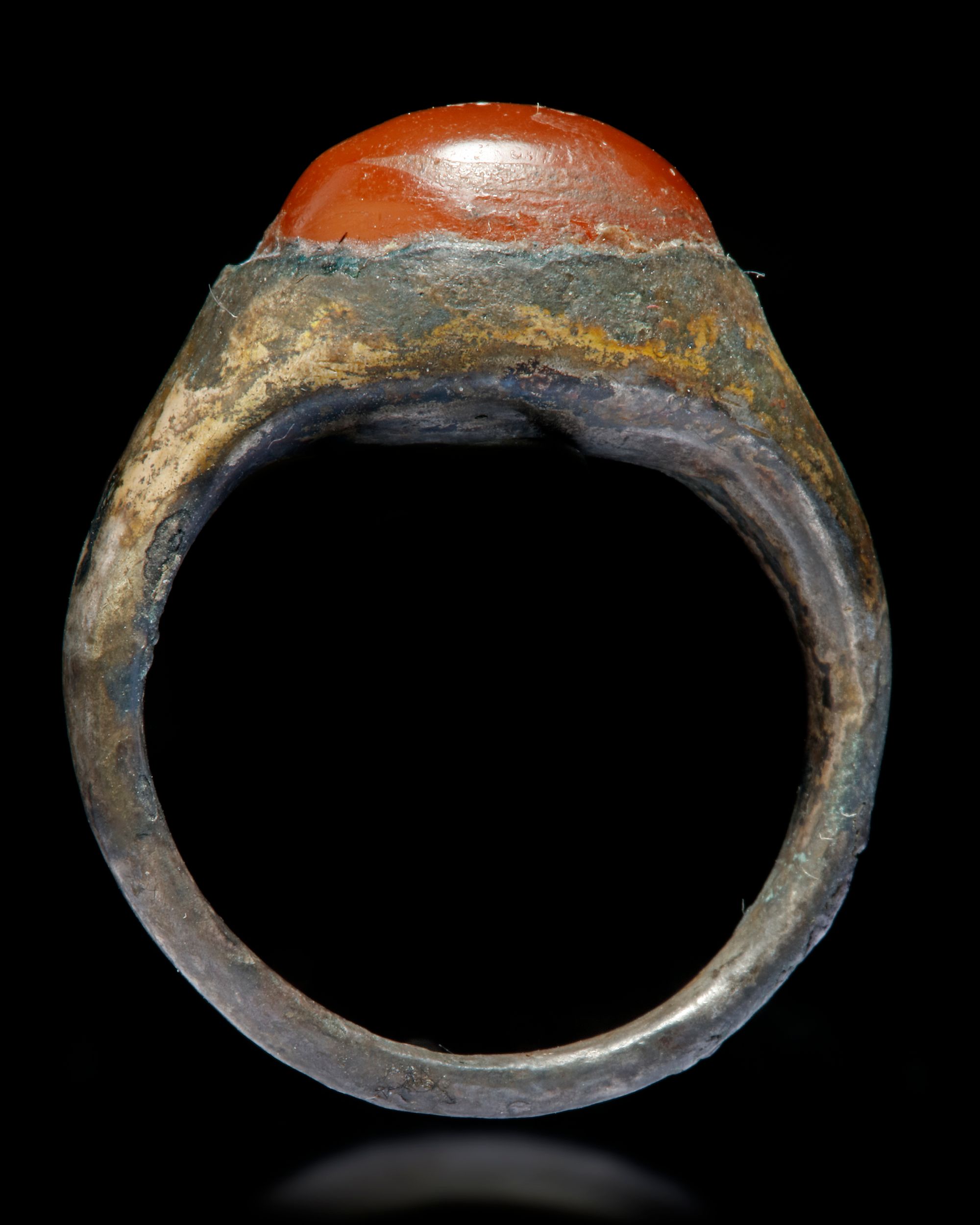 An agate seal with oval shape set in a silver ring, engraved with a text in Kufic script. 5th AH-11th AD century