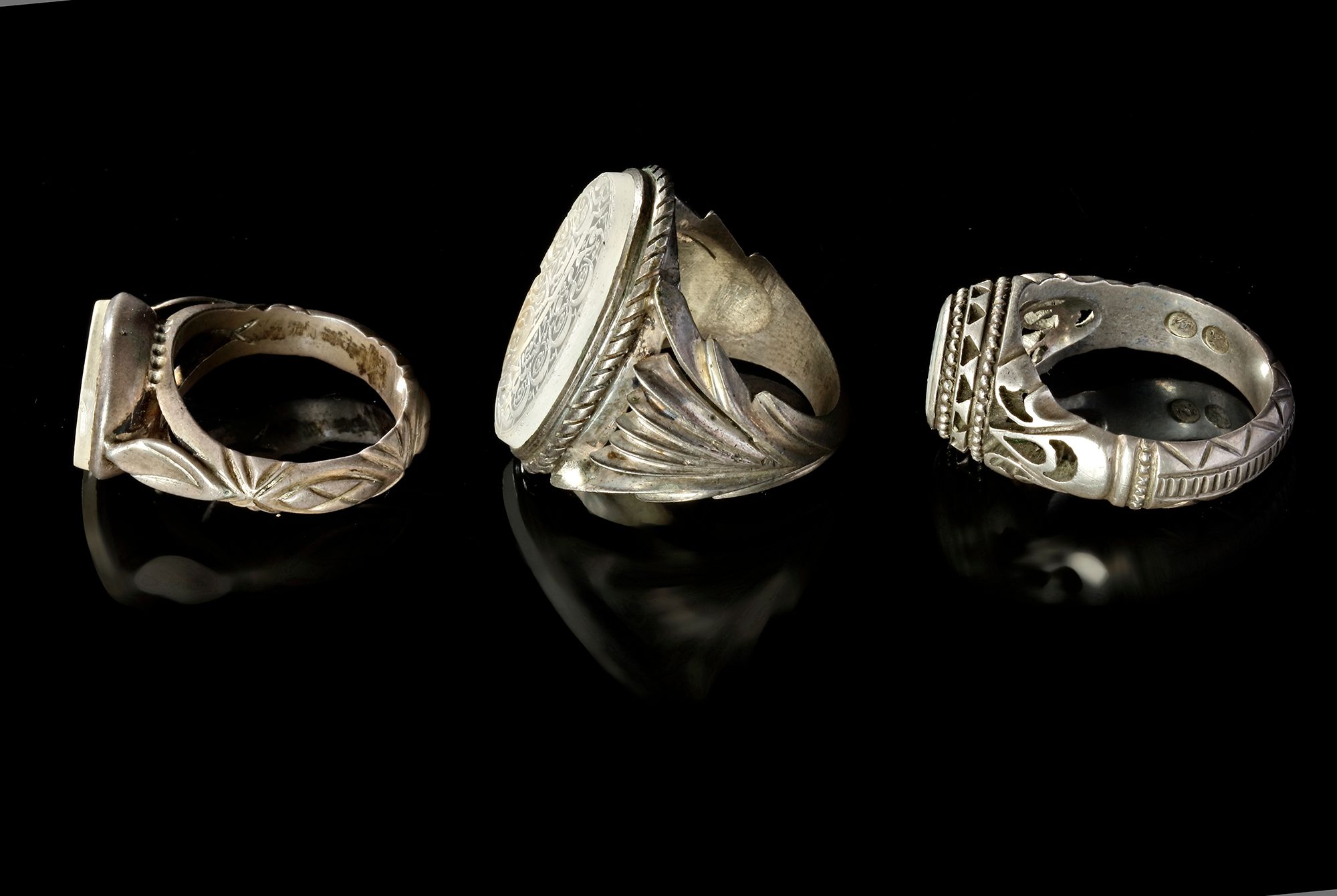 A crystal seal of oval shape, set in silver ring engraved with the text "إلا بأ؟من الموت؟نعم الله؟ " in kufic script script.