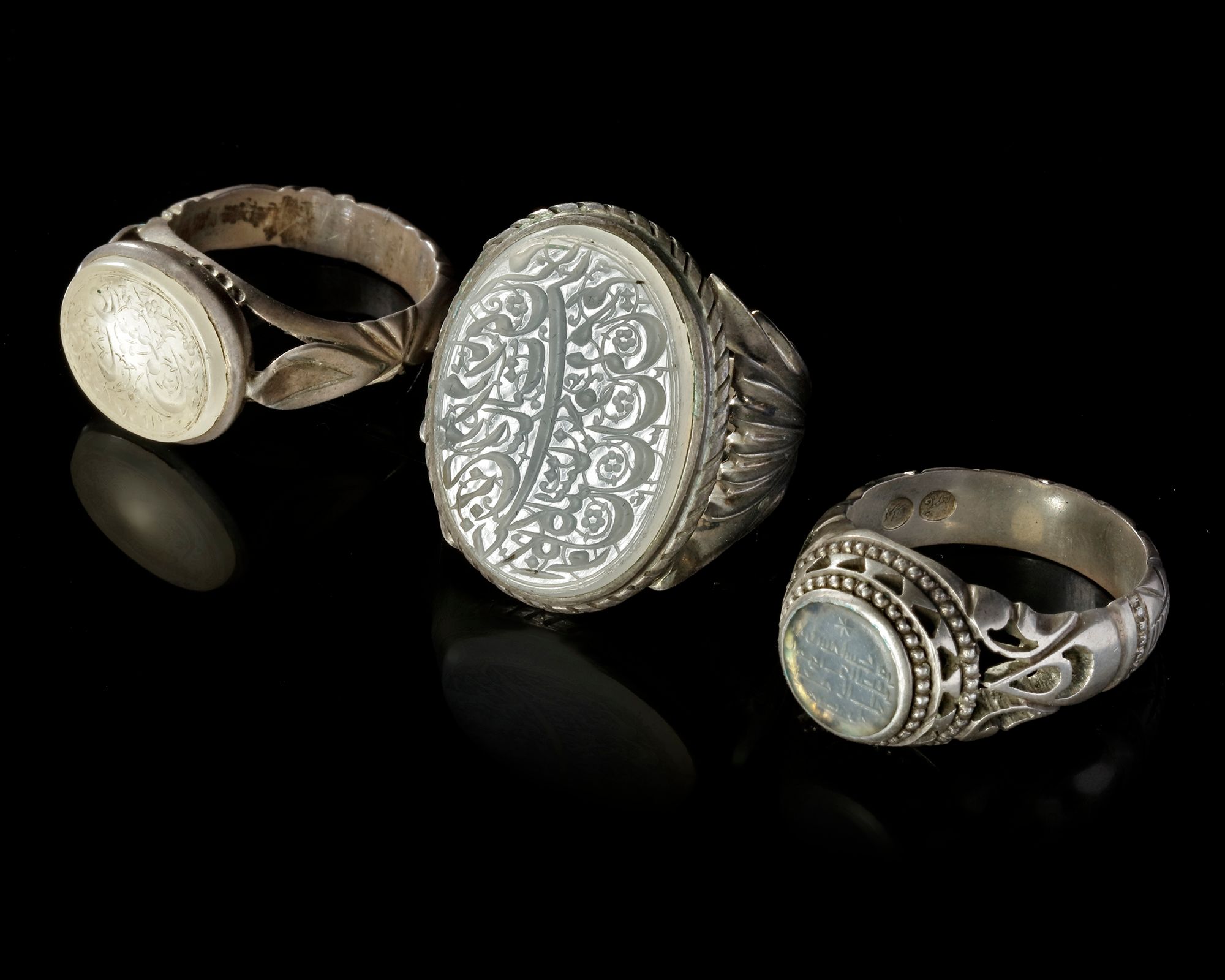 A crystal seal of oval shape, set in silver ring engraved with a text in nastali'q script.