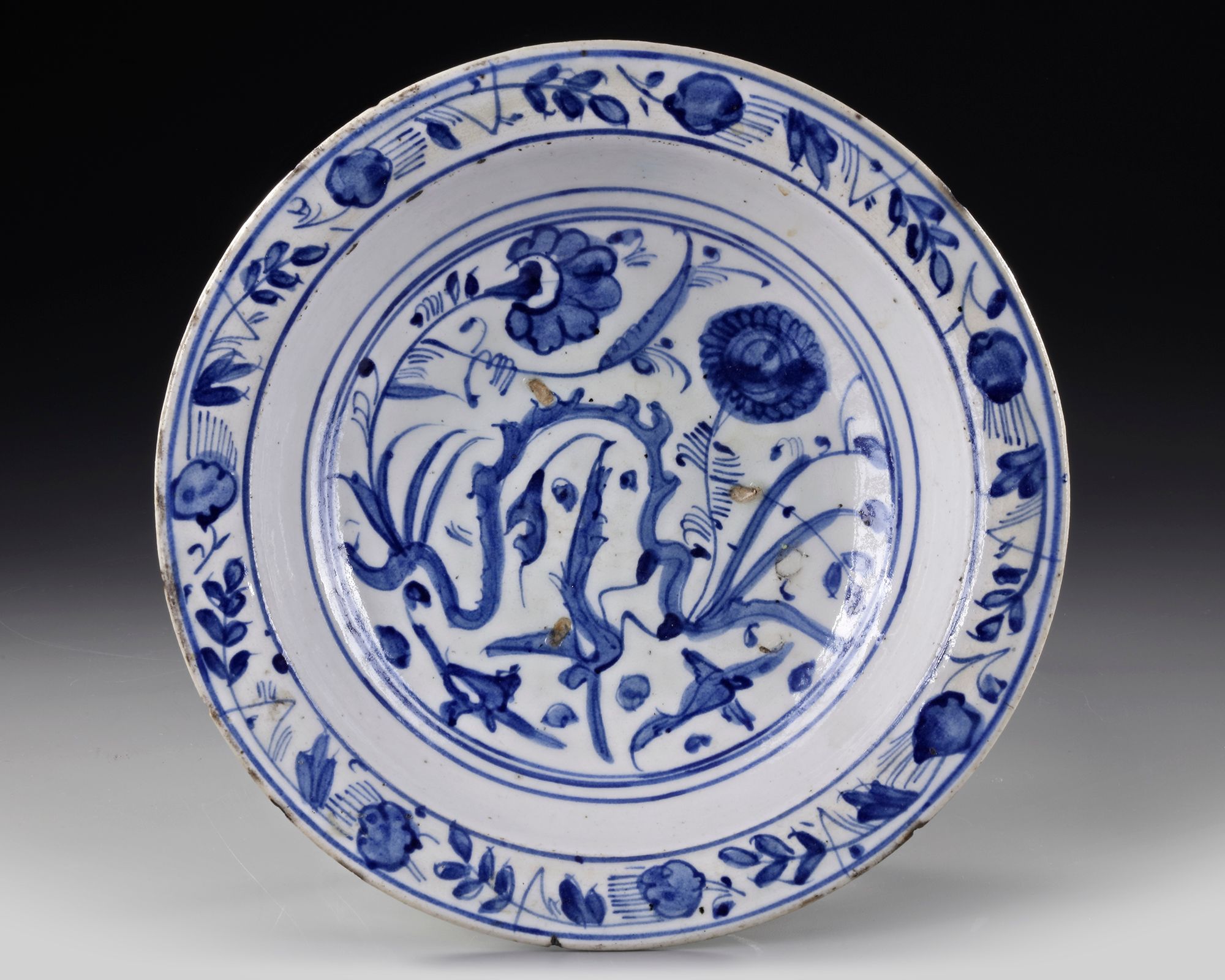 A SAFAVID BLUE AND WHITE POTTERY DISH, PERSIA, 16TH CENTURY