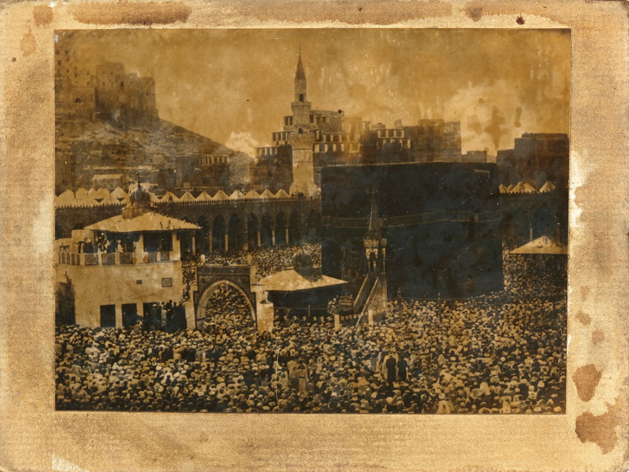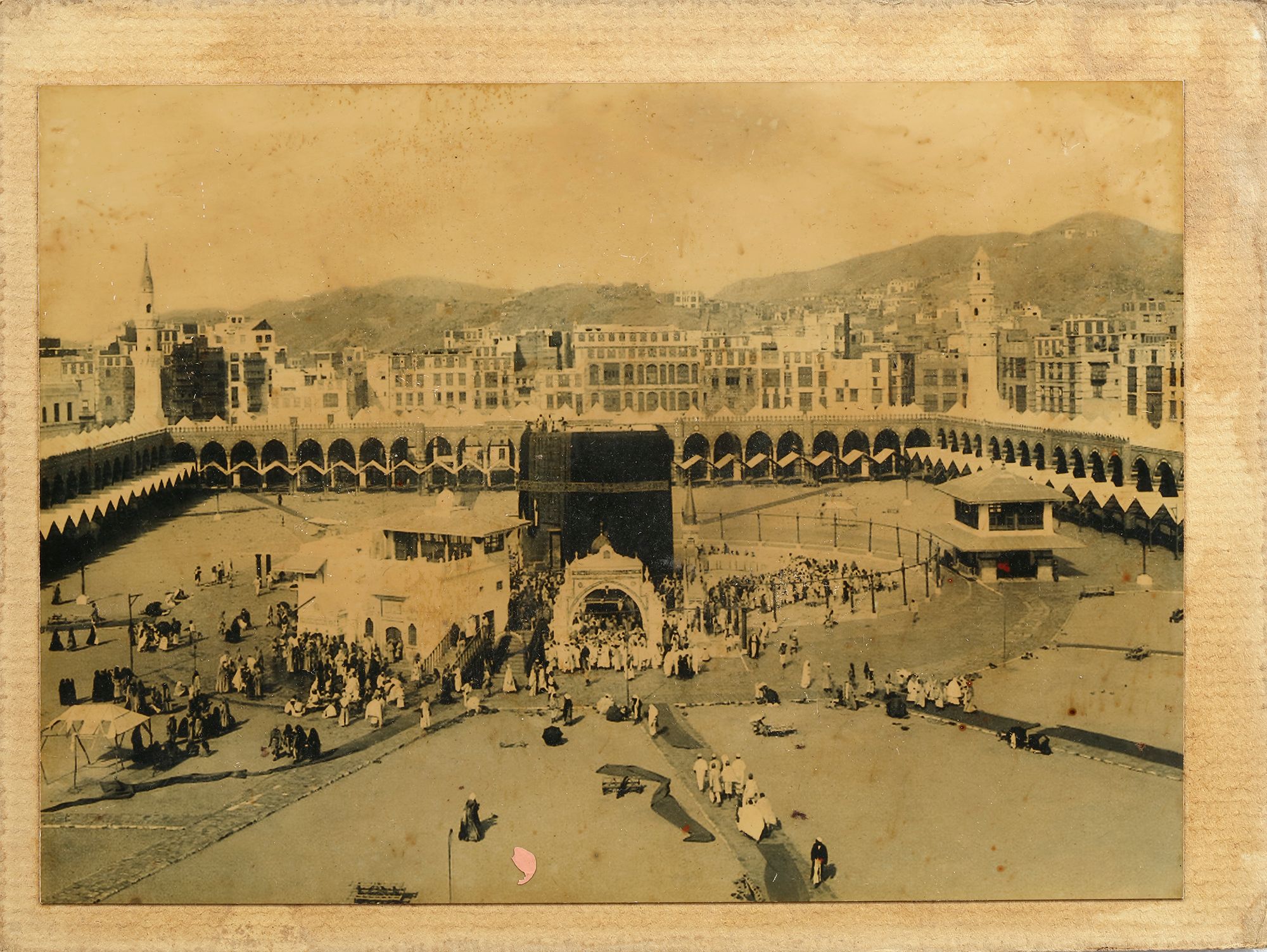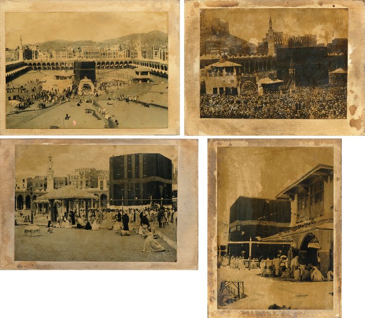 Four rare photographs, including of Mecca with prayers around the Kaaba. Early 20th century 18 by 13 cm.