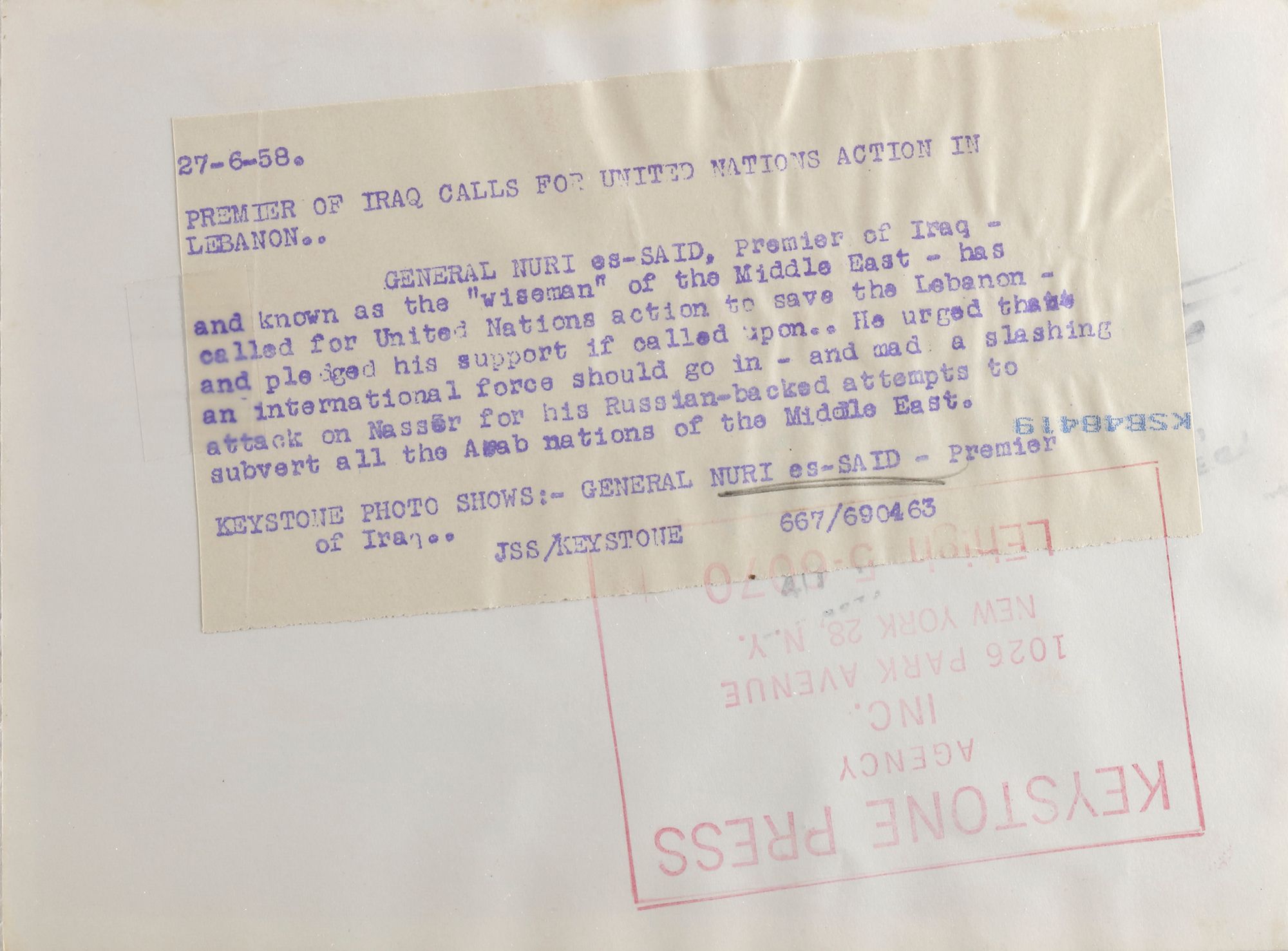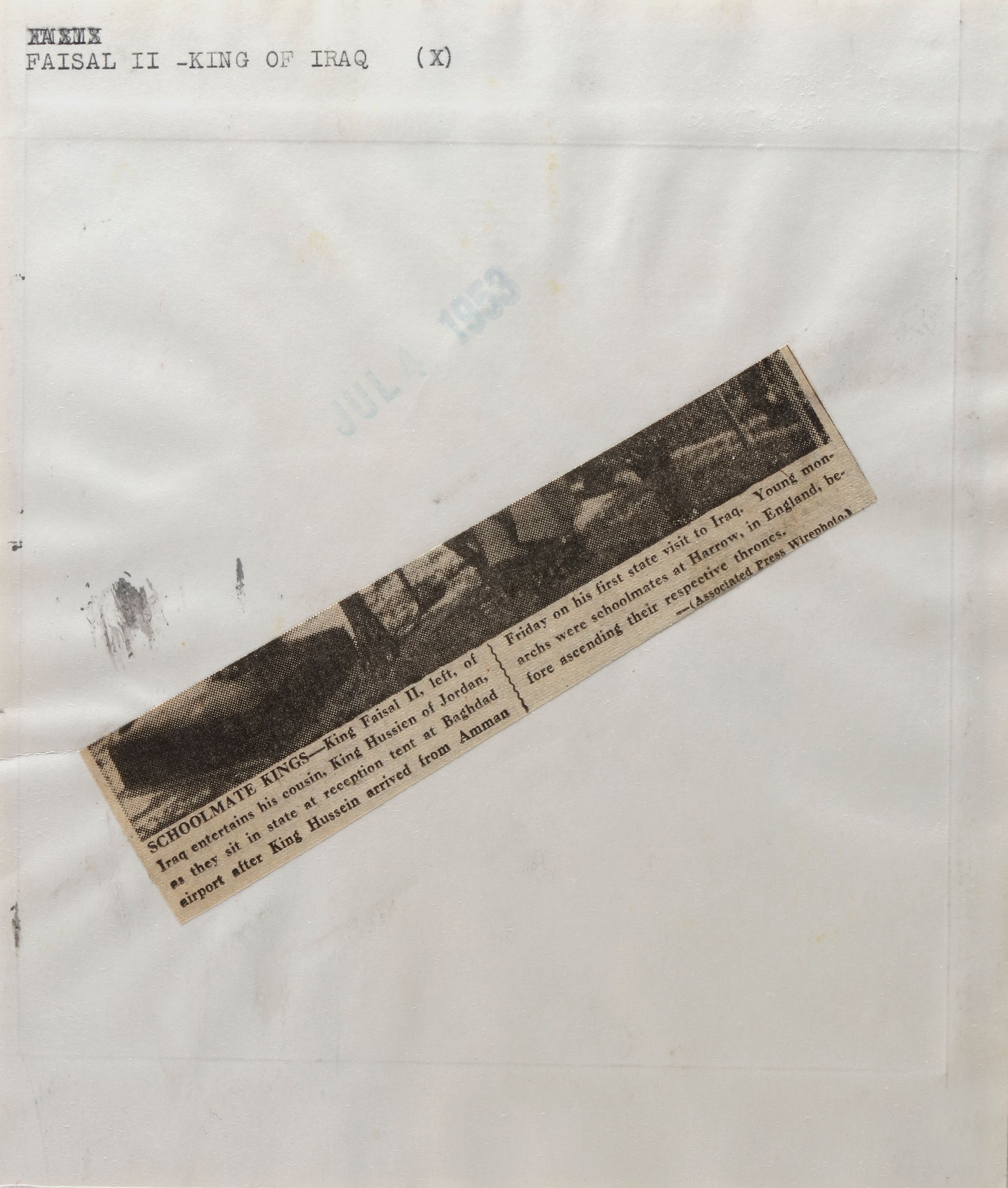 Four pictures of Faisal I king of Iraq during his visit to USA, one picture with Hussein king of Jordan, two pictures of Nuri al-said premier of Iraq.