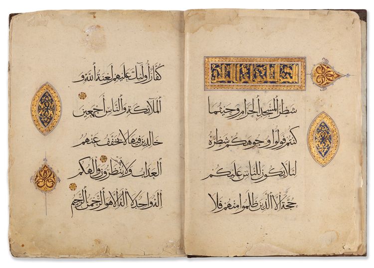For two folios from the 'Anonymous Baghdad Quran', in the Metropolitan Museum of Art, New York, copied by Ibn al-Suhrawardi, and illuminated by Muhammad ibn Aibak ibn 'Abdallah, and dated 706 and 707 AH/1306-07 AD and 1307-08 AD, see M. D. Ekhtiar et al (edd.), Masterpieces from the Department of Islamic Art in the Metropolitan Museum of Art, New York 2011, pp. 92-94, no. 54 A, B. For other examples of the work of both, see M. Lings, The Quranic Art of Calligraphy and Illumination, London 1976, nos. 46-48.