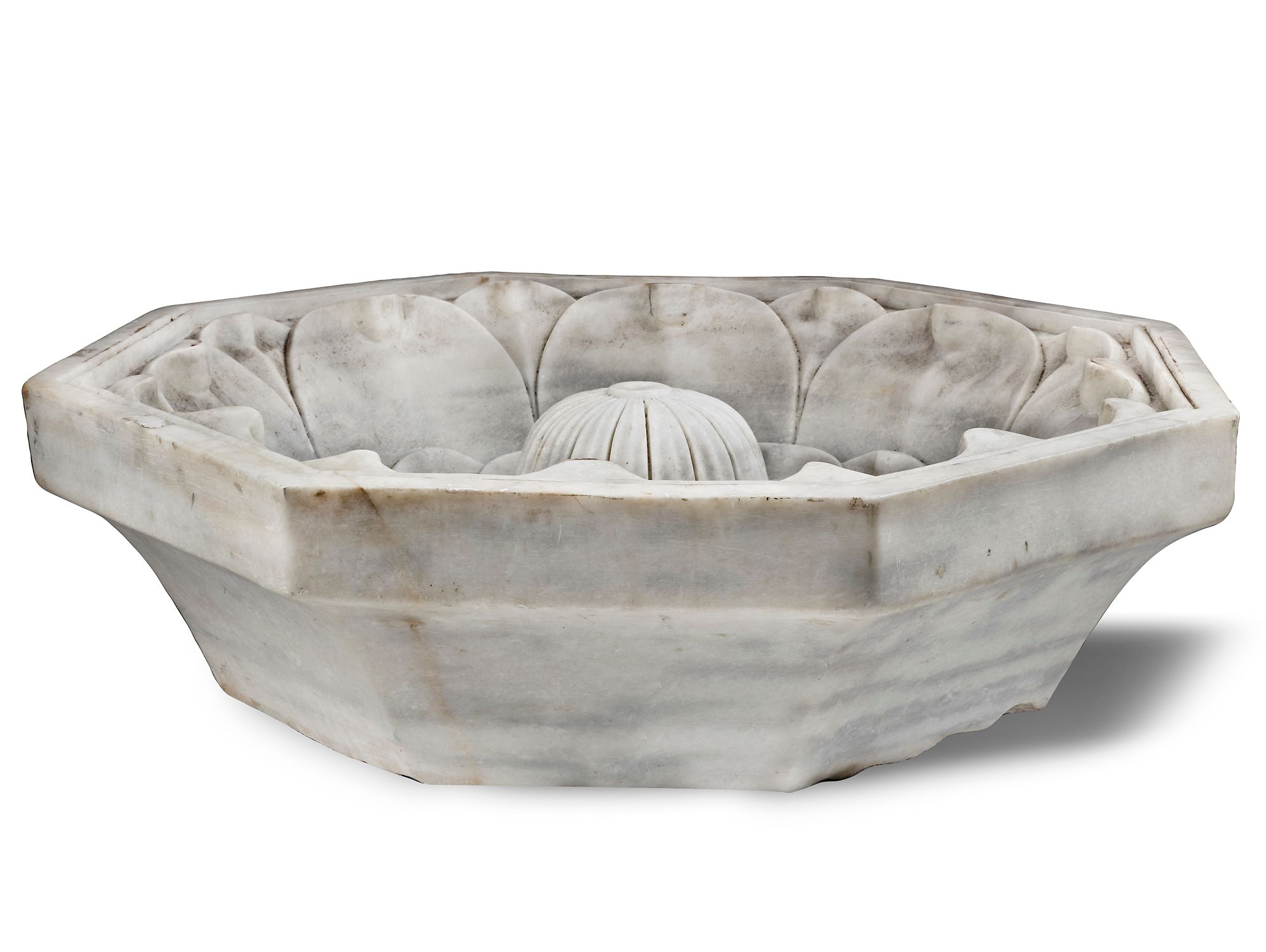Lot 150AN INDIAN CARVED WHITE MARBLE FOUNTAIN BASIN, NORTH INDIA, 19TH CENTURY