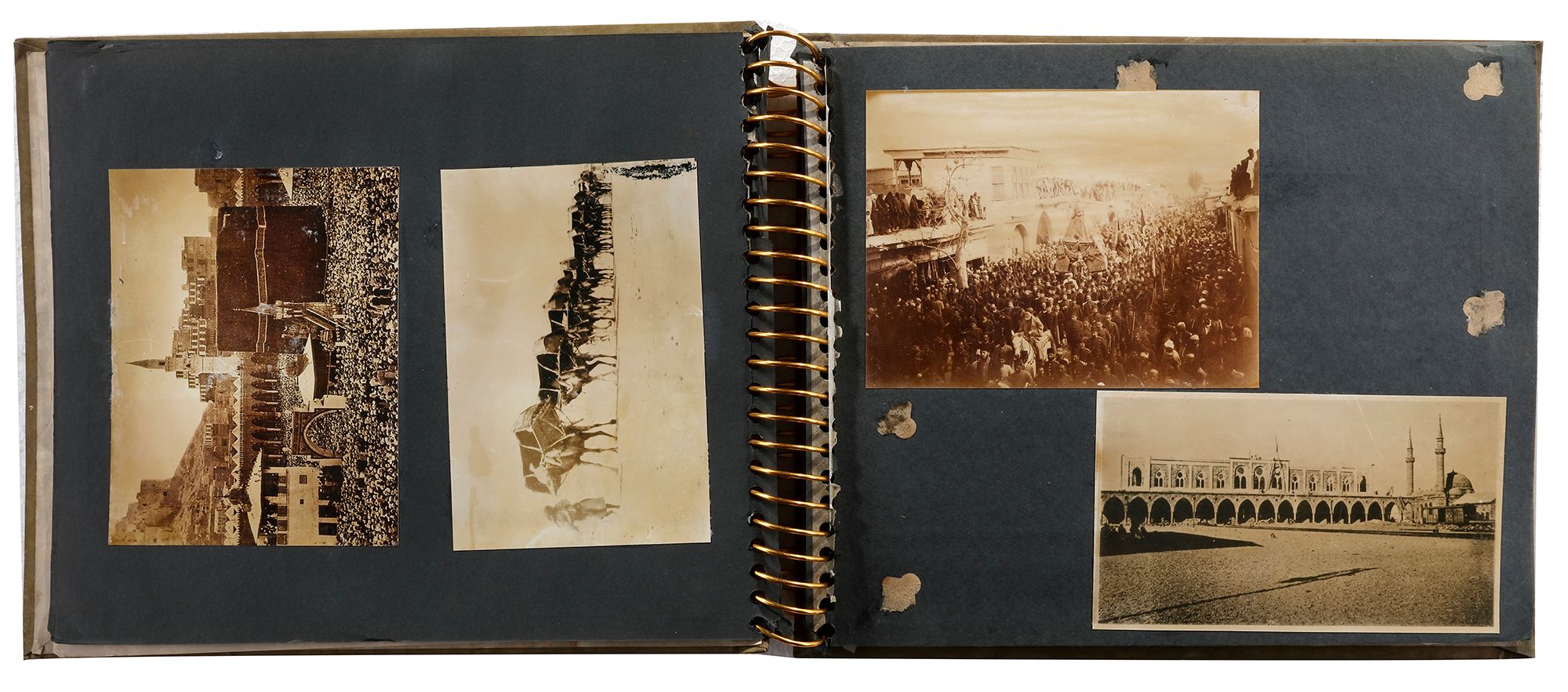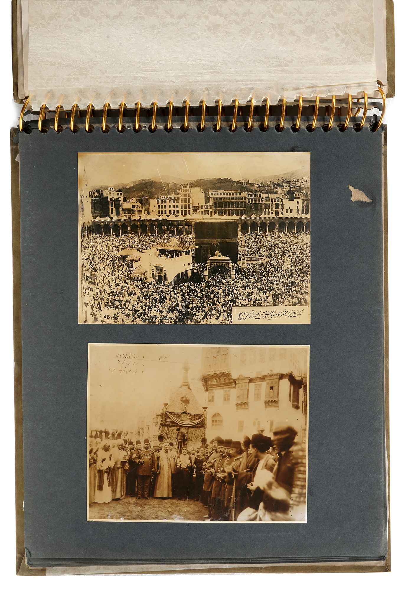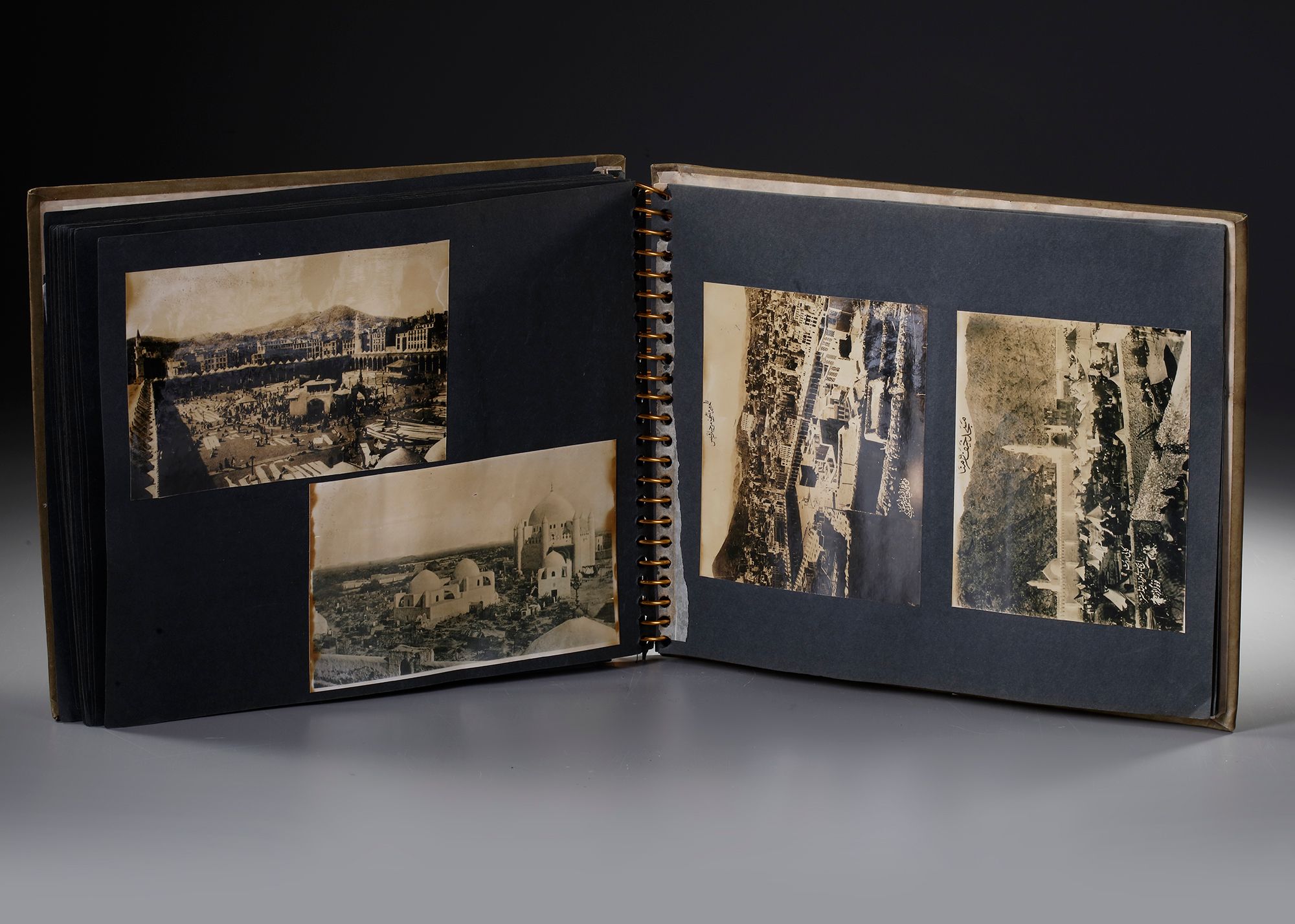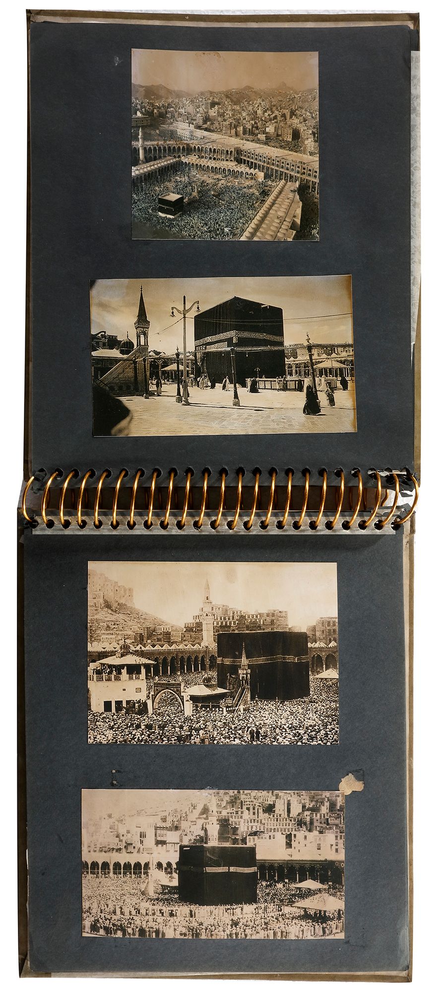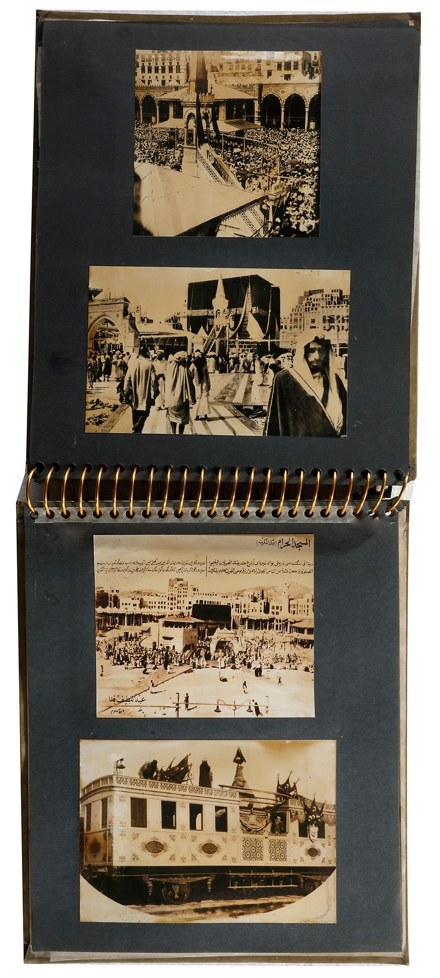 95 Photos including images of the Mahmal with pilgrims, the arrival of the Mahmal, during the Hajj travel to Mecca and Images of Mecca with prayers around the Kaaba, the Mahmal with pilgrims, pilgrims' tents at Arafat, the Ak-Khayf mosque at Mina, and views of the city of Medina and the Prophet's mosque.