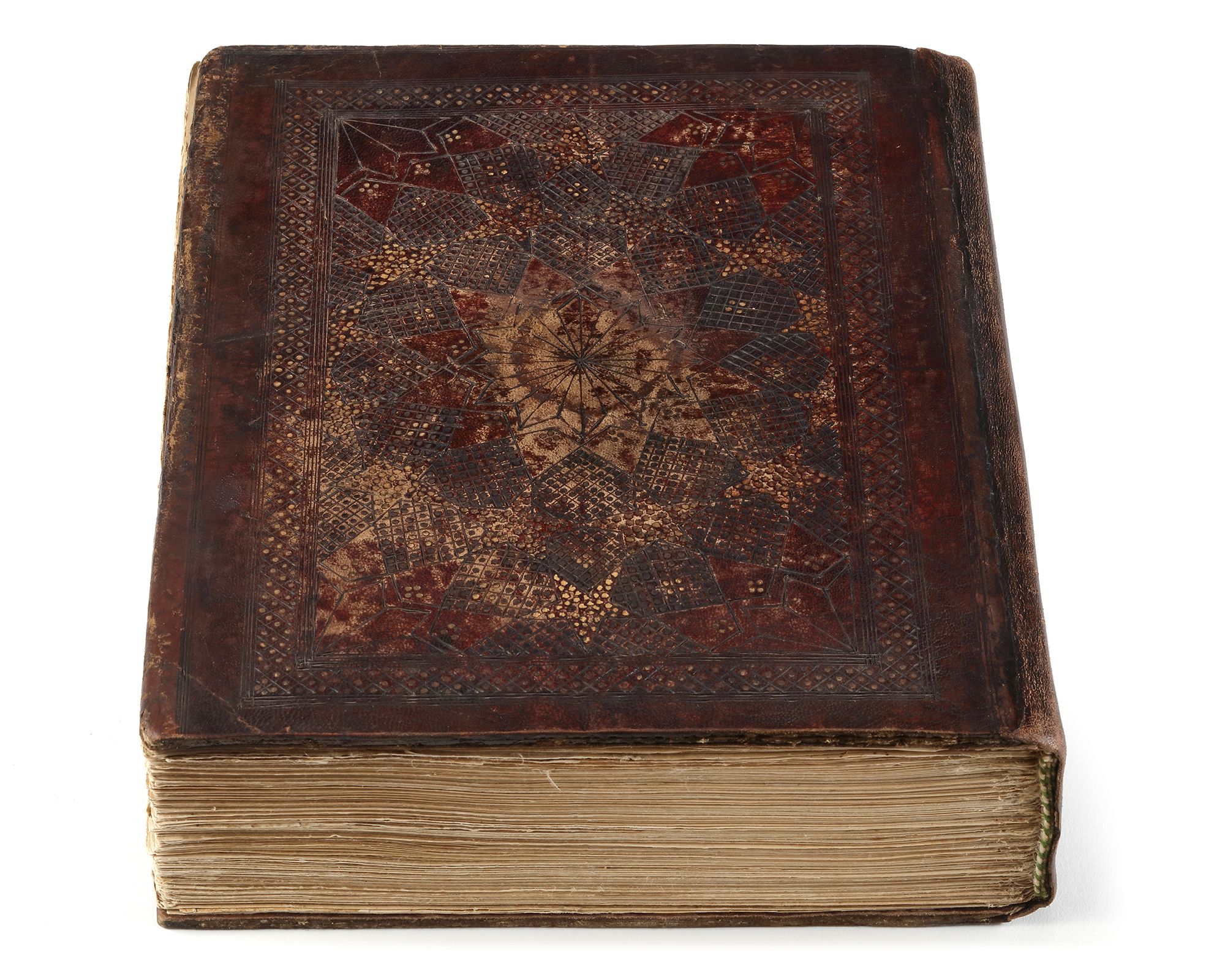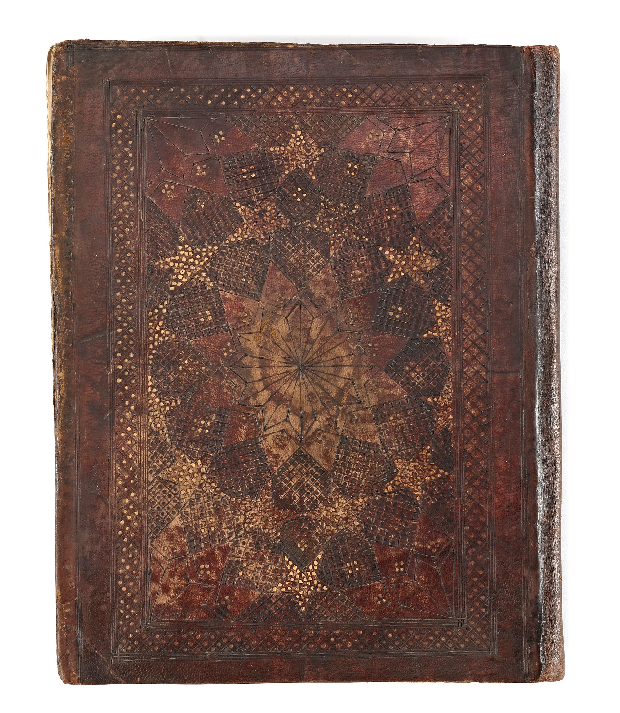 In brown morocco binding decorated with a central medallion and border.