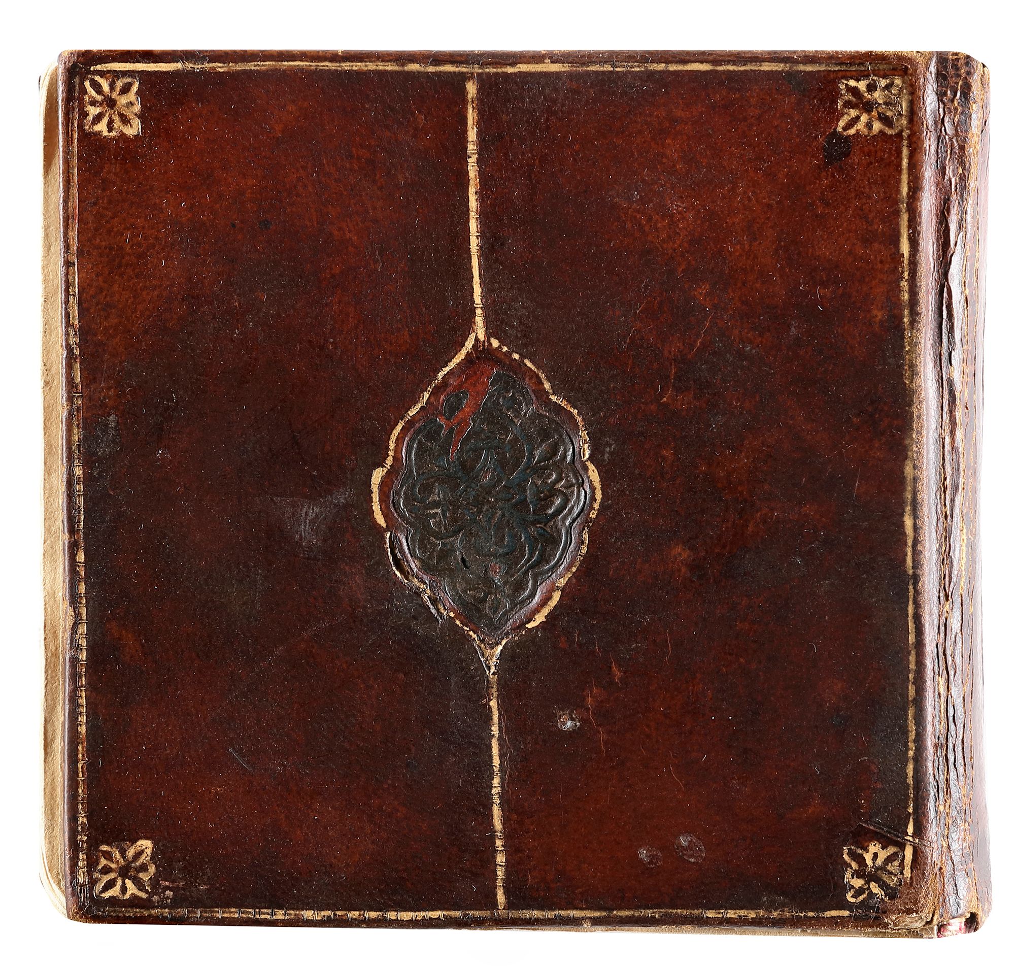 In gilt brown Morocco binding with flap.