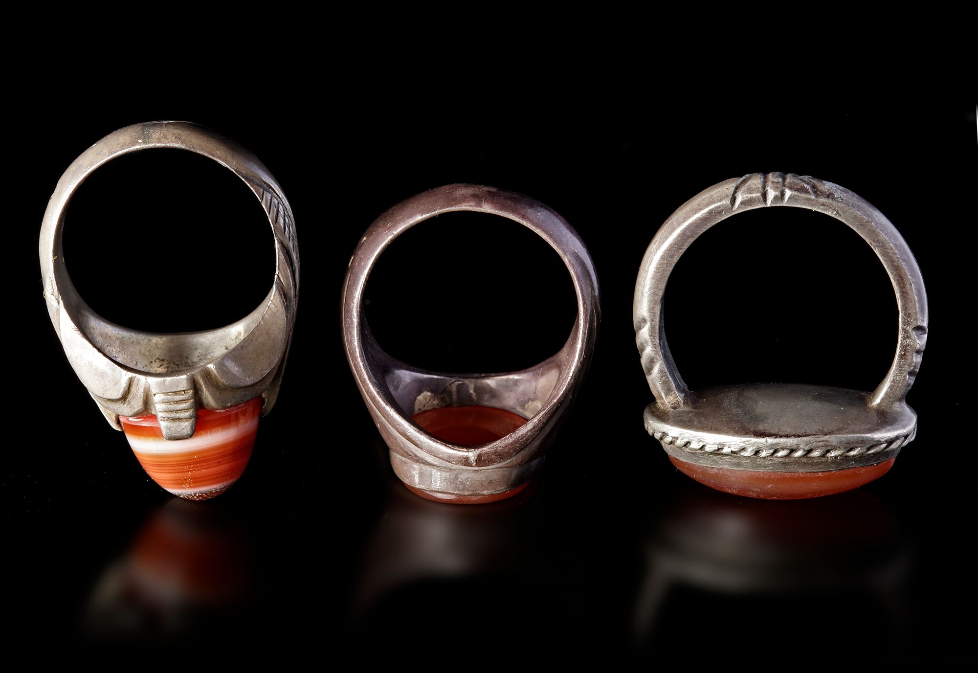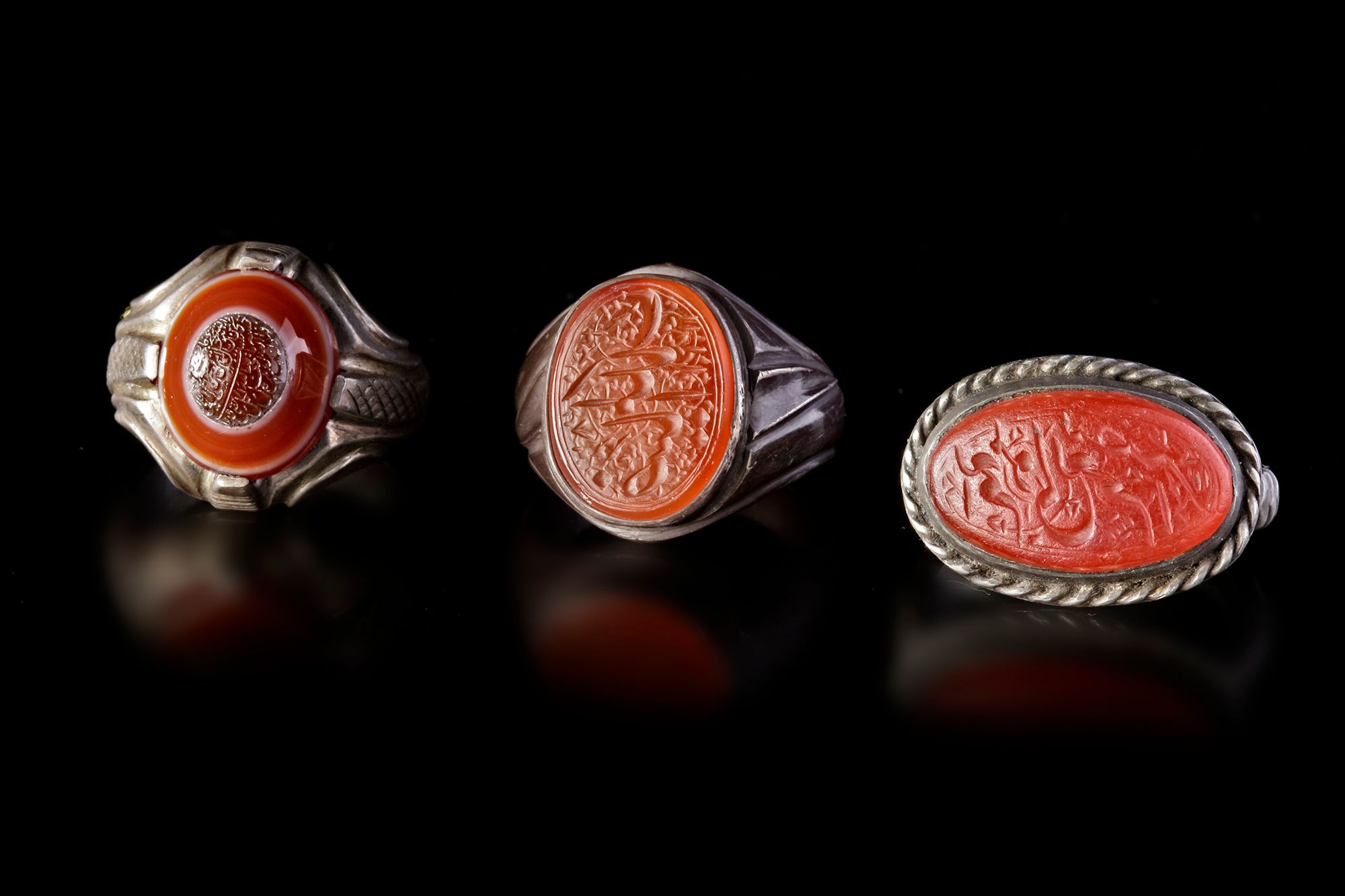 An agate seal of rounded shape, set in silver ring and engraved with the text "ضياء الملك, Dia'a al-Mulk "in nastali'q script.