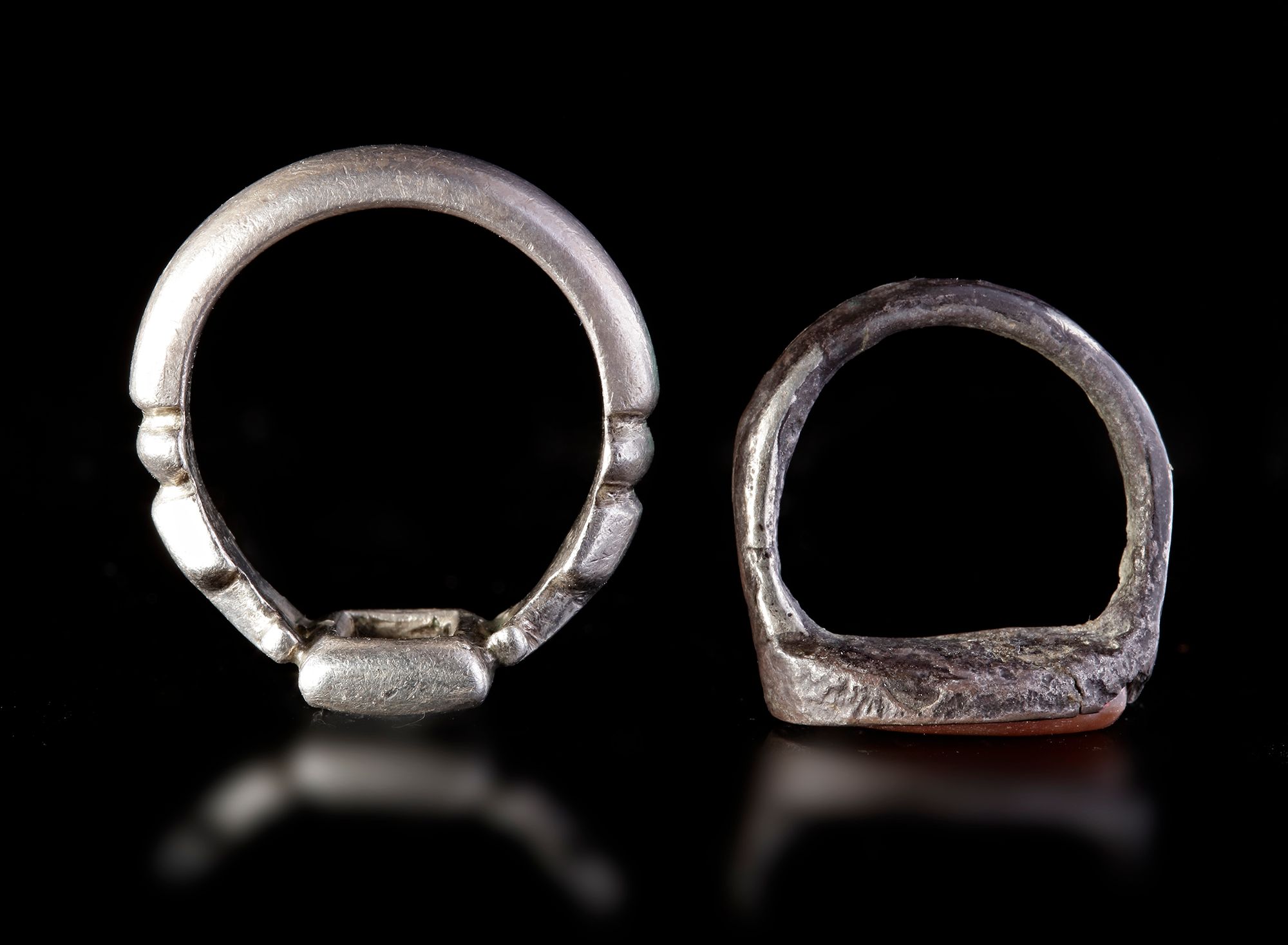An agate seal of square shape, set in silver ring engraved with the text " محمد , Muhammed " in kufic script.