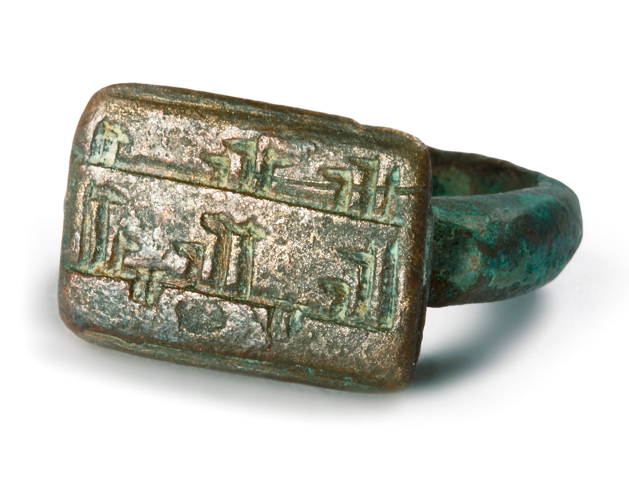 A bronze ring with rectangular shaped top engraved with Arabic kufic inscription. 1st/2nd AH-7th/8th AD century