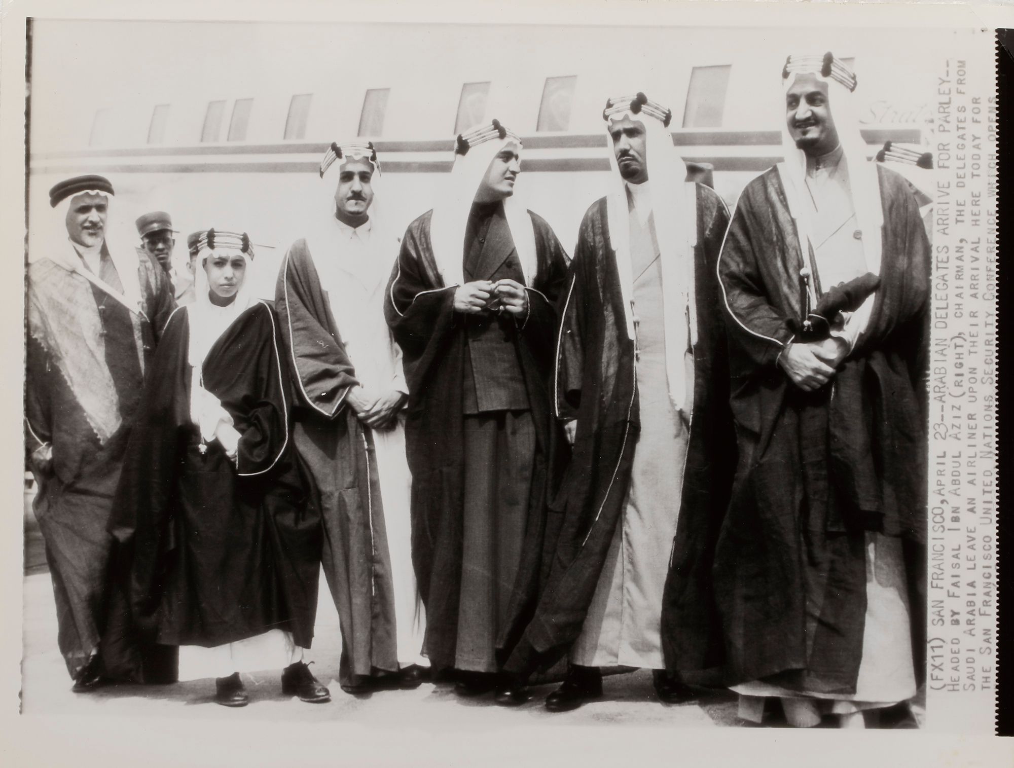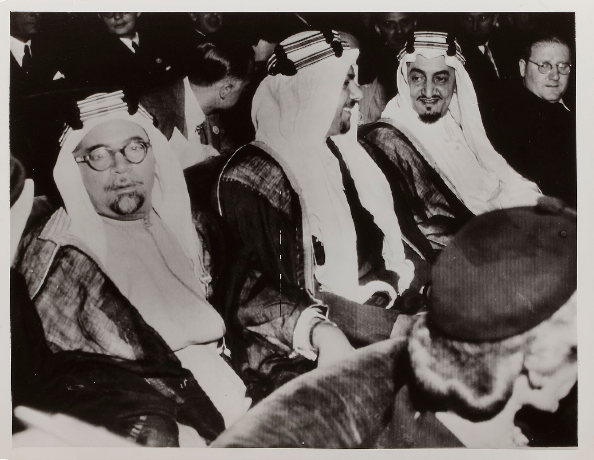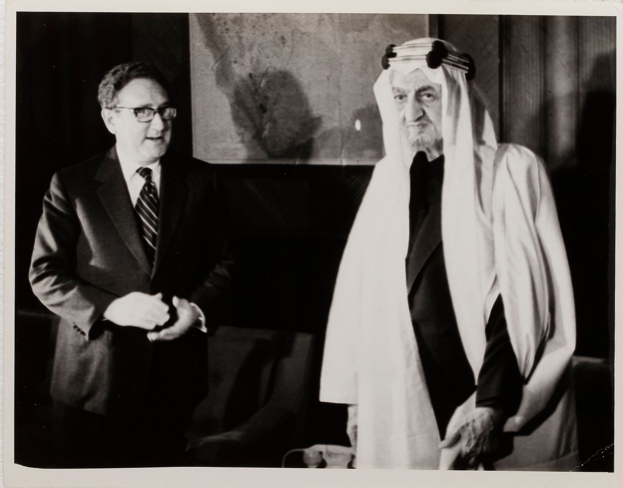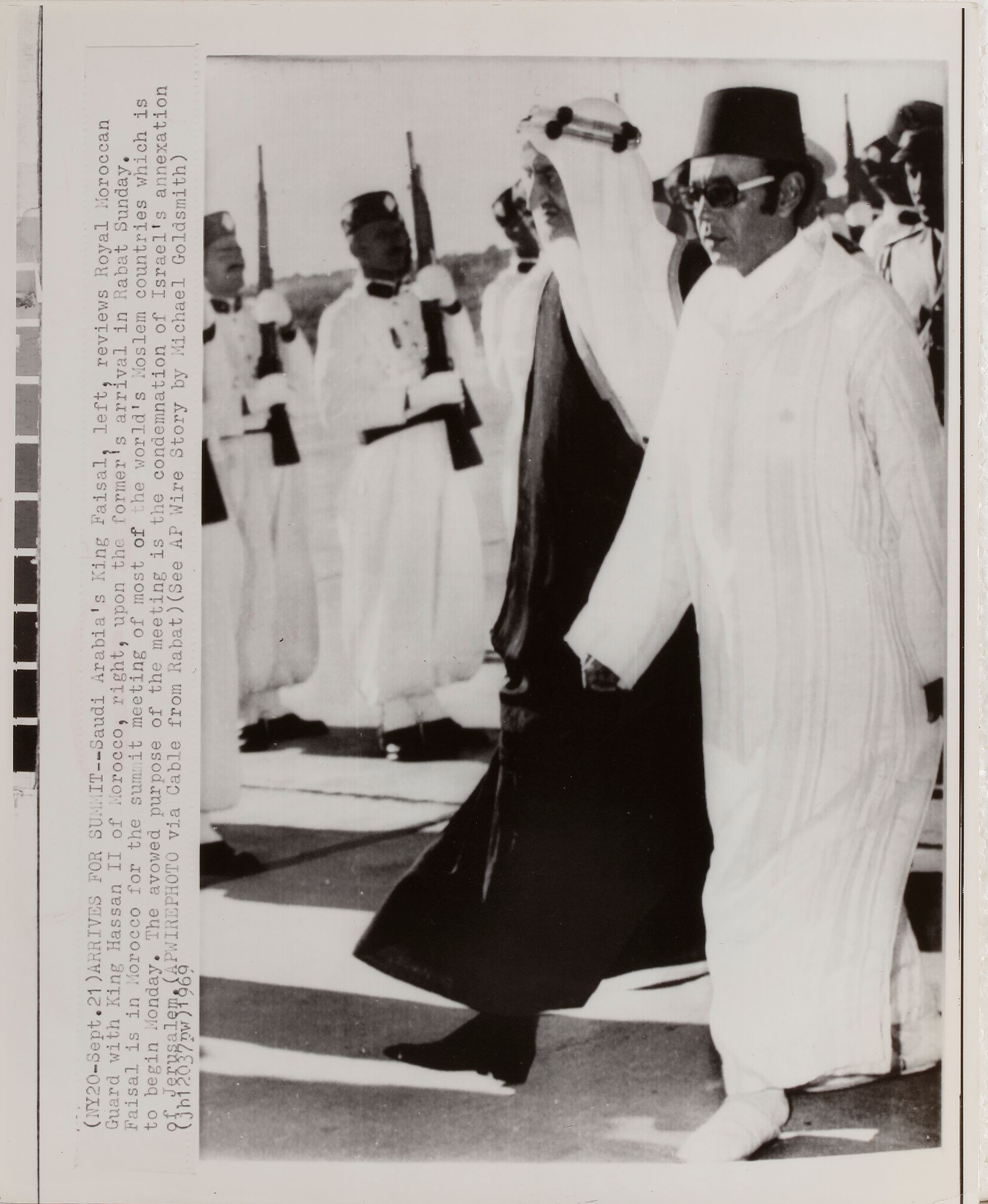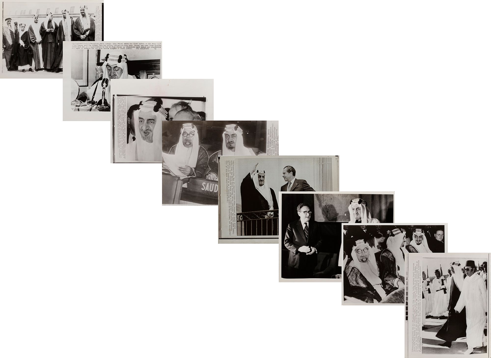 Eight pictures of king Faisal in different occasions, like his meeting with General Muhammed Naguib, king Hussain and king Hasan II. 20 by 25 cm.