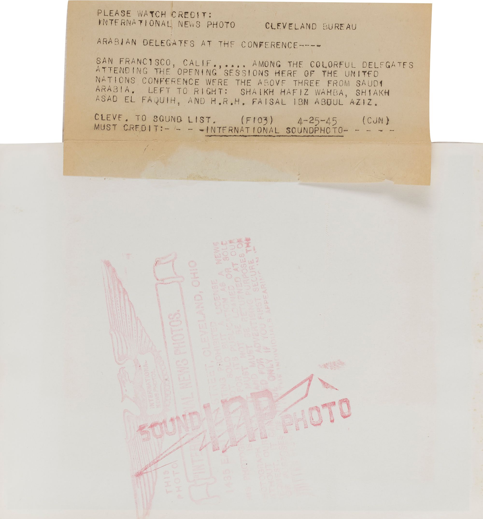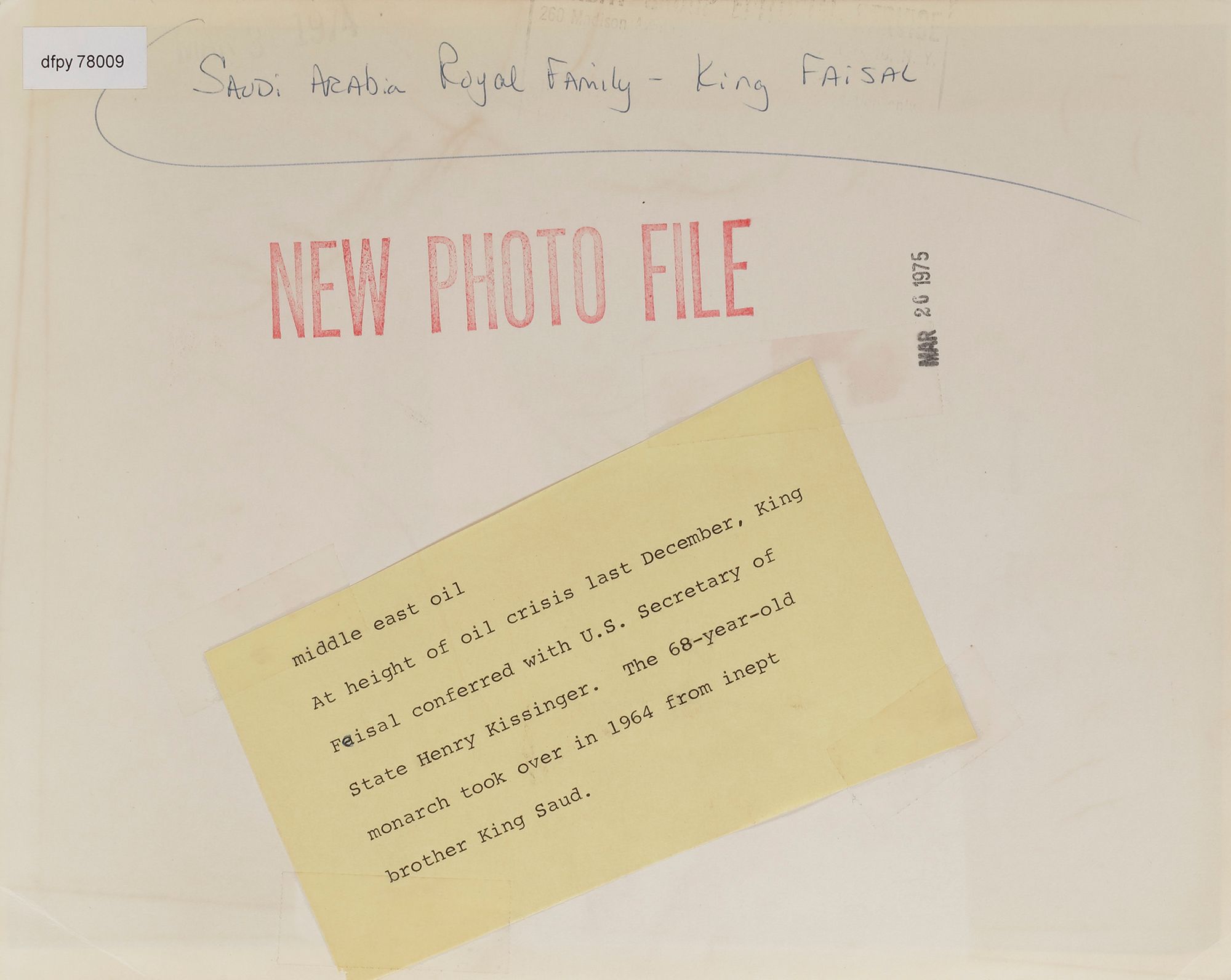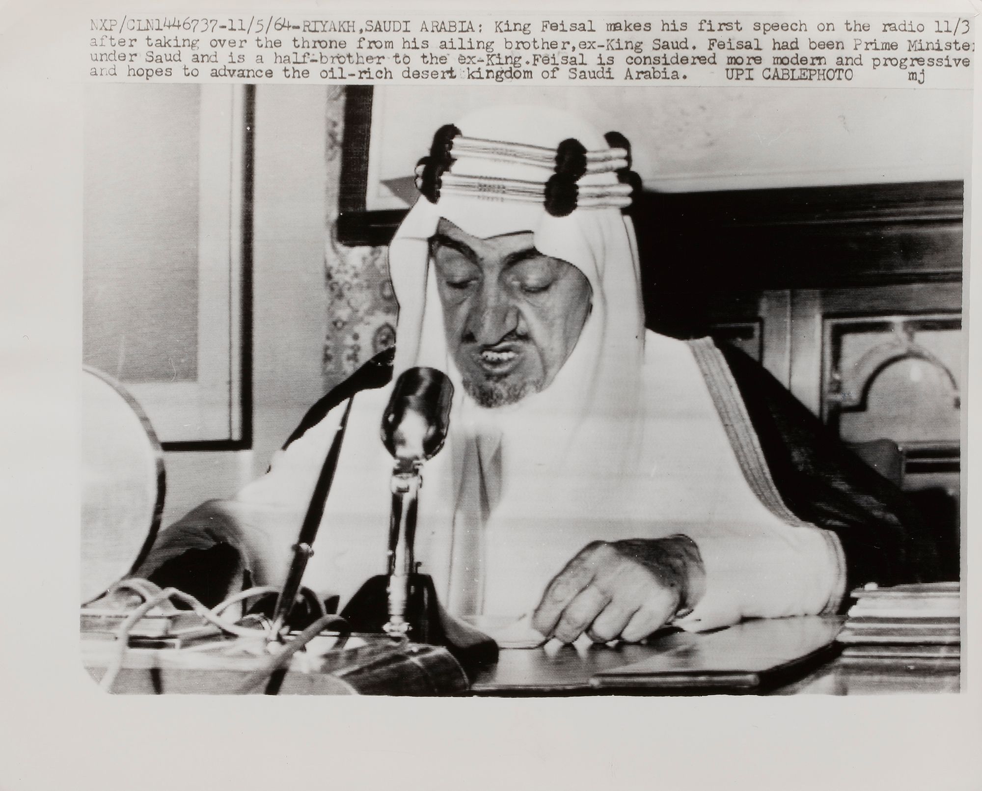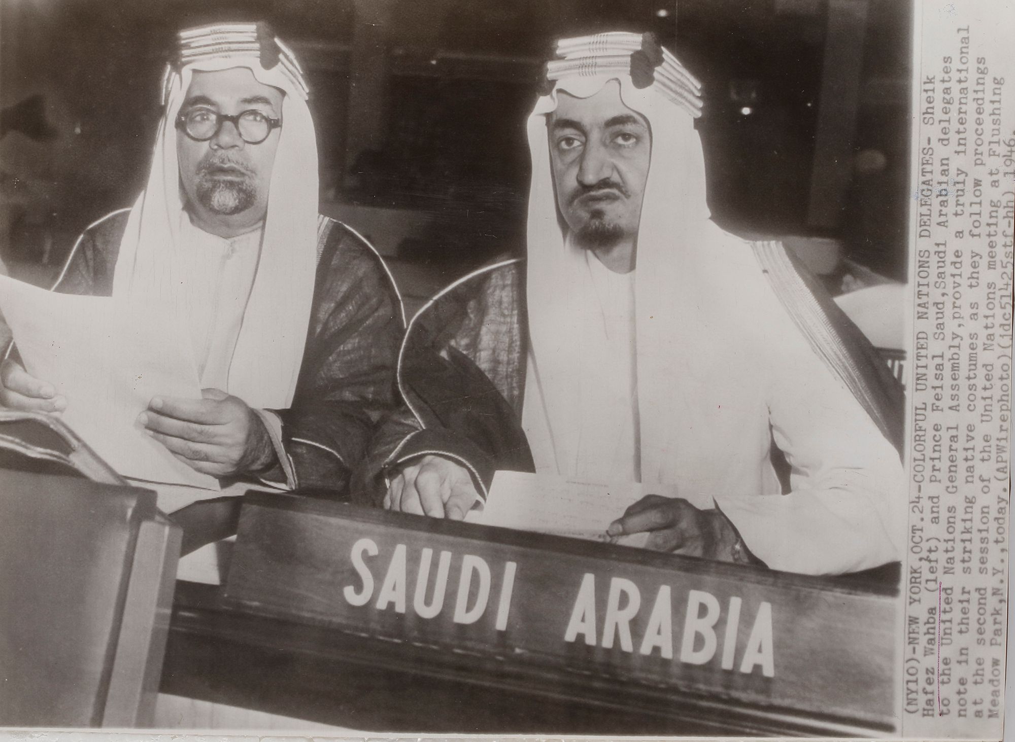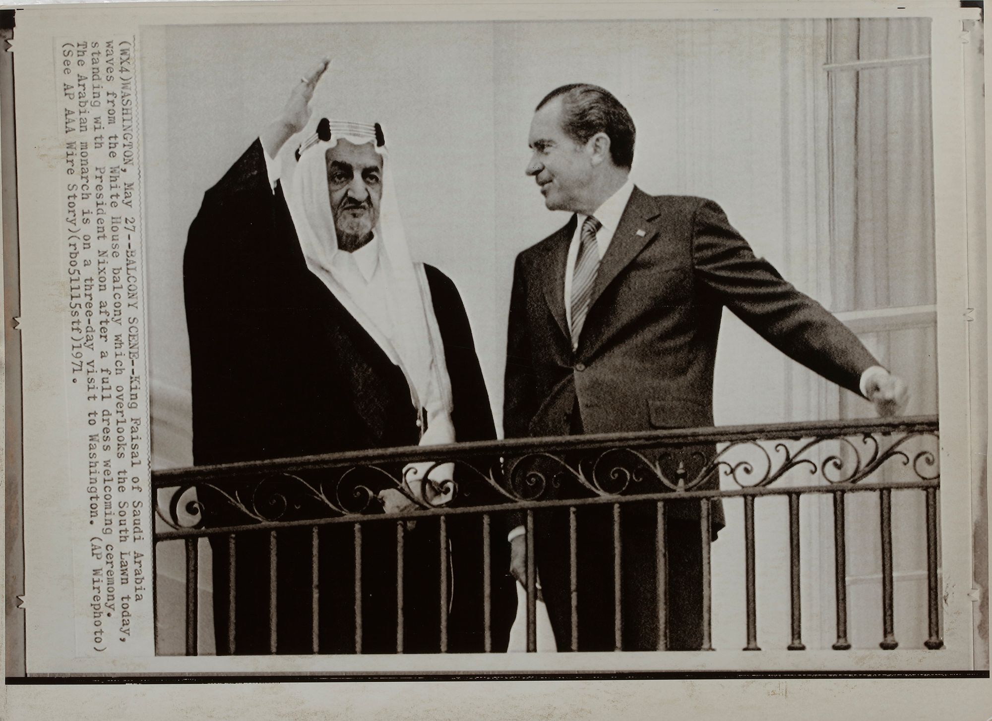 Eight pictures of king Faisal in different occasions, like his meeting with General Muhammed Naguib, king Hussain and king Hasan II. 20 by 25 cm.