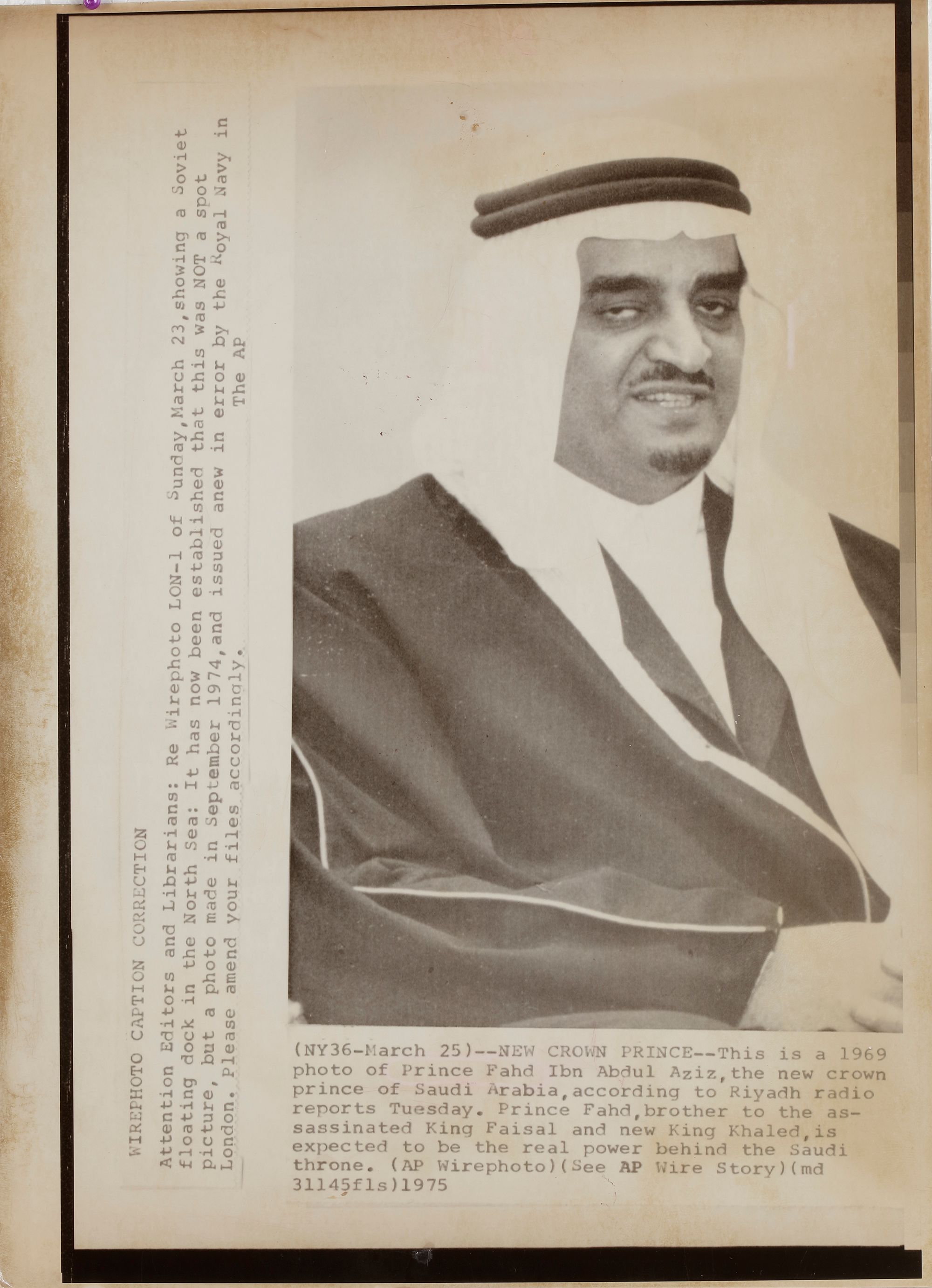 A COLLECTION OF SIX OLD PICTURES OF KING FAHD BIN ABDUL AZIZ AL SAUD, 5TH KING OF SAUDIA ARABIA,1950S-1980S