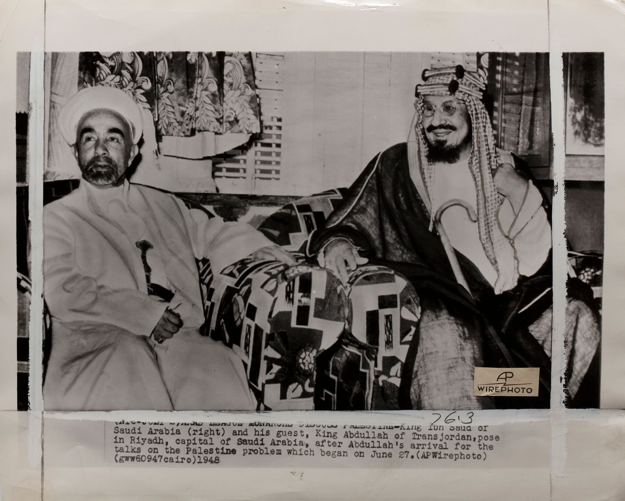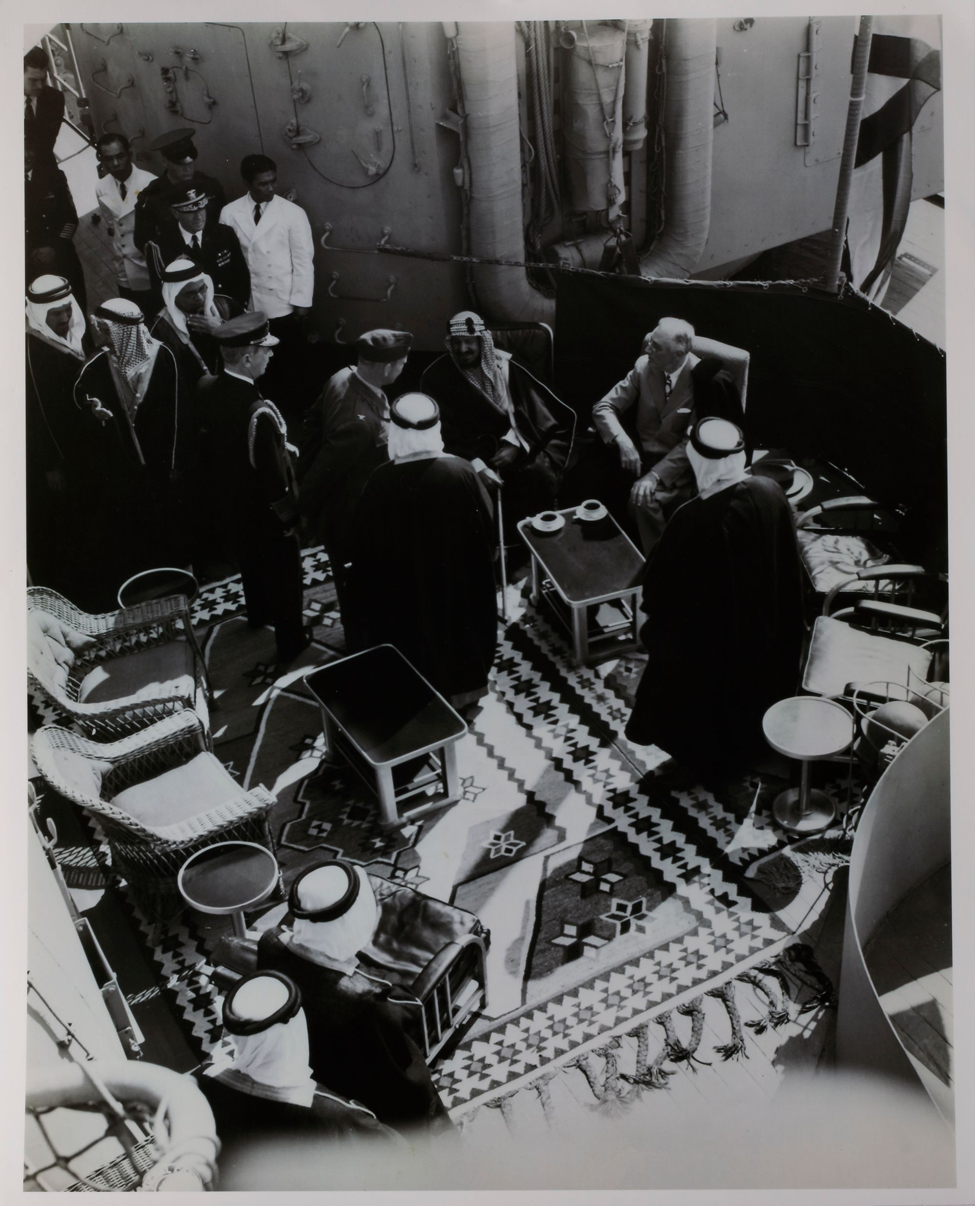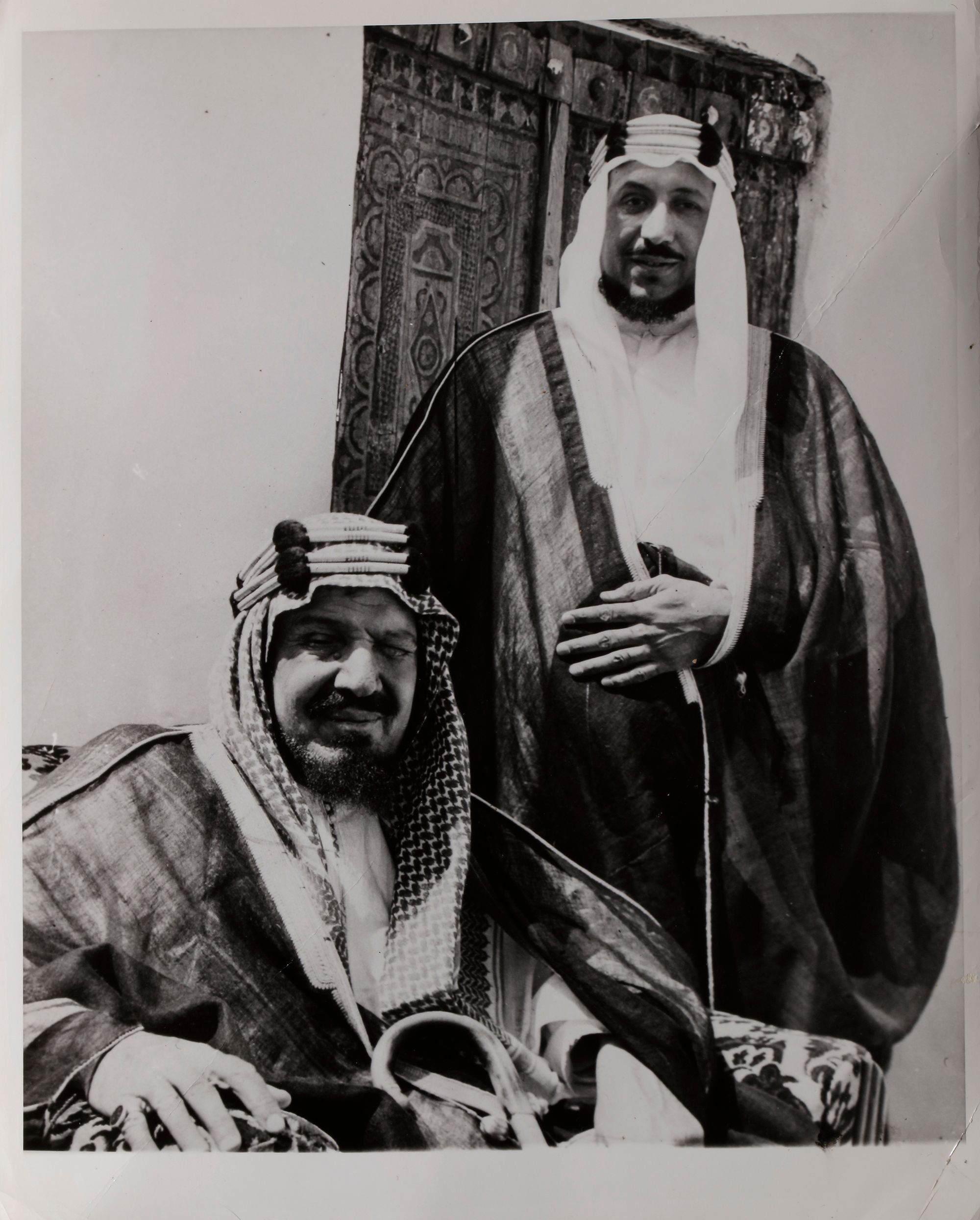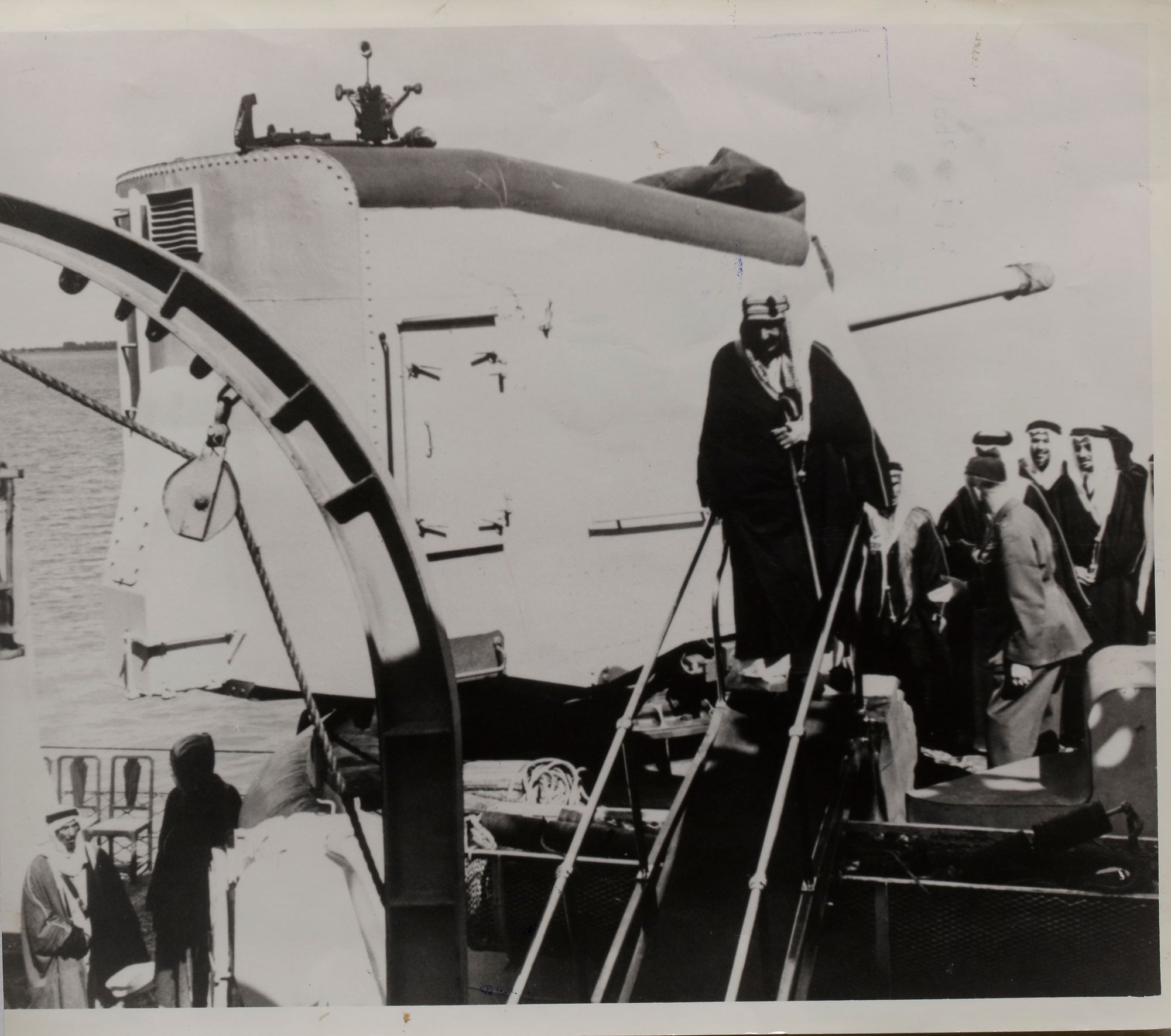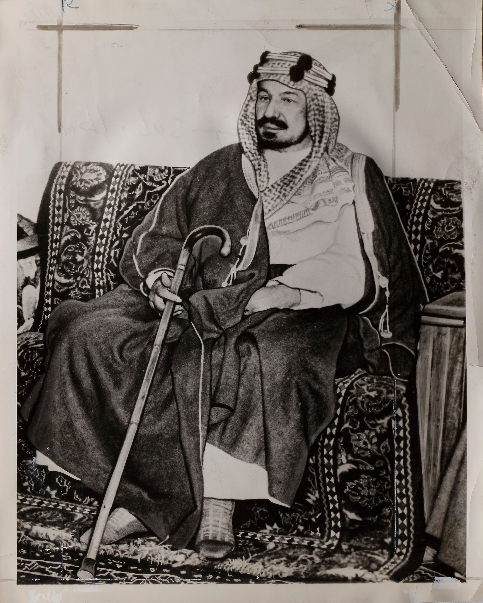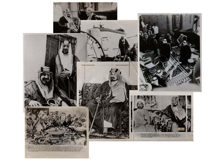 Nine pictures of king Abdul aziz in different occasions, like his meeting with president Roosevelt and king Abdullah of Jordan. 25.5 by 20.5 cm.