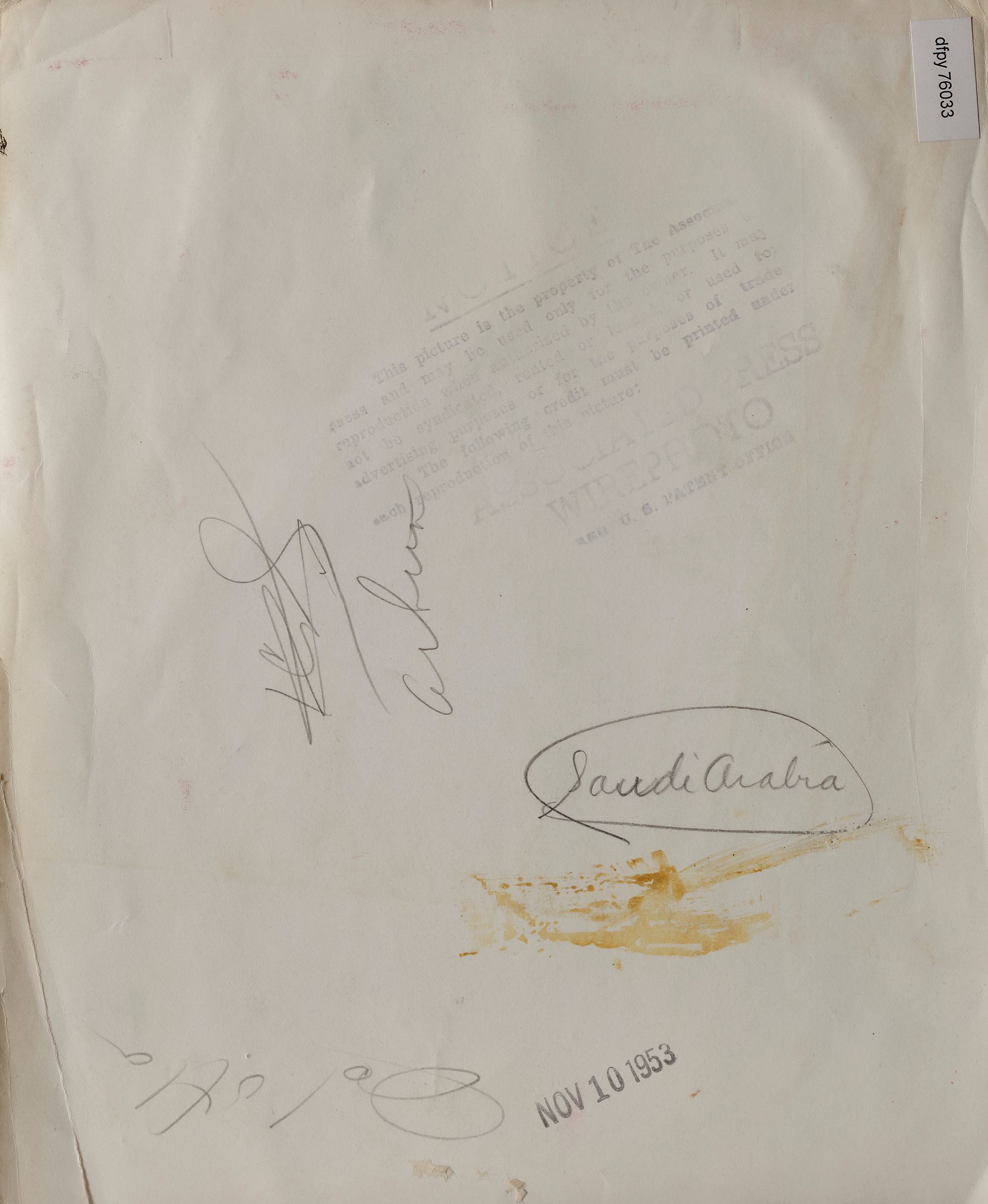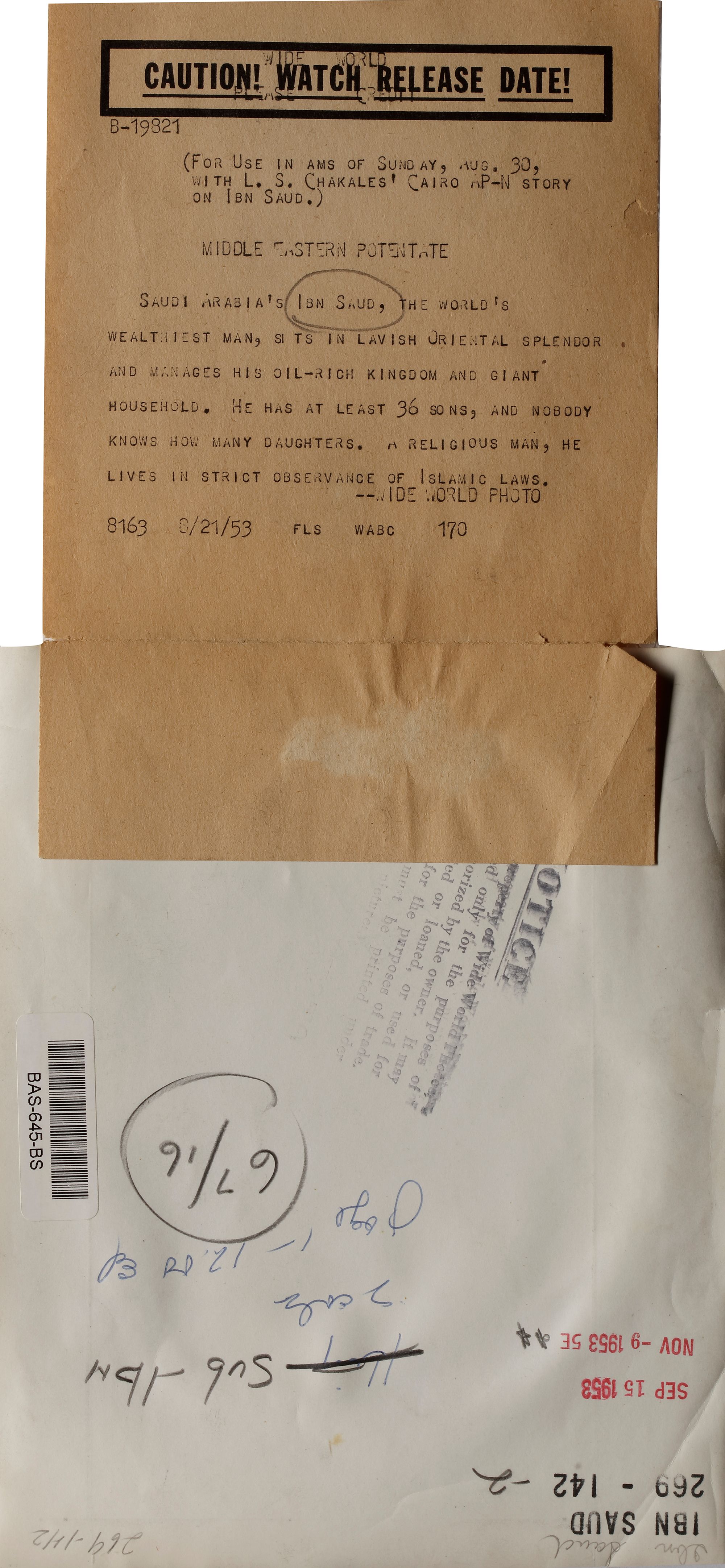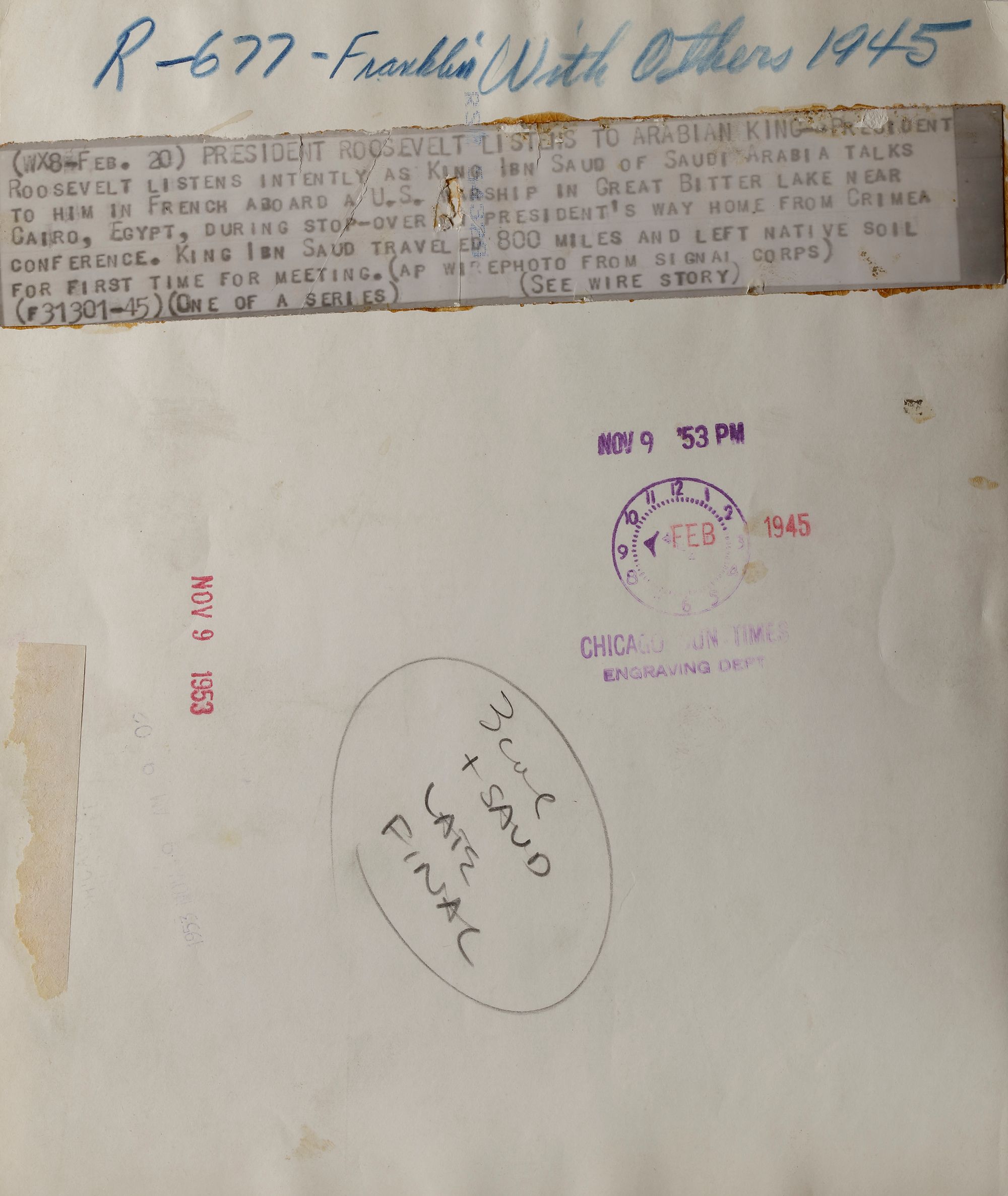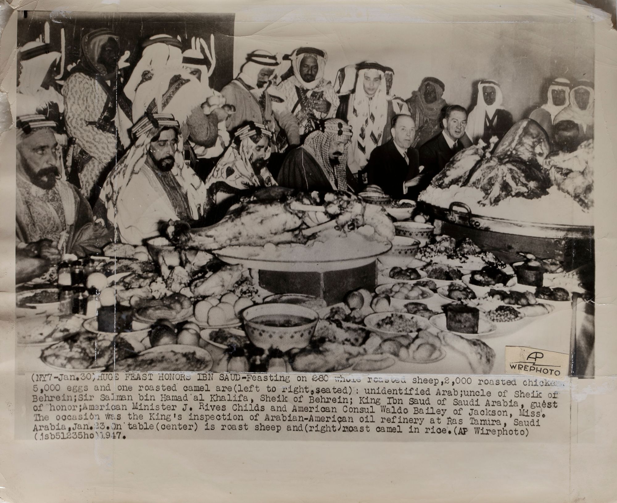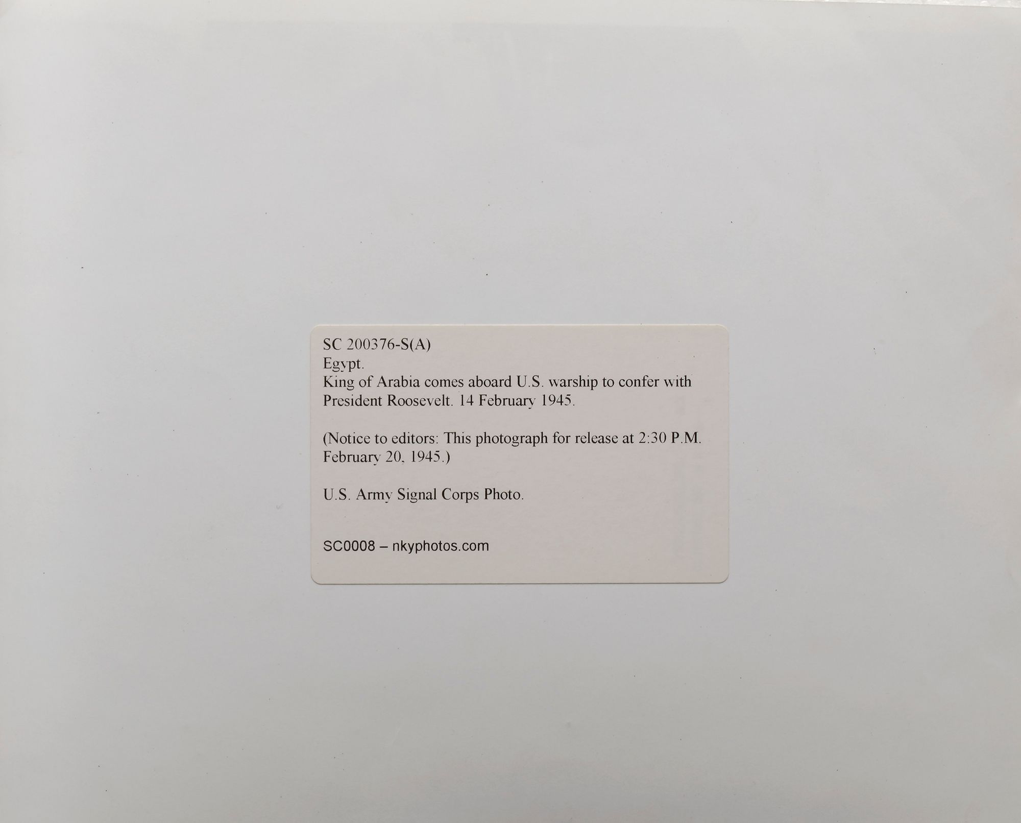 Nine pictures of king Abdul aziz in different occasions, like his meeting with president Roosevelt and king Abdullah of Jordan. 25.5 by 20.5 cm.