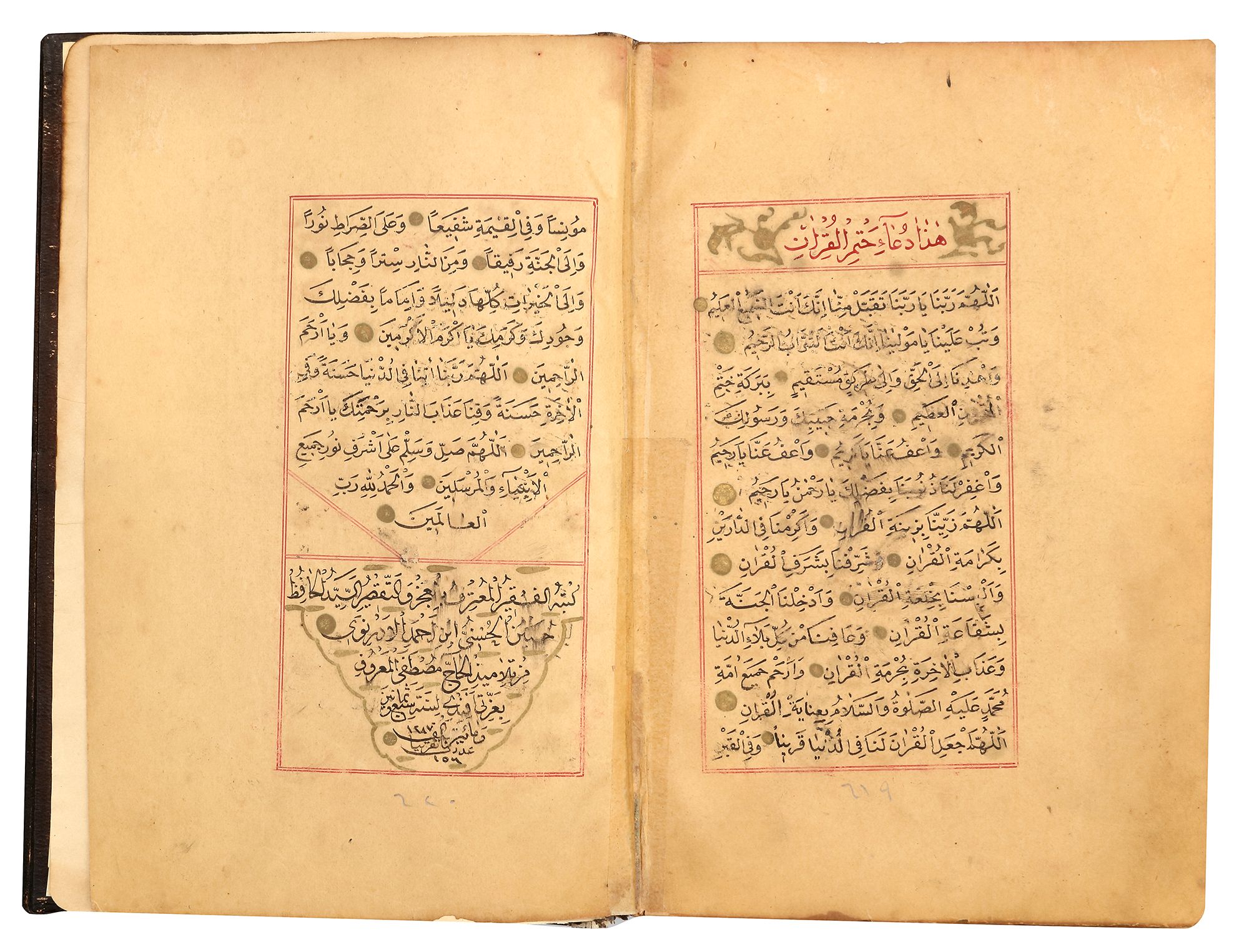Final folio with a prayer for completion of the recitation of the Quran (Due- al-Khatm) and signed " written by Hussein al-Husna Ibn Ahmed Al-Adruni ( from Edirne) and dated 1287 AH.