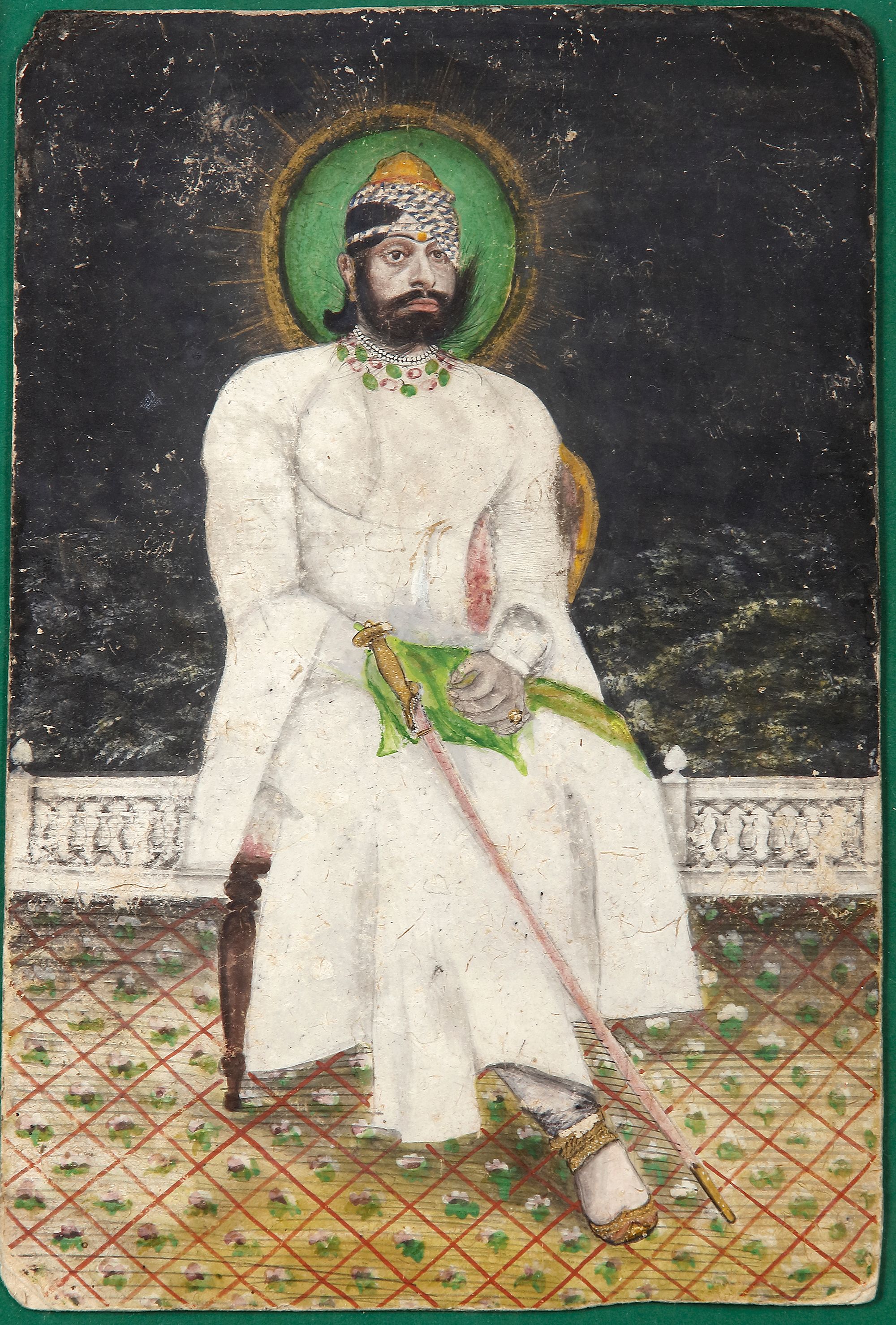 Gouache colour heightened with gold on paper. Painting: 14 by 21 cm. With frame: 22 by 26 cm.