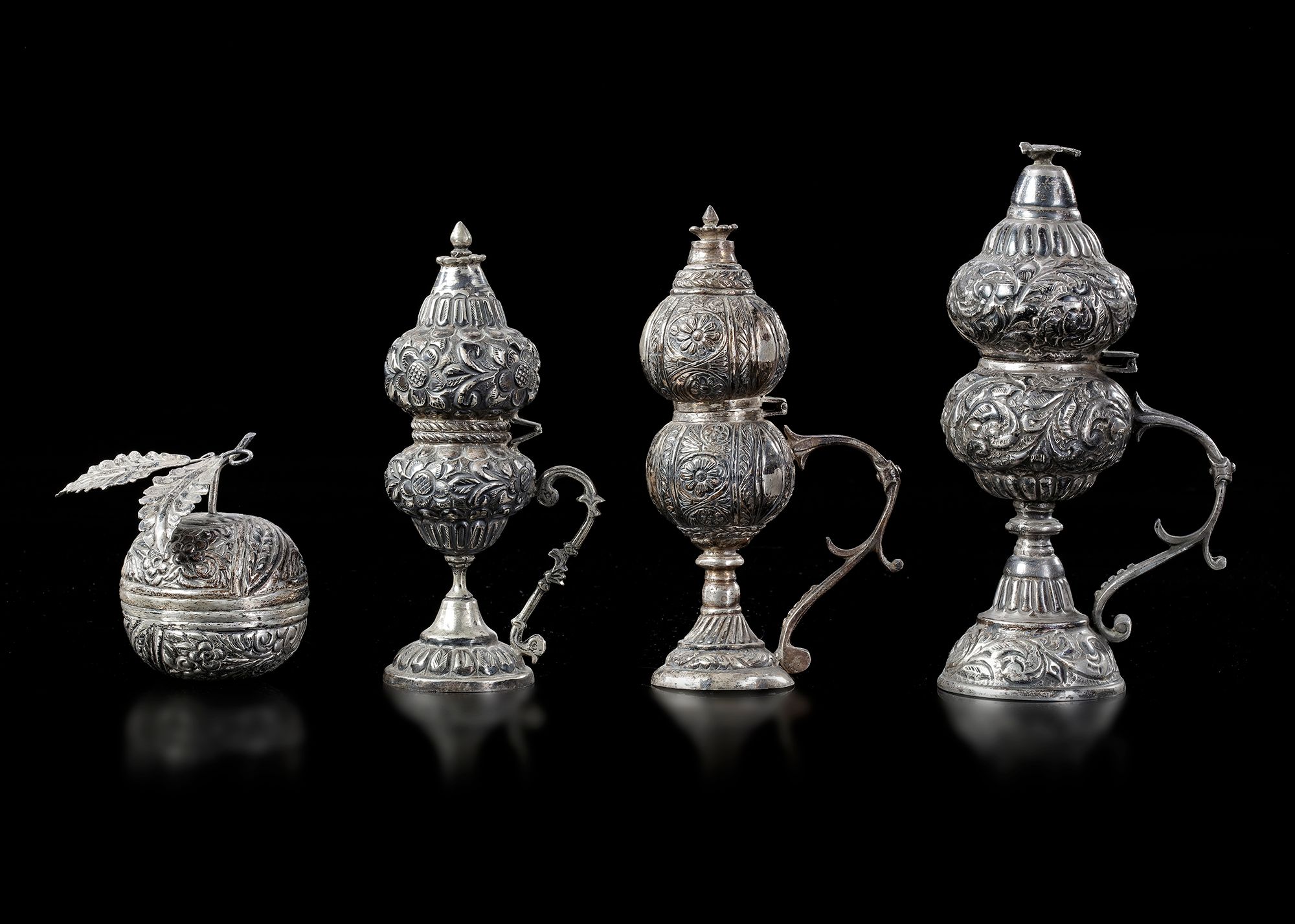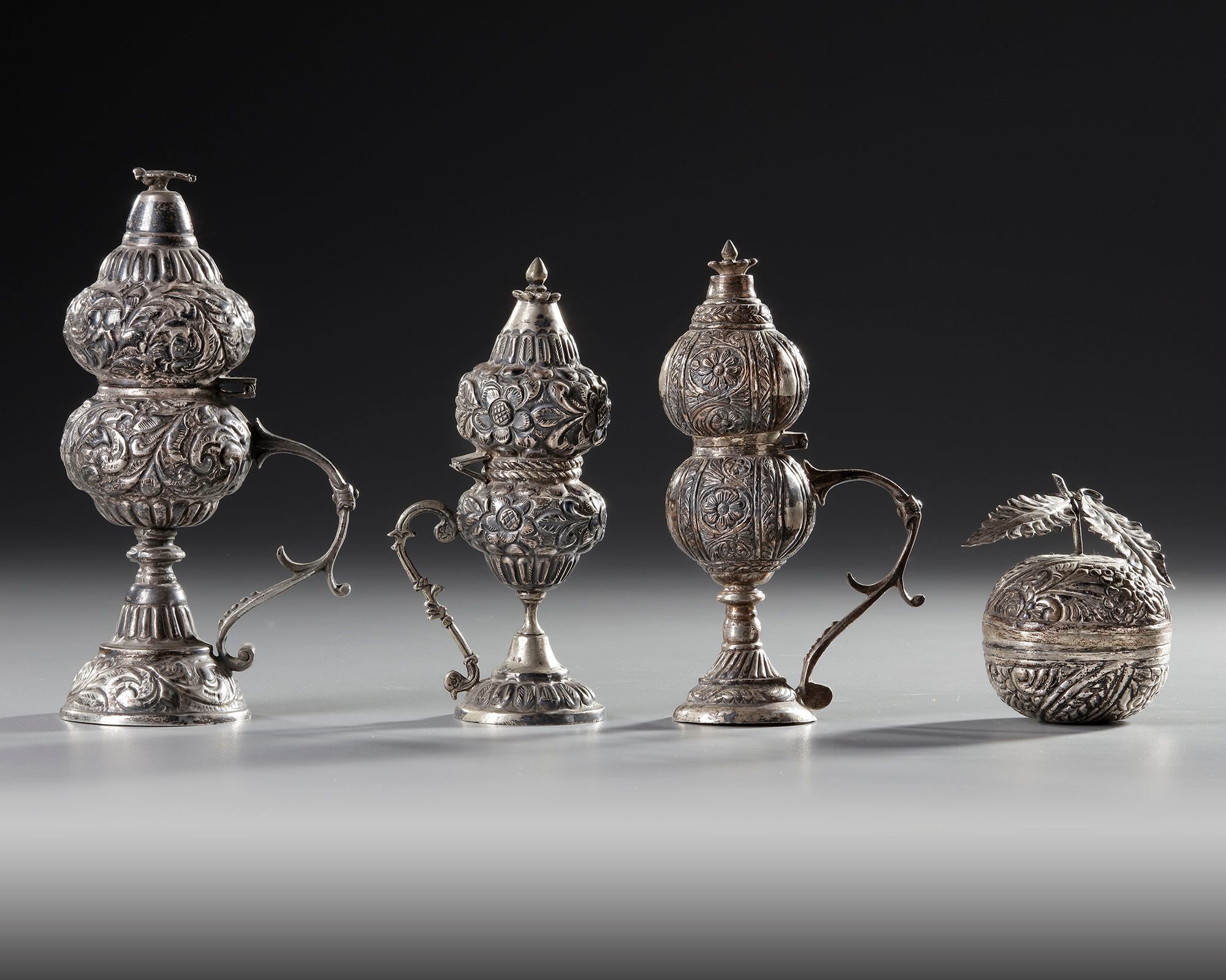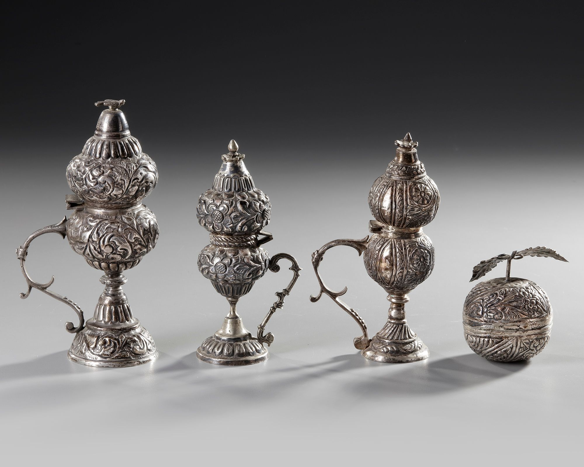 FOUR OTTOMAN SILVER INCENSE BURNERS, TURKEY, 19TH CENTURY