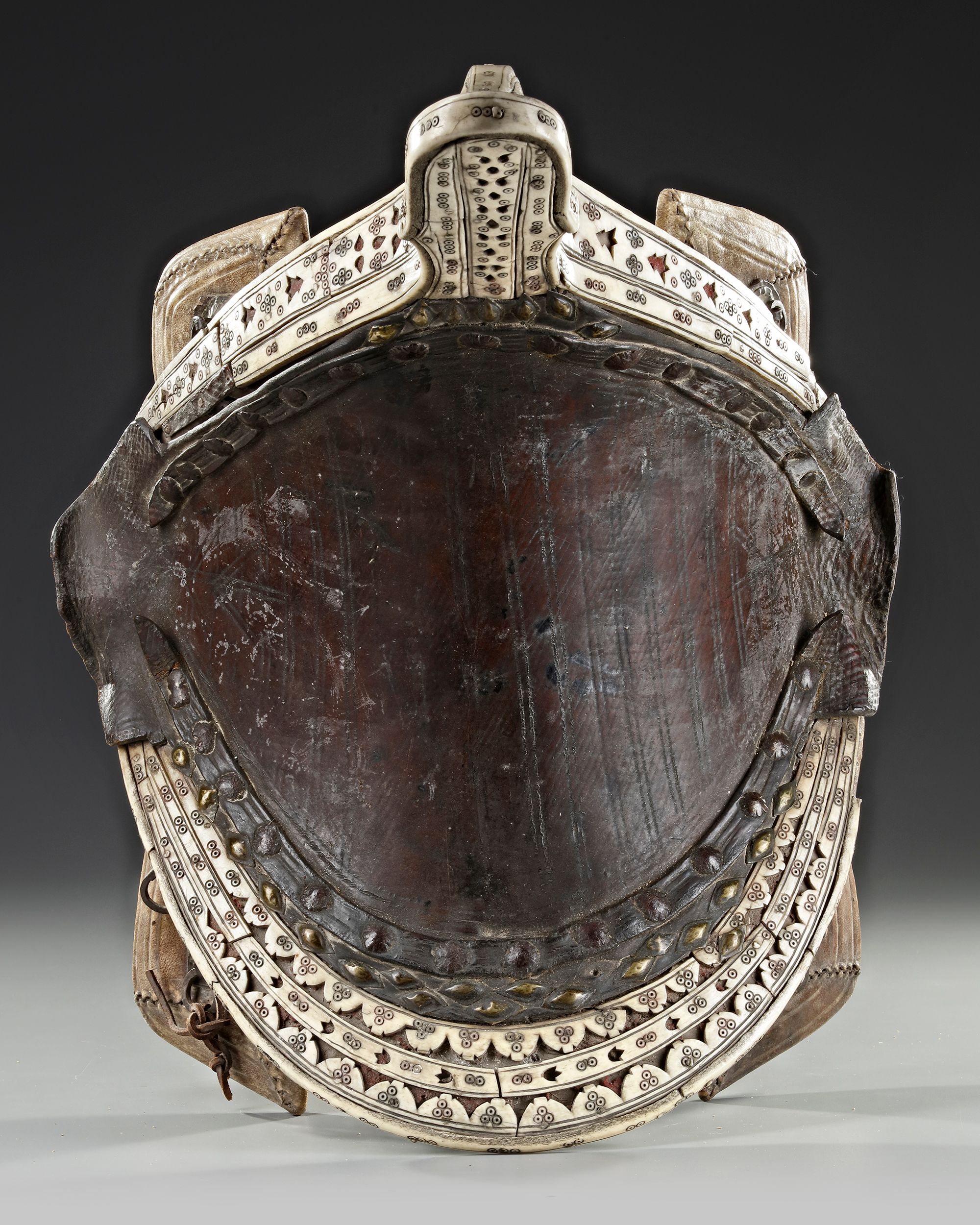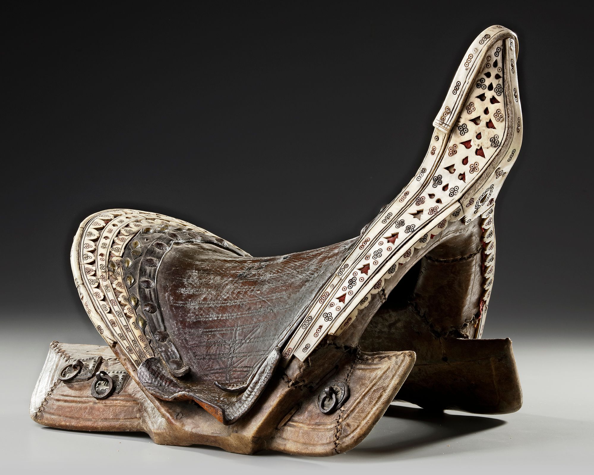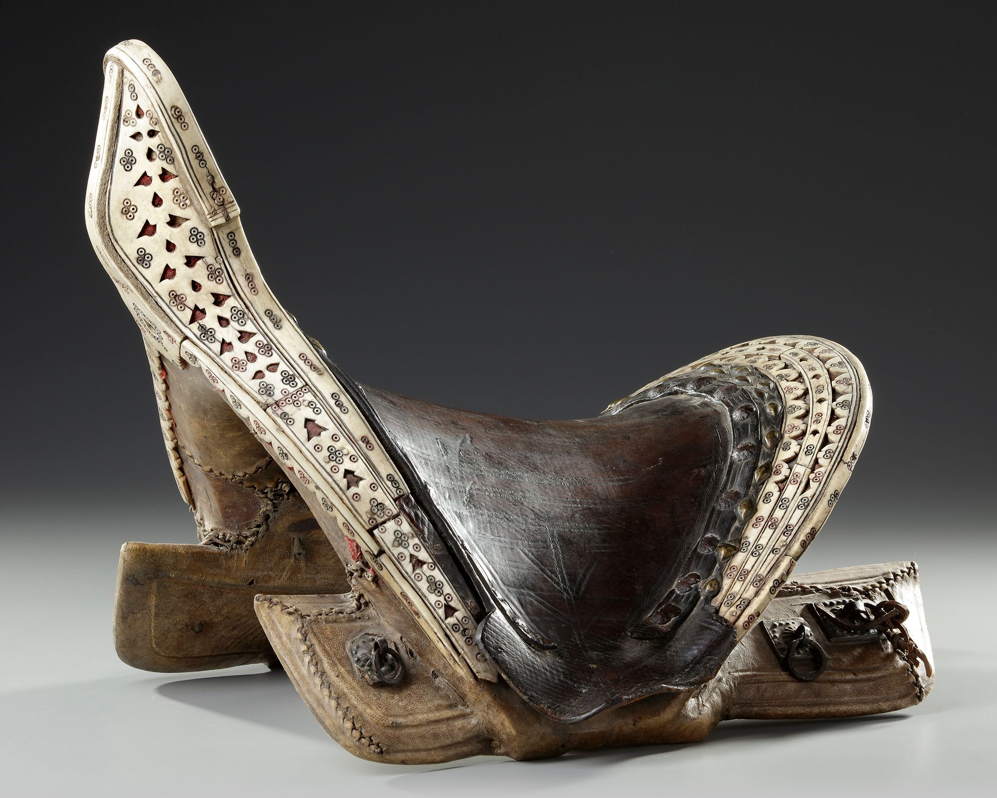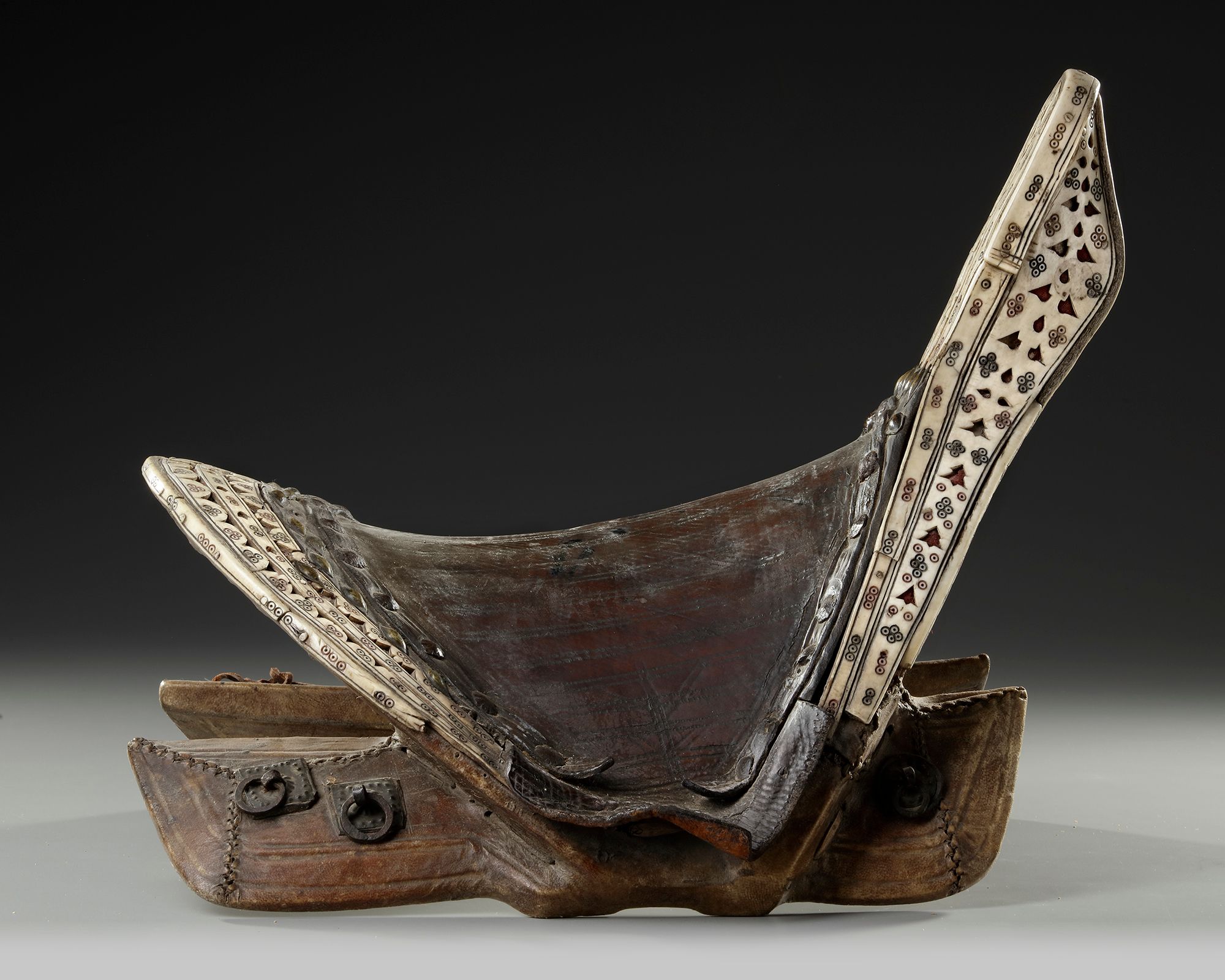 A FINE LEATHER COVERED WOODED SADDLE, CENTRAL ASIA, 19TH CENTURY