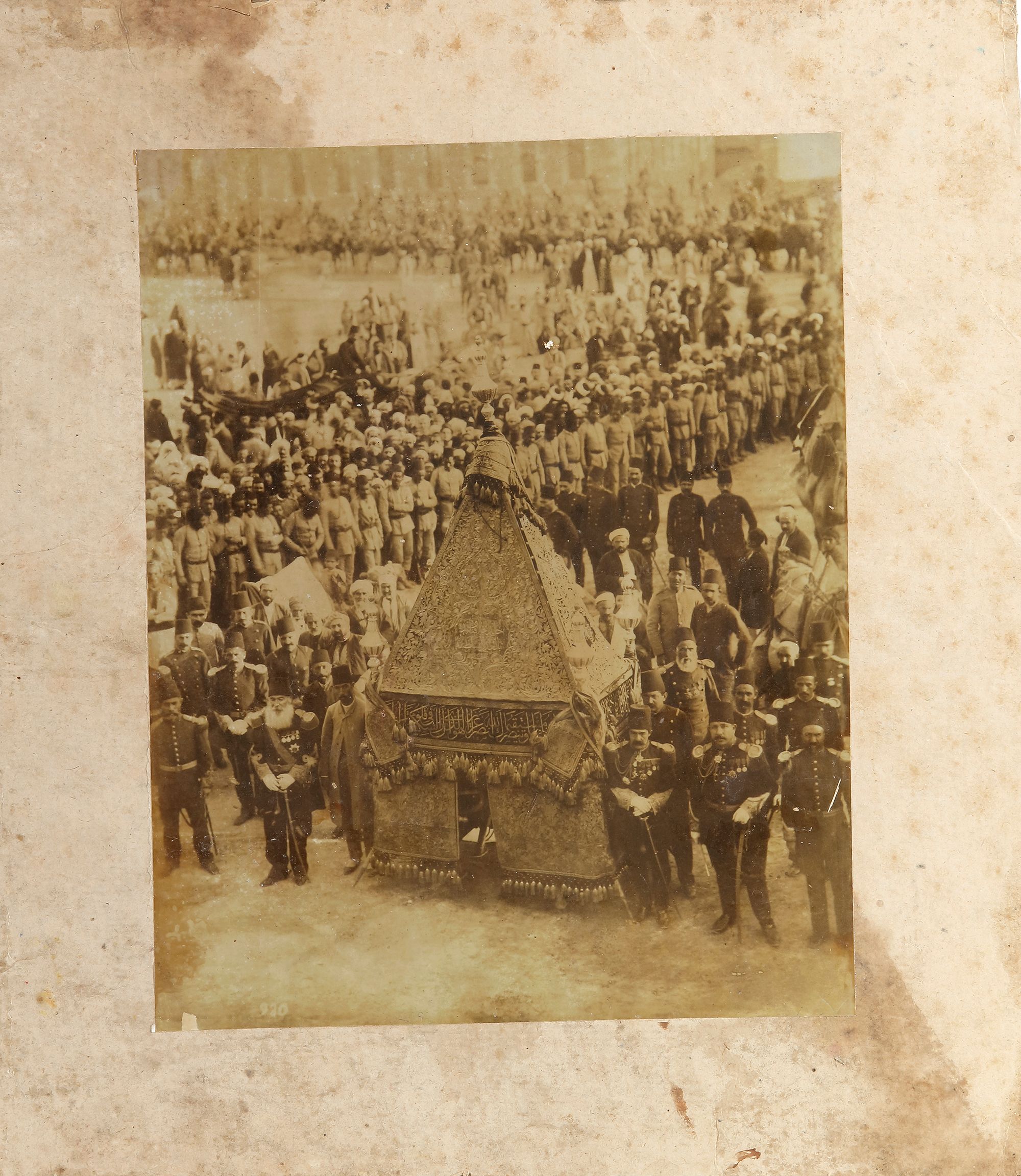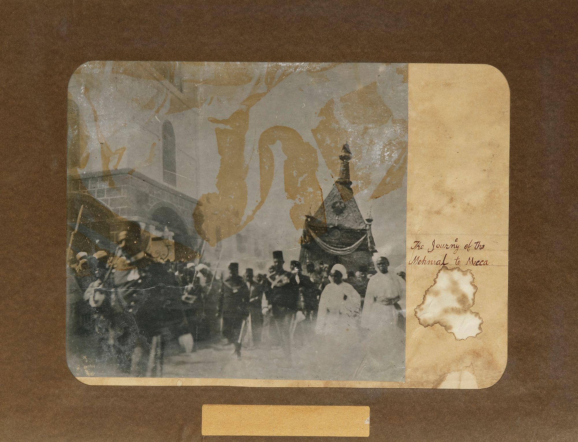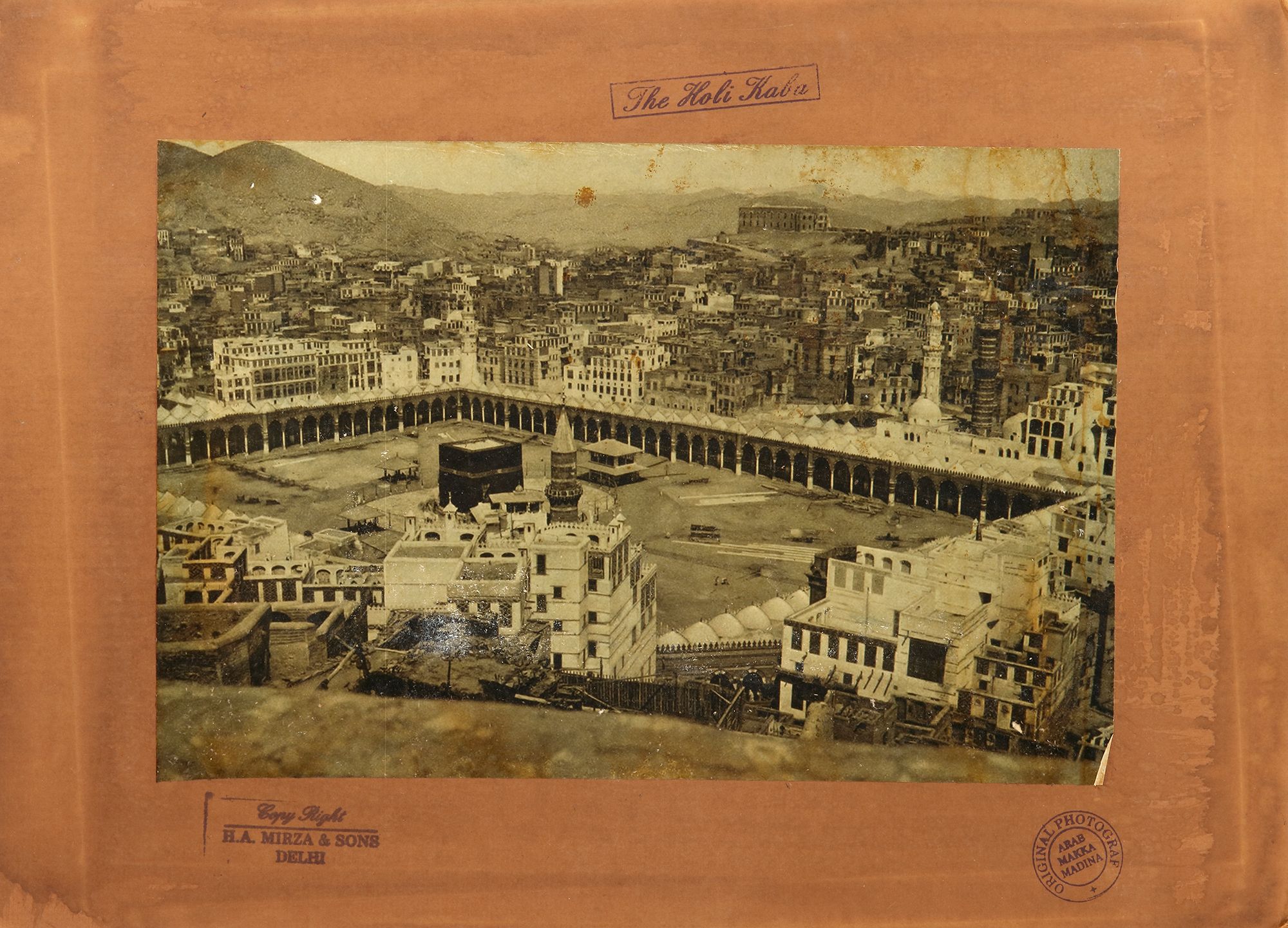 The photographs comprise a view of the Kaaba at Mecca, arrival of the Mahmal ( al-Shami and the Egyptian), tents at Muna, a view of al-Masjid al-Nabawi , and an interior of the Masjid-Al-Haram and al-Masjid al-Haram One photograph with the panorama of Istanbul.