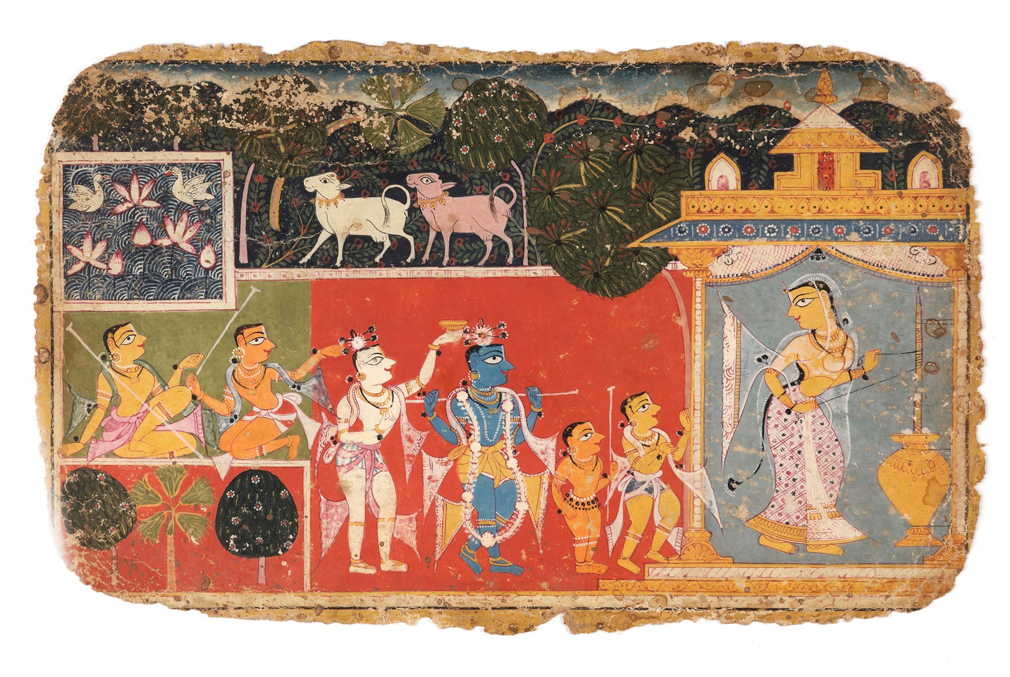 Daniel Ehnbom has defined at least ten anonymous painters contributing to this series of Bhagavata Purana paintings. These are referred to by Ehnbom as Painters A-J. For more on this series, see Sotheby's New York, March 17, 2015, Lot 1110-1112; Edwin Binney 3rd, Rajput Miniatures from the Collection of Edwin Binney 3rd, Portland, 1968, p.4-5, cat.1c; Daniel Ehnbom, Masters of the Dispersed Bhagavata Purana, fig.4, p.77-88 (in M.C. Beach, E. Fischer and B.N. Goswamy, Masters of Indian Painting 1100-1650, Artibus Asiae Sup.48/I, 2011); Daniel Ehnbom, An Analysis and Reconstruction of the Dispersed Bhagavata Purana from the Caurapancasika Group, The University of Chicago, 1984, p.235; and Darielle Mason (ed.) (essay by John Seyller), Intimate Worlds: Indian Painting from the Alvin O. Bellak Collection, Philadelphia, 2001, pp.48-49.