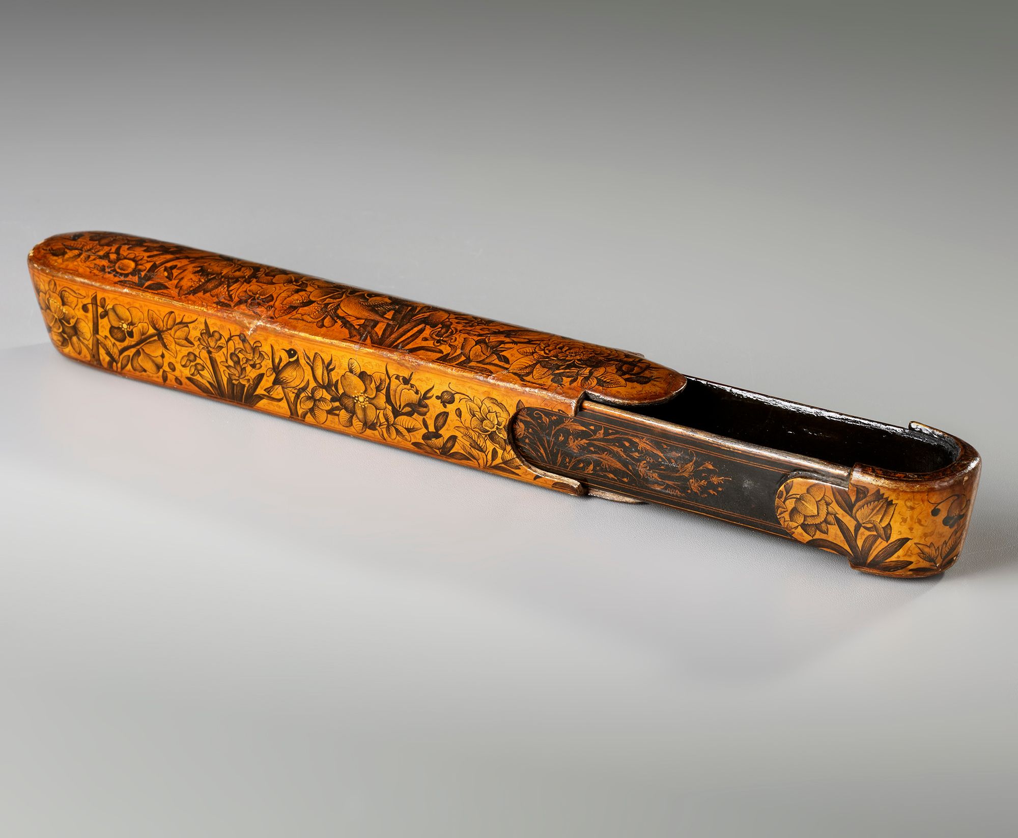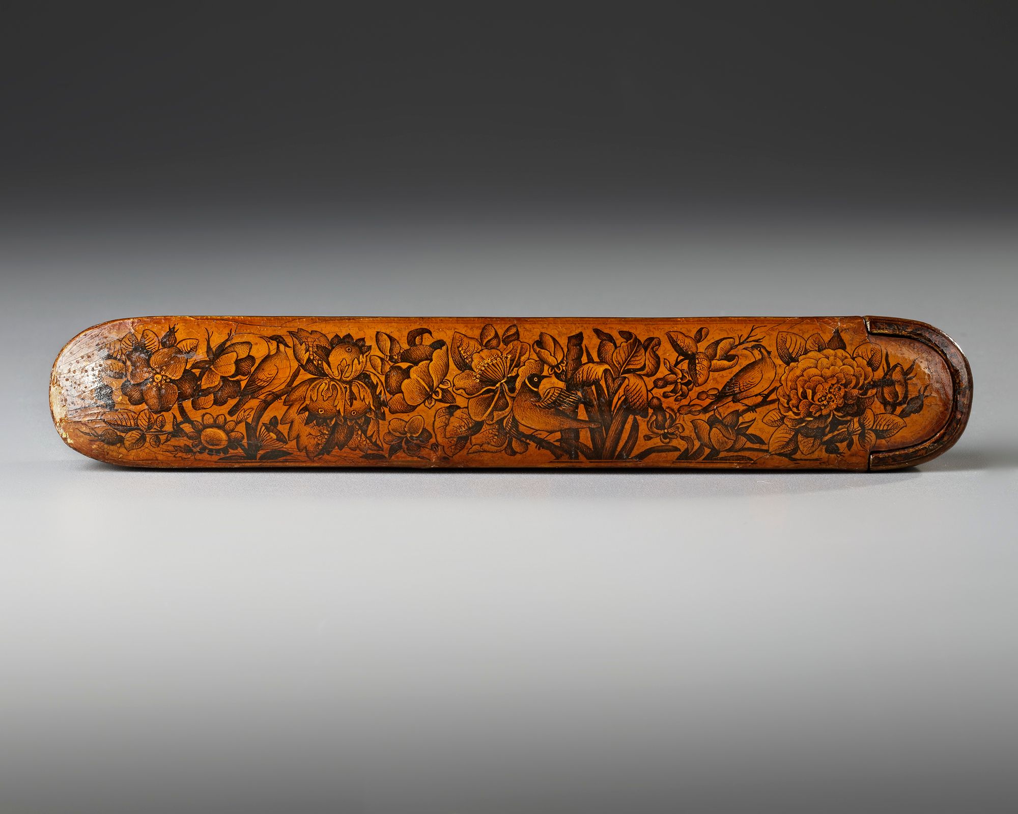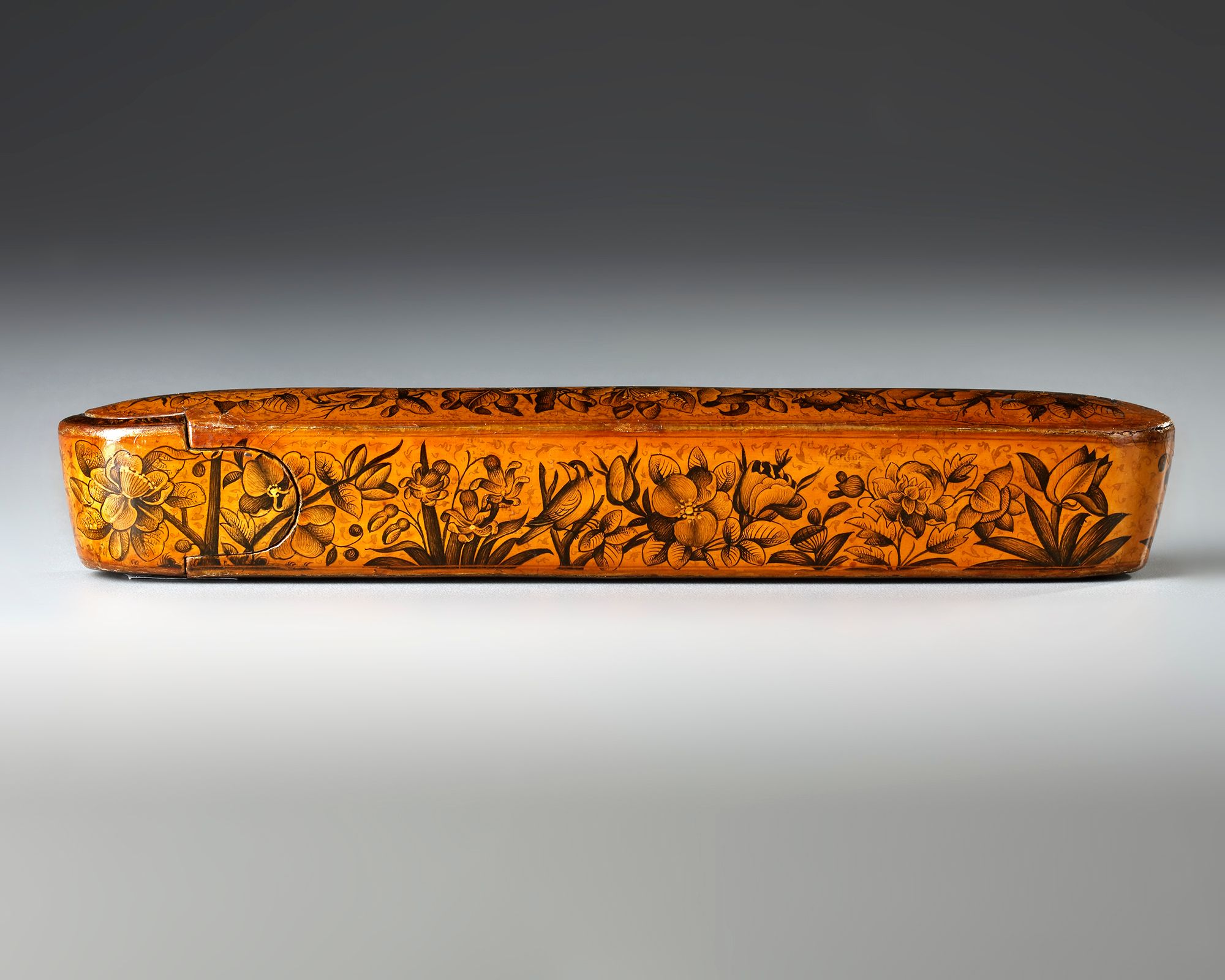 A QAJAR LACQUERED PAPIER-MACHÉ QALAMDAN (PEN BOX), PERSIA, 19TH CENTURY
