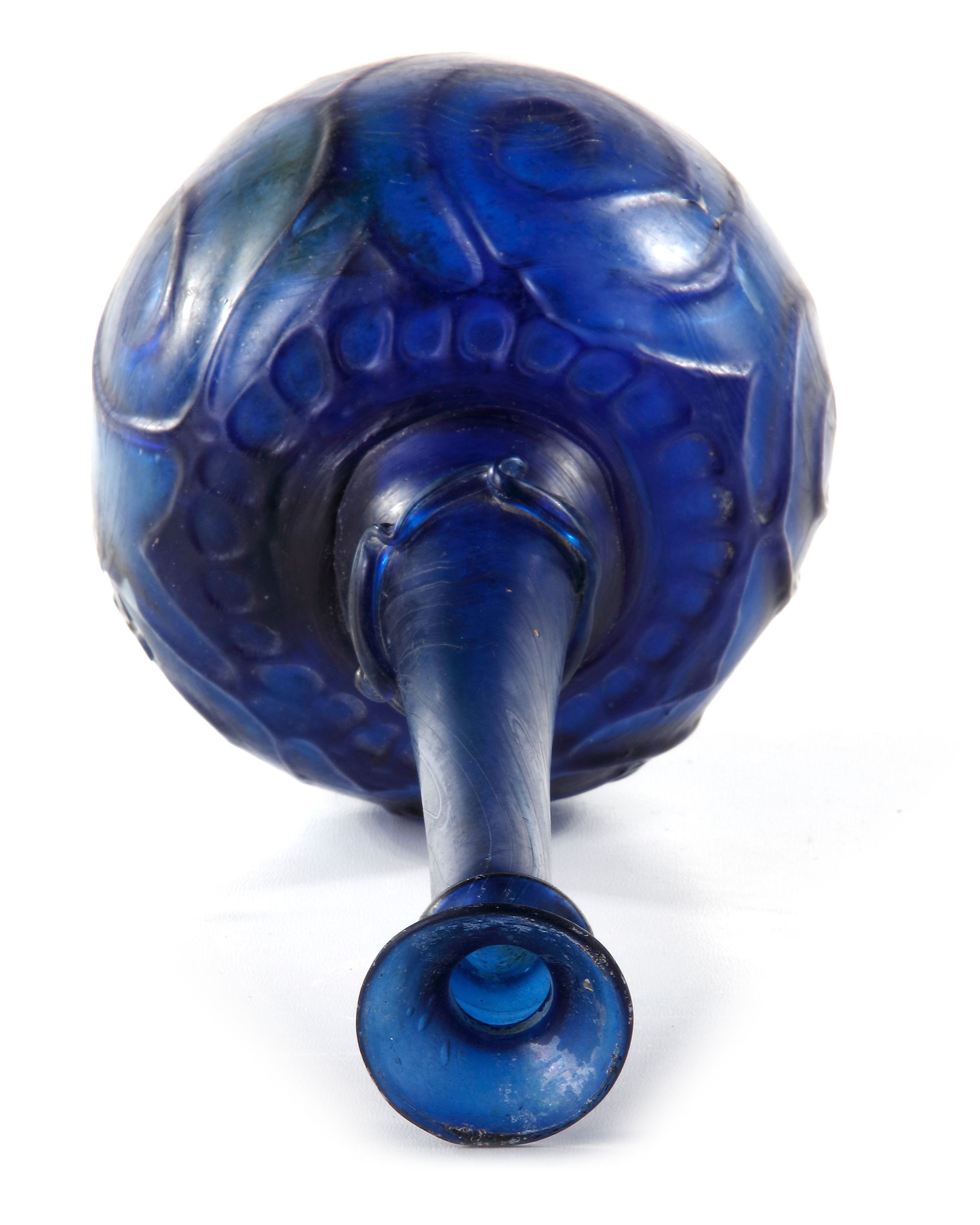 Lot 206A LARGE MOULD-BLOWN BLUE GLASS BOTTLE-VASE OR SPRINKLER, PERSIA, 12TH CENTURY