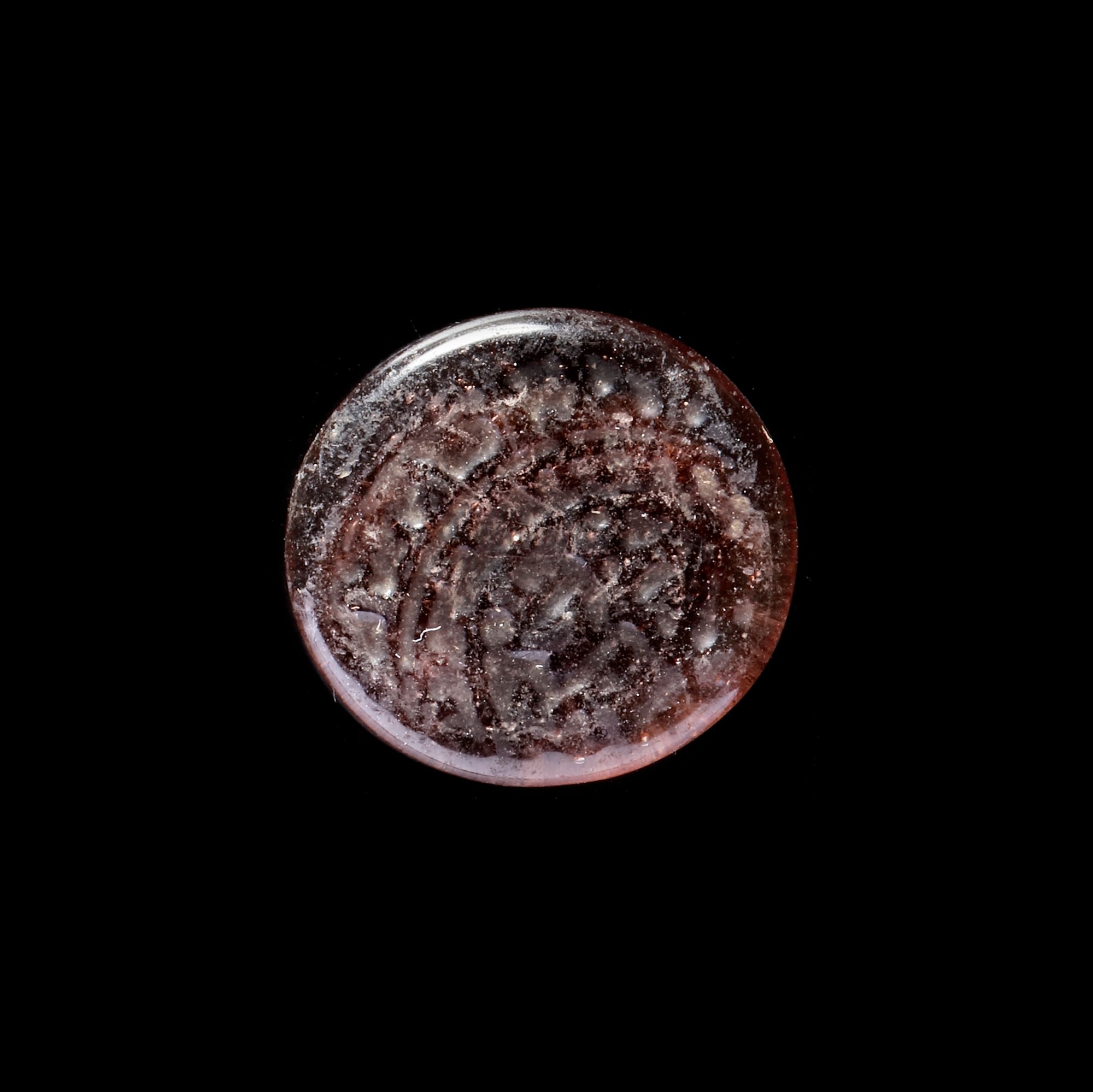 Glass weight, moulded and stamped, transparent pink in colour, citing in the centre with the name Al-Hakim bi-Amr Allah, surrounded by Al-Mansur Abu Ali al-Imam Amir al-Mu'mnin, 1.059g, 15.5 mm, coin weight: quarter dinar, B 99
