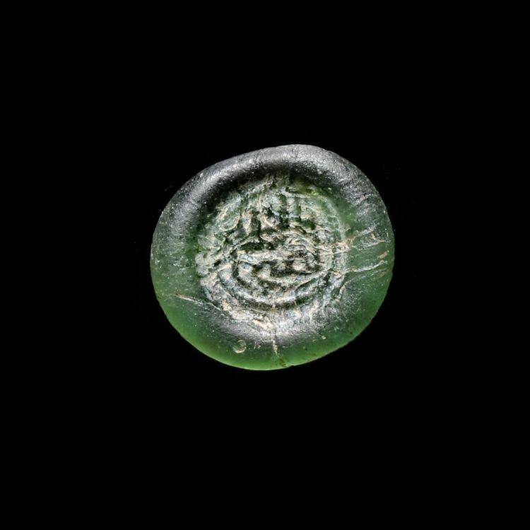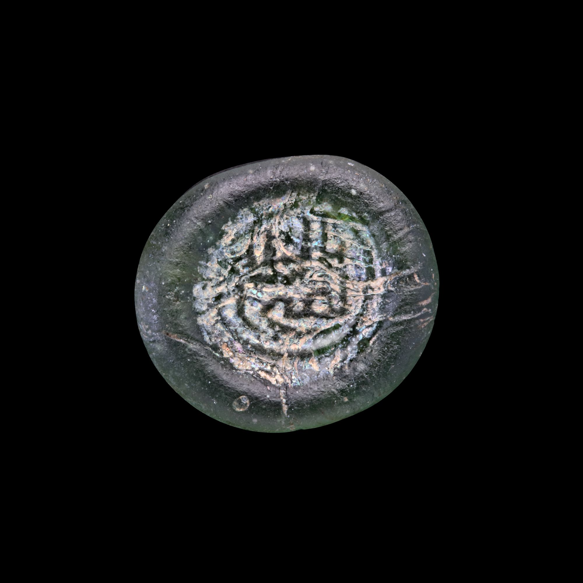 Lot 304AN EARLY ISLAMIC GLASS WEIGHT OF HALF DIRHAM, 10TH-11TH CENTURY