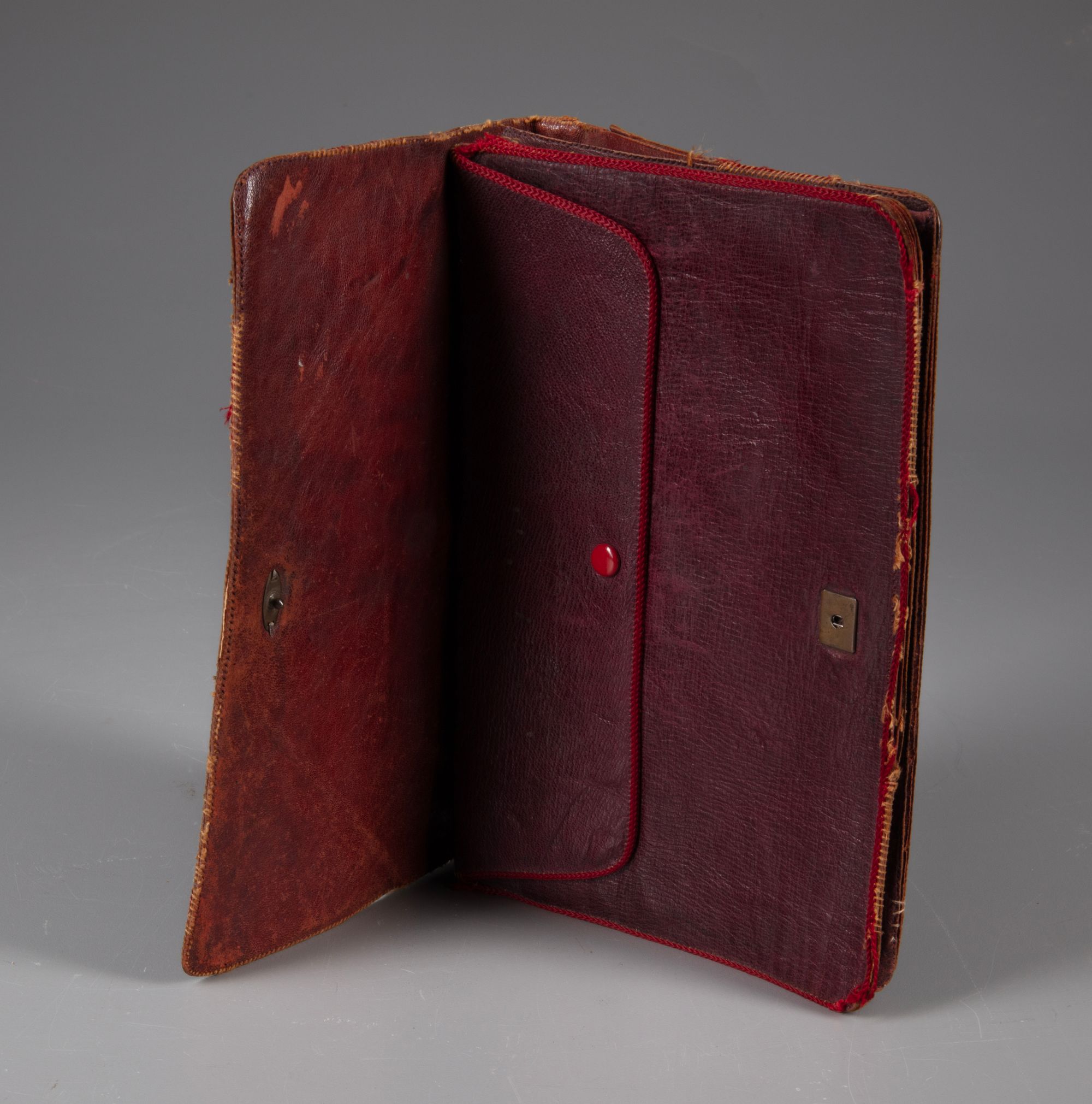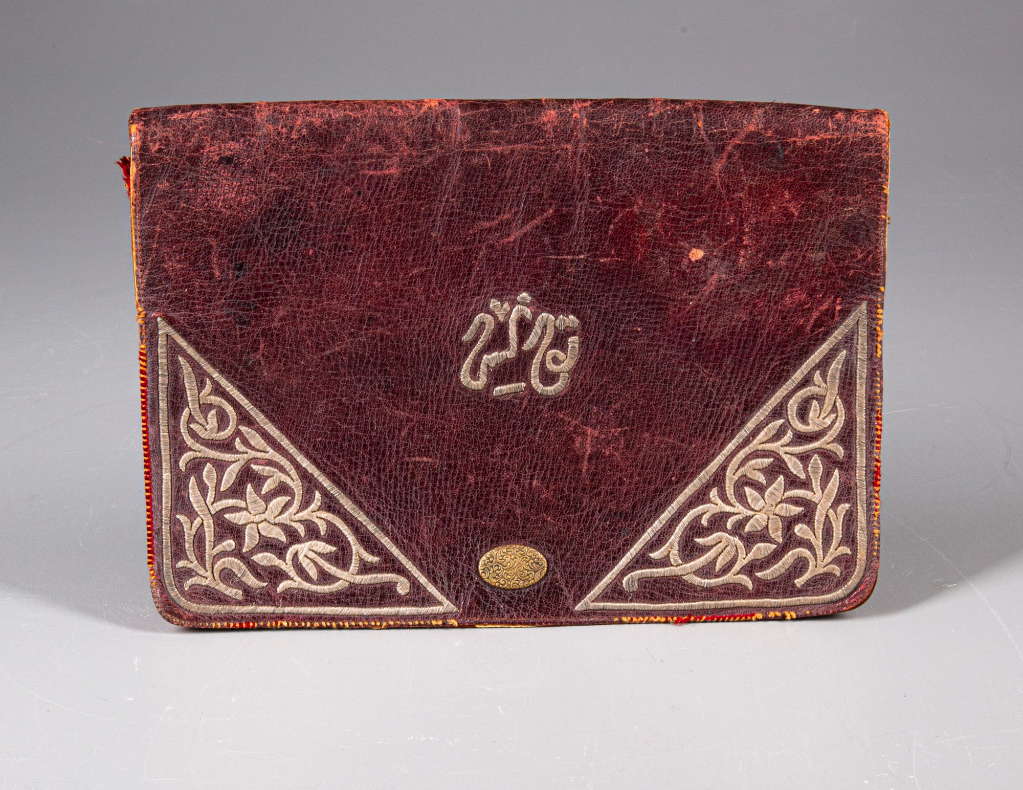 AN OTTOMAN SILVER EMBROIDERED LEATHER WALLET, TURKEY 19TH CENTURY
